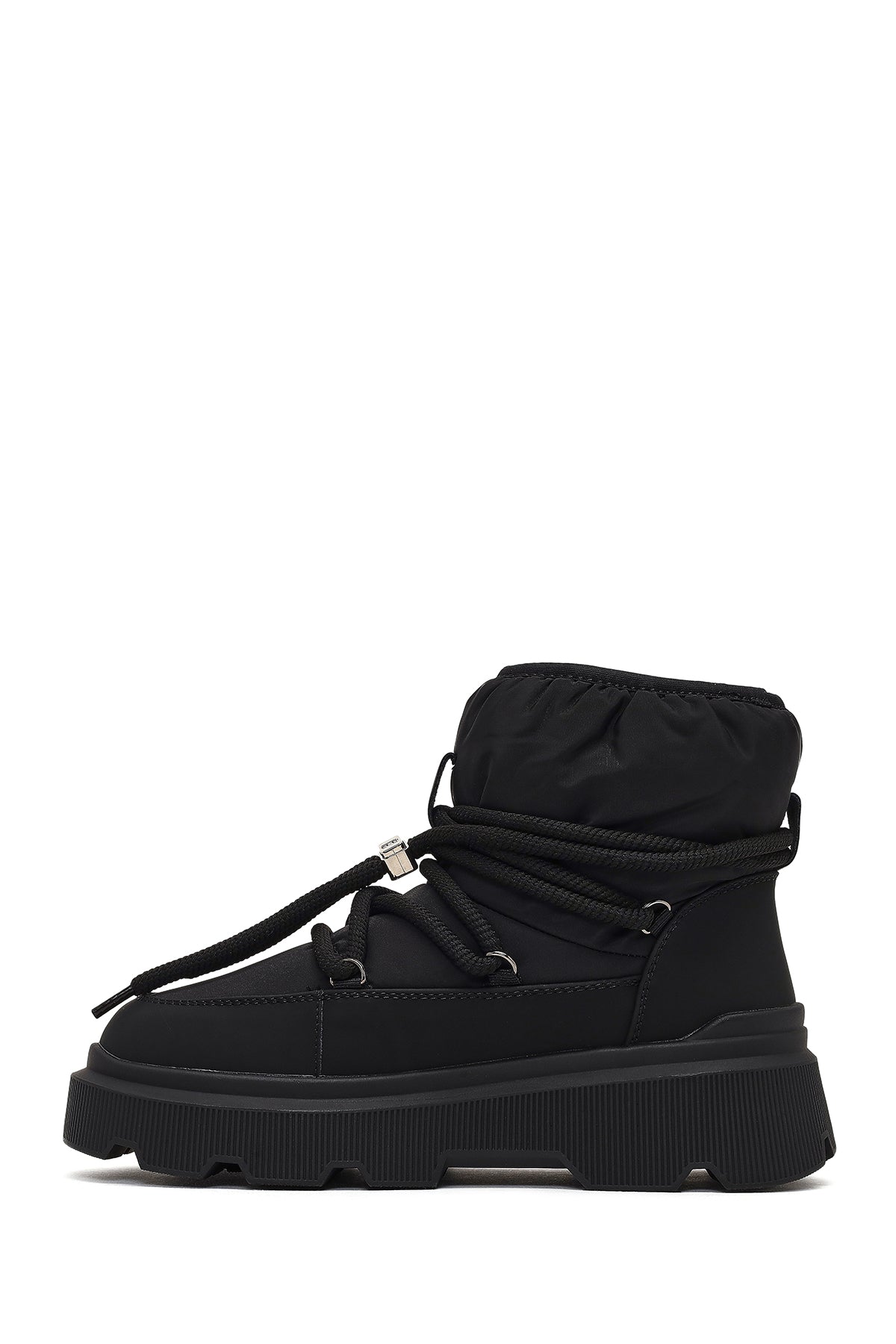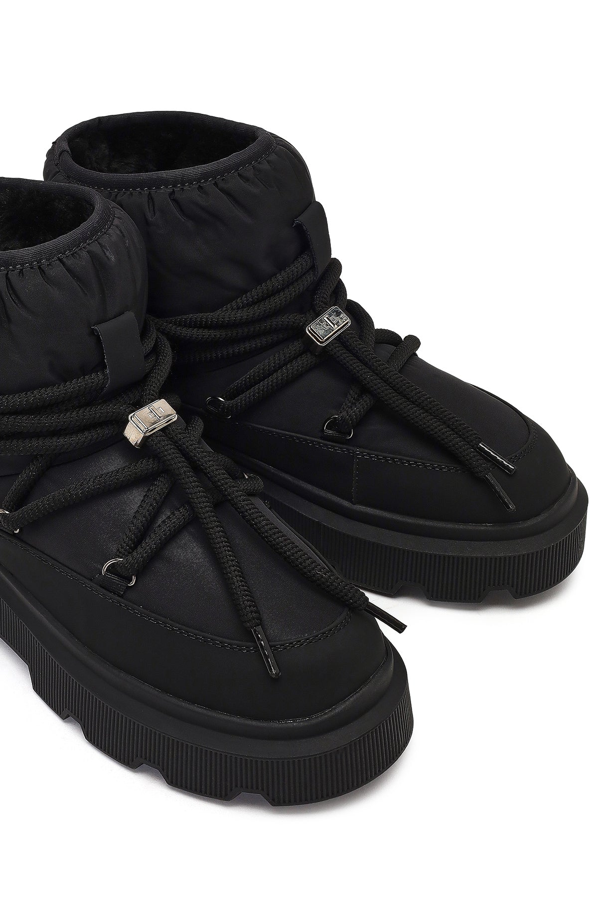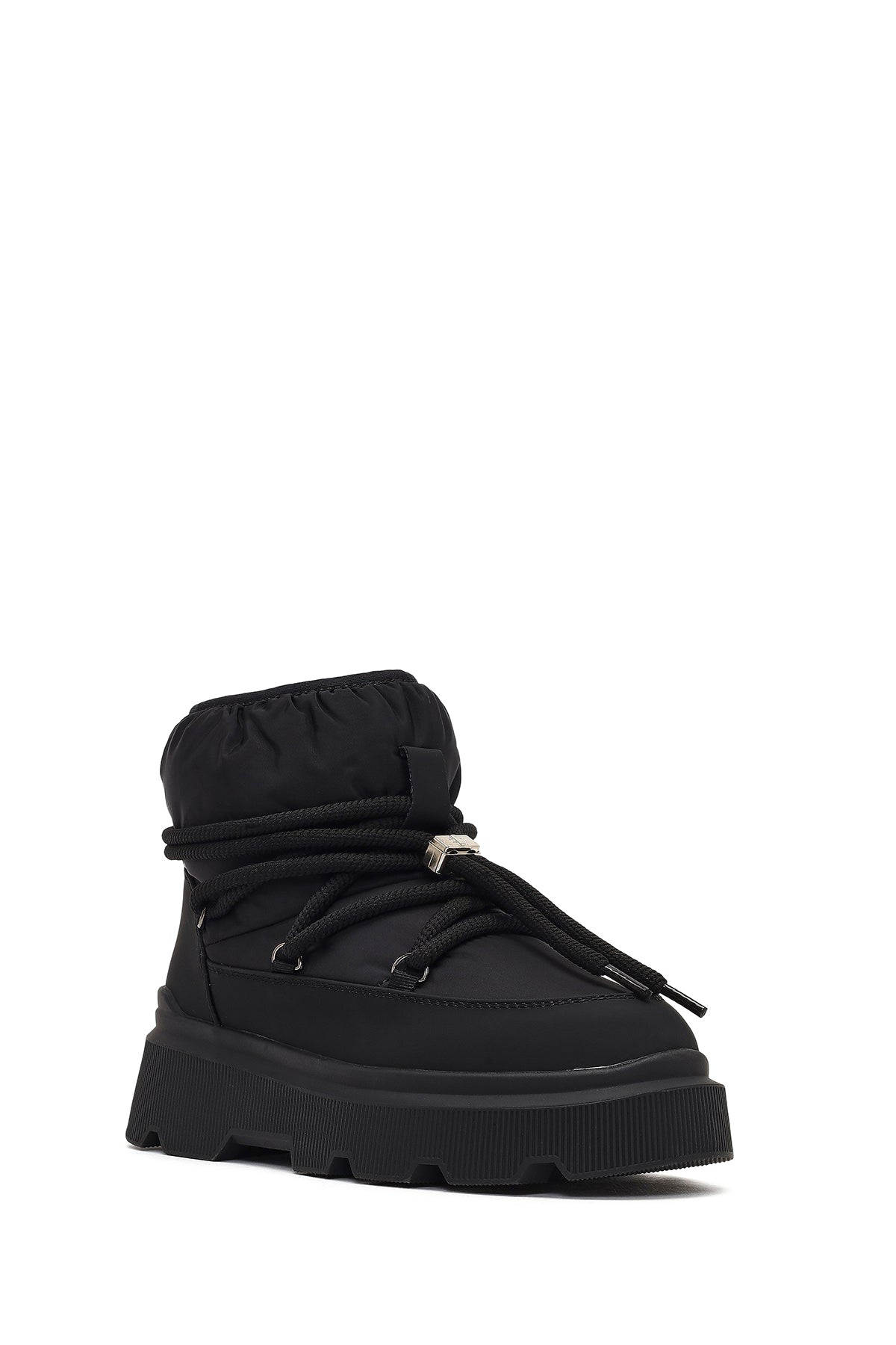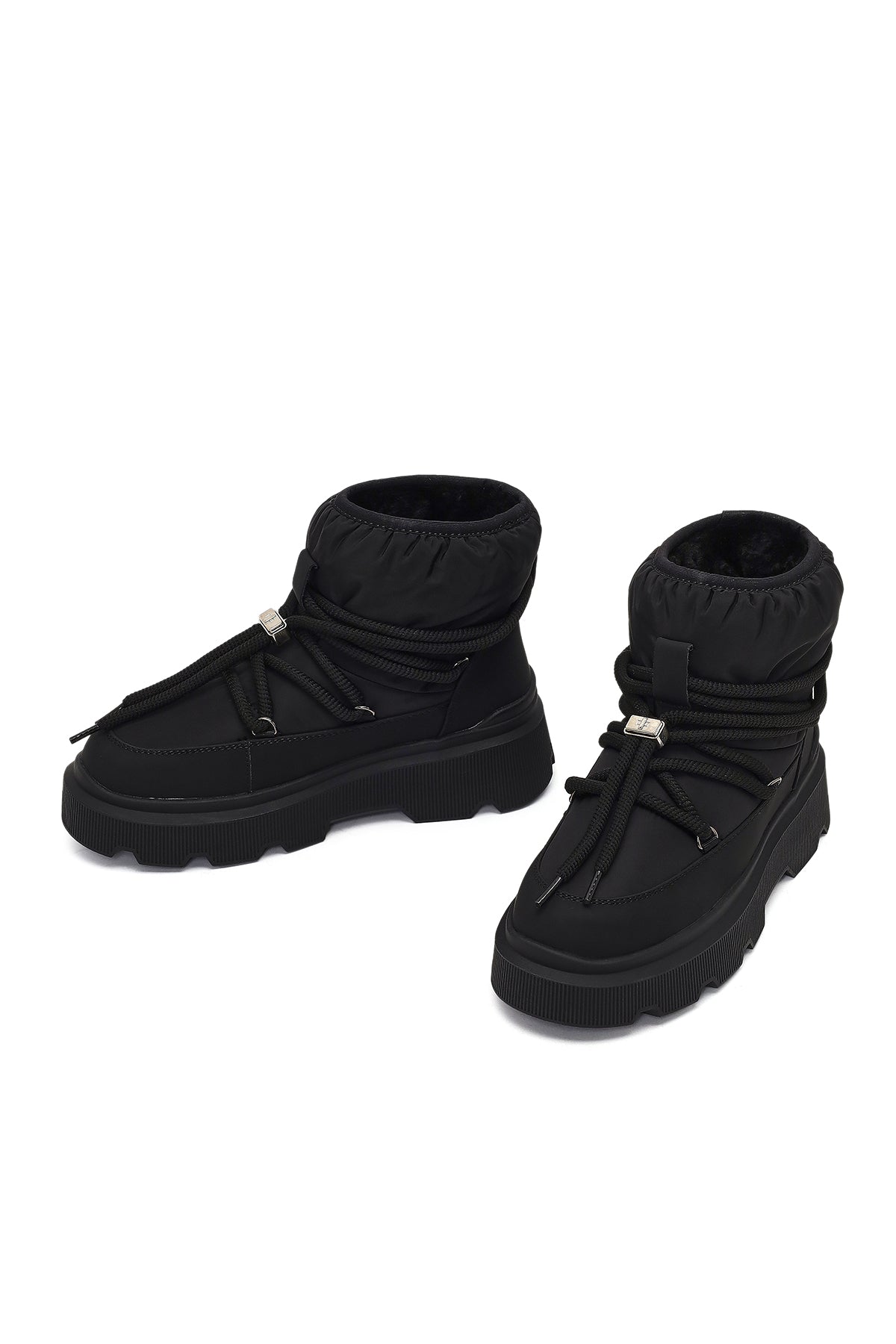 Kadın Siyah Bağcıklı Kalın Tabanlı Bot