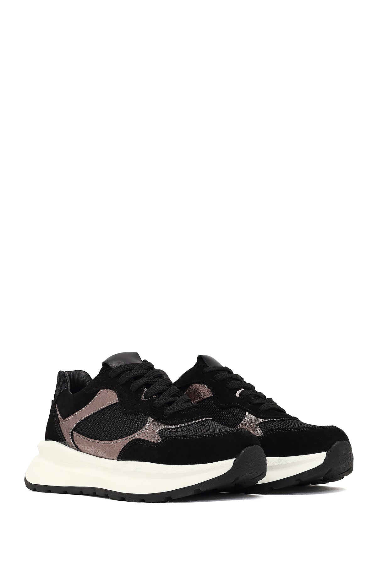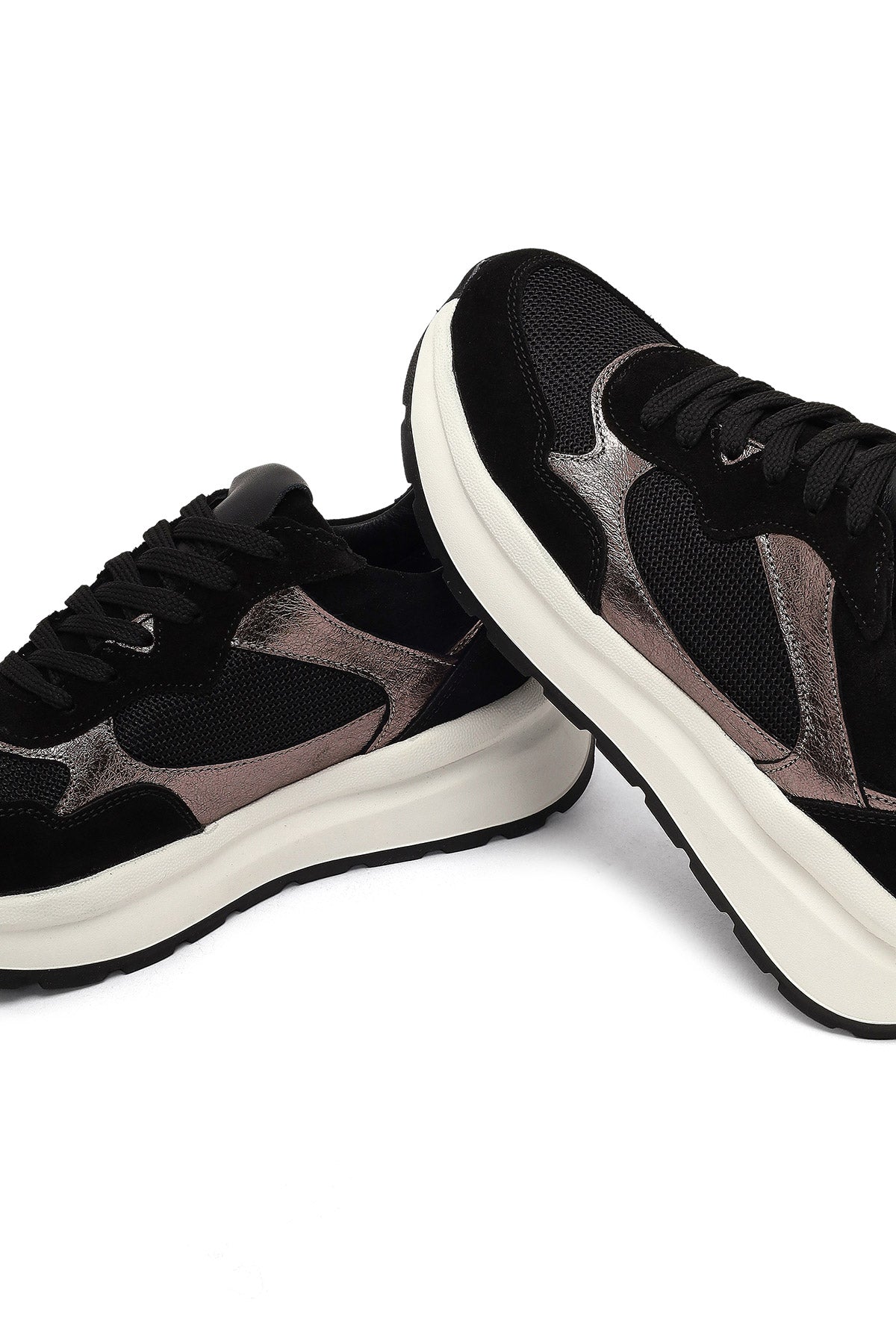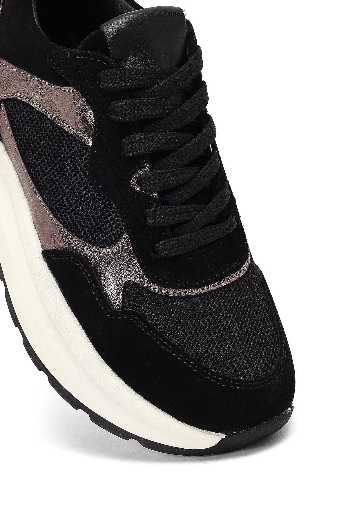 Kadın Siyah Bağcıklı Kalın Tabanlı Deri Sneaker
