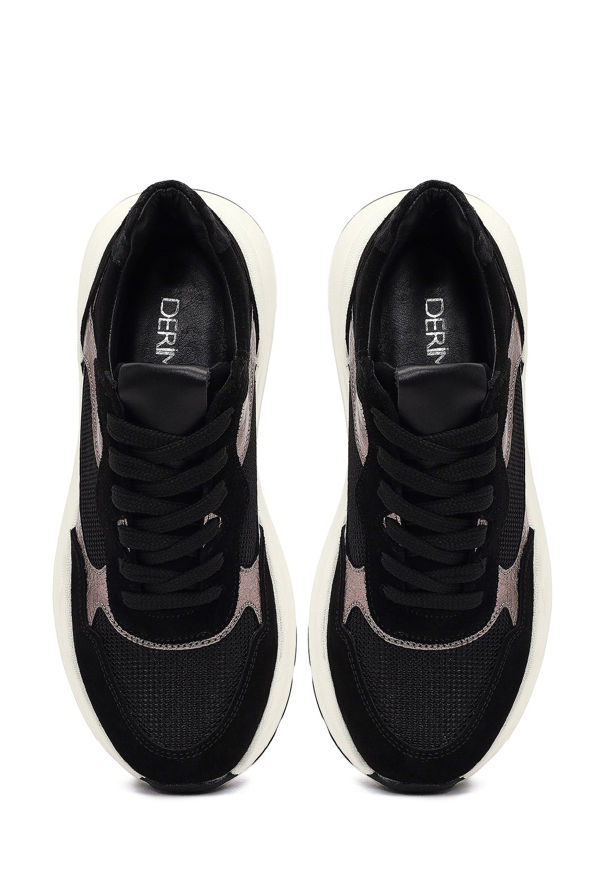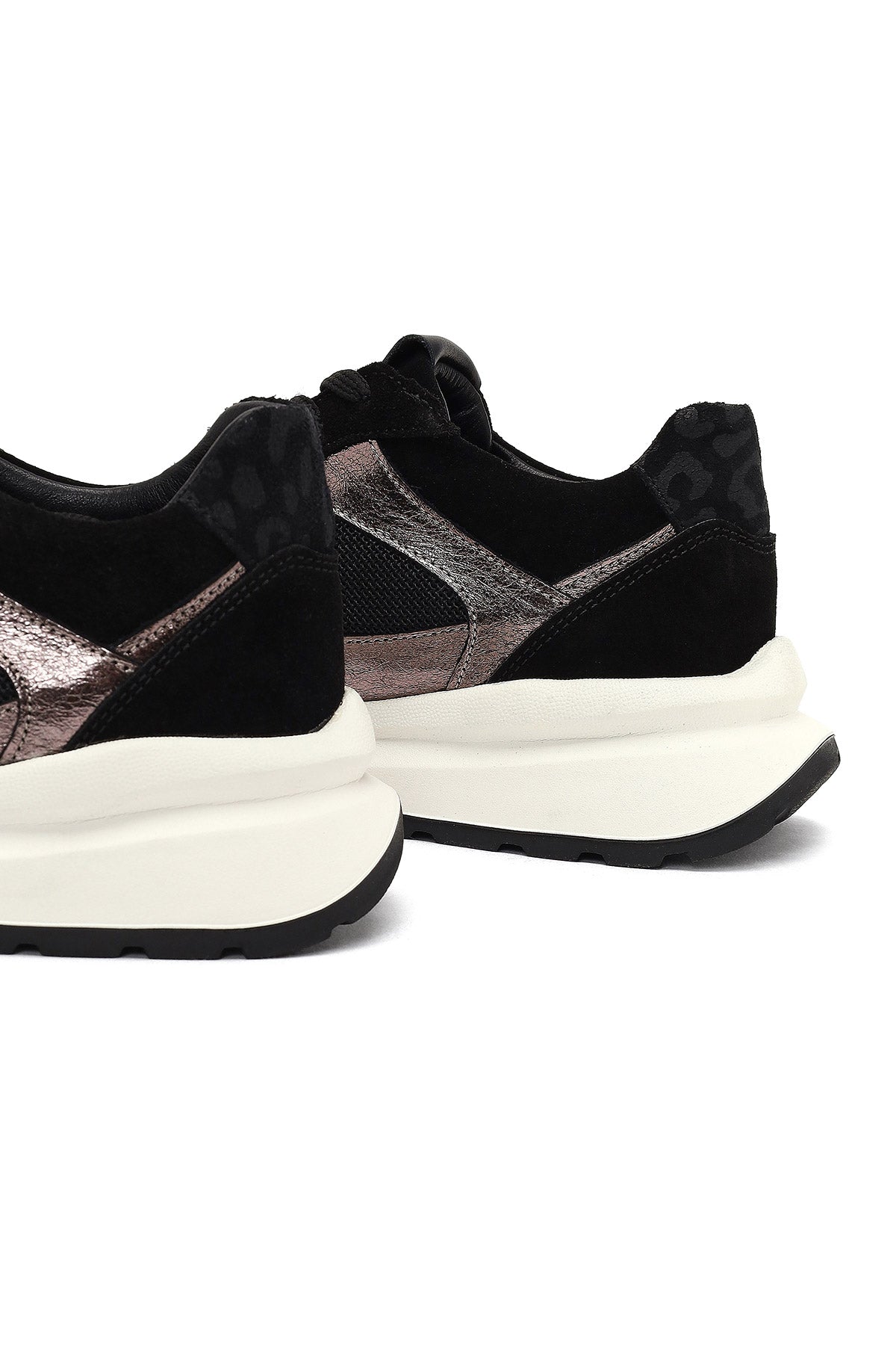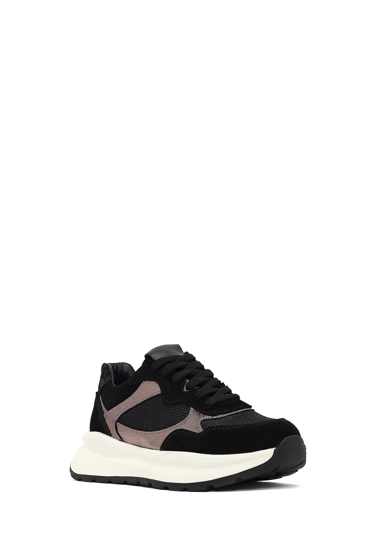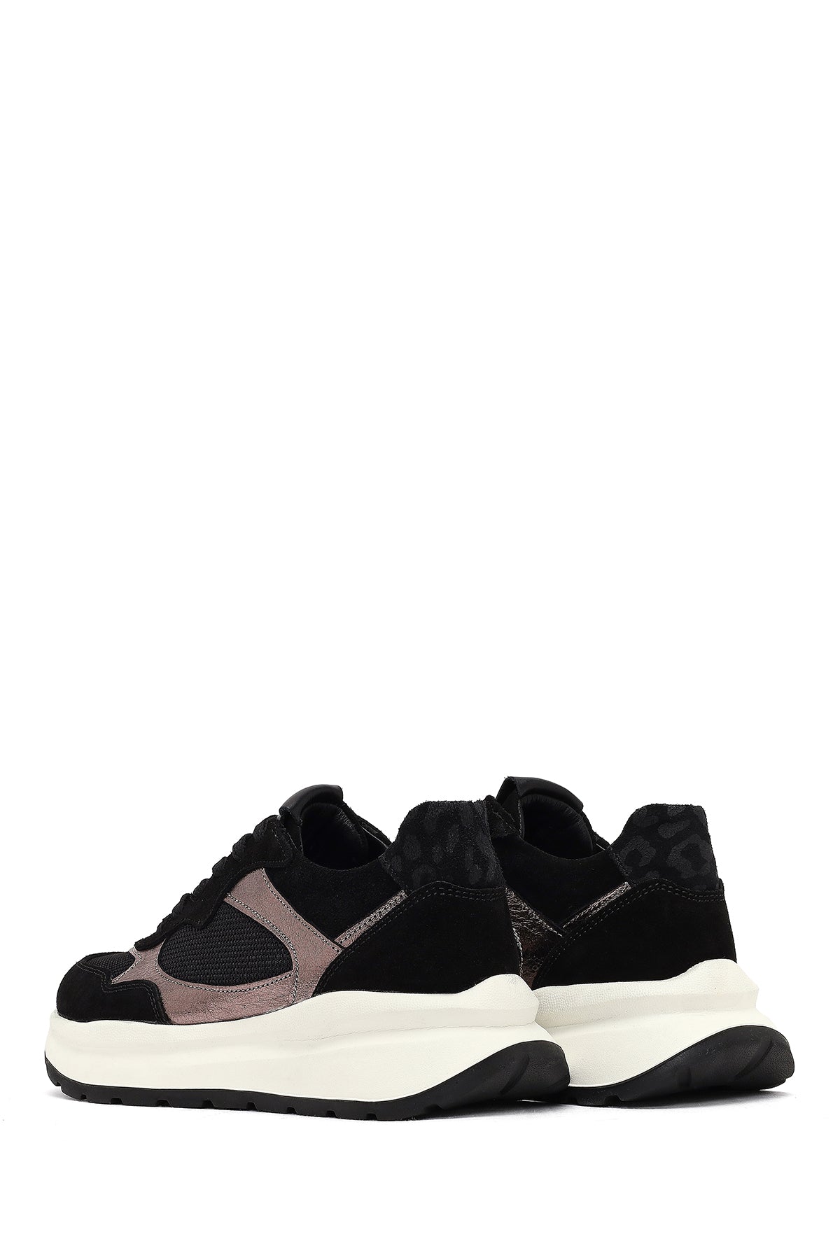 Kadın Siyah Bağcıklı Kalın Tabanlı Deri Sneaker