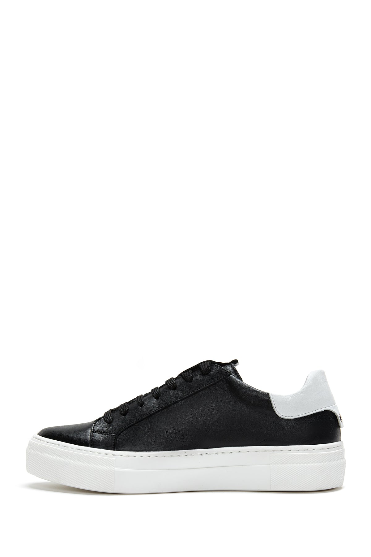 Kadın Siyah Bağcıklı Kalın Tabanlı Deri Sneaker