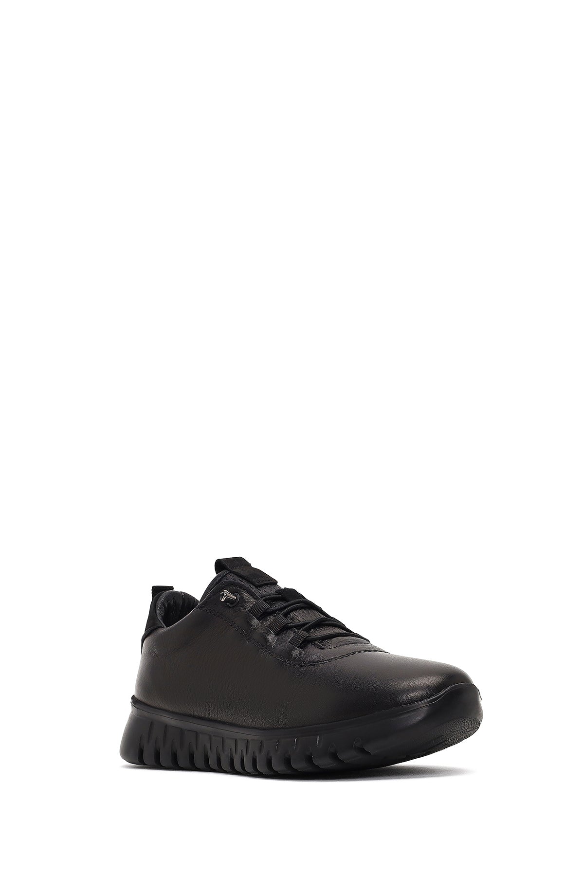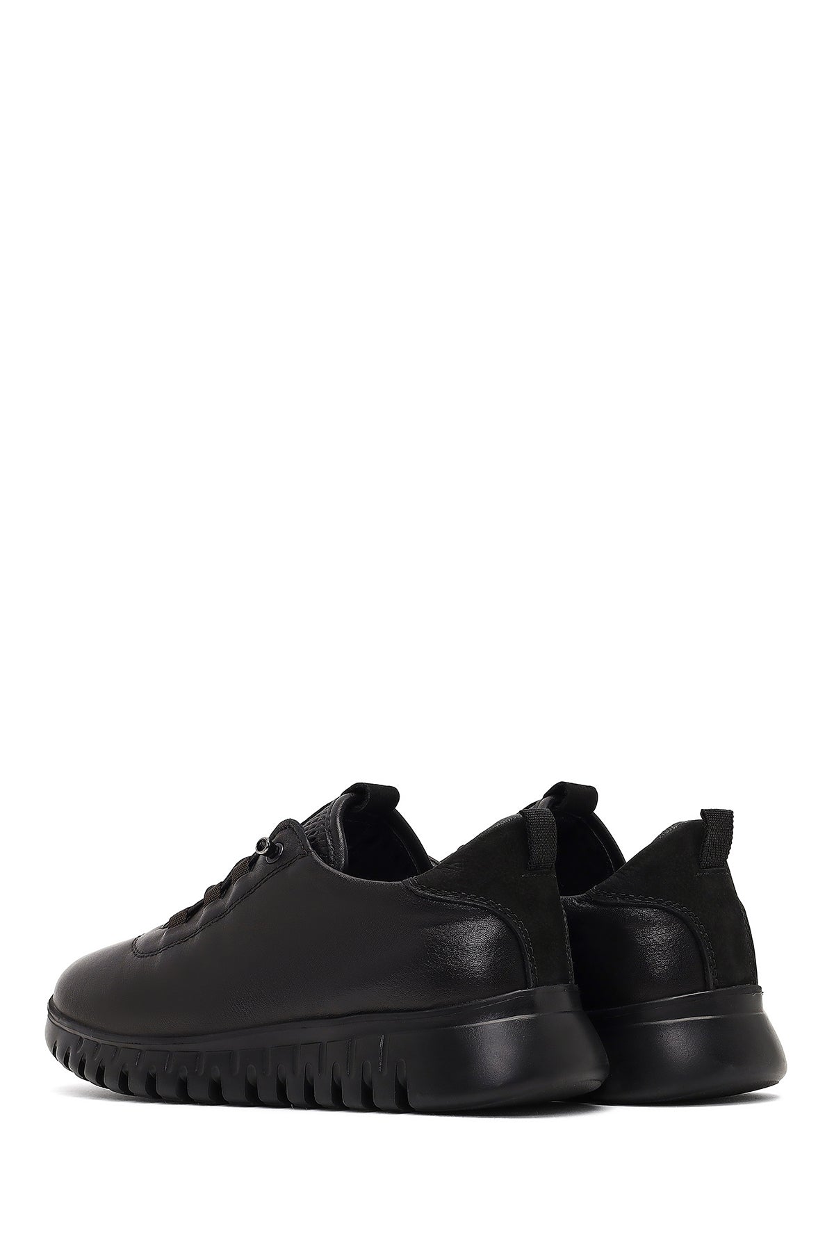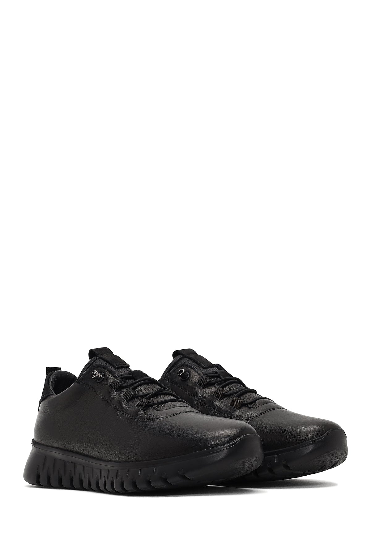 Kadın Siyah Bağcıklı Kalın Tabanlı Deri Sneaker