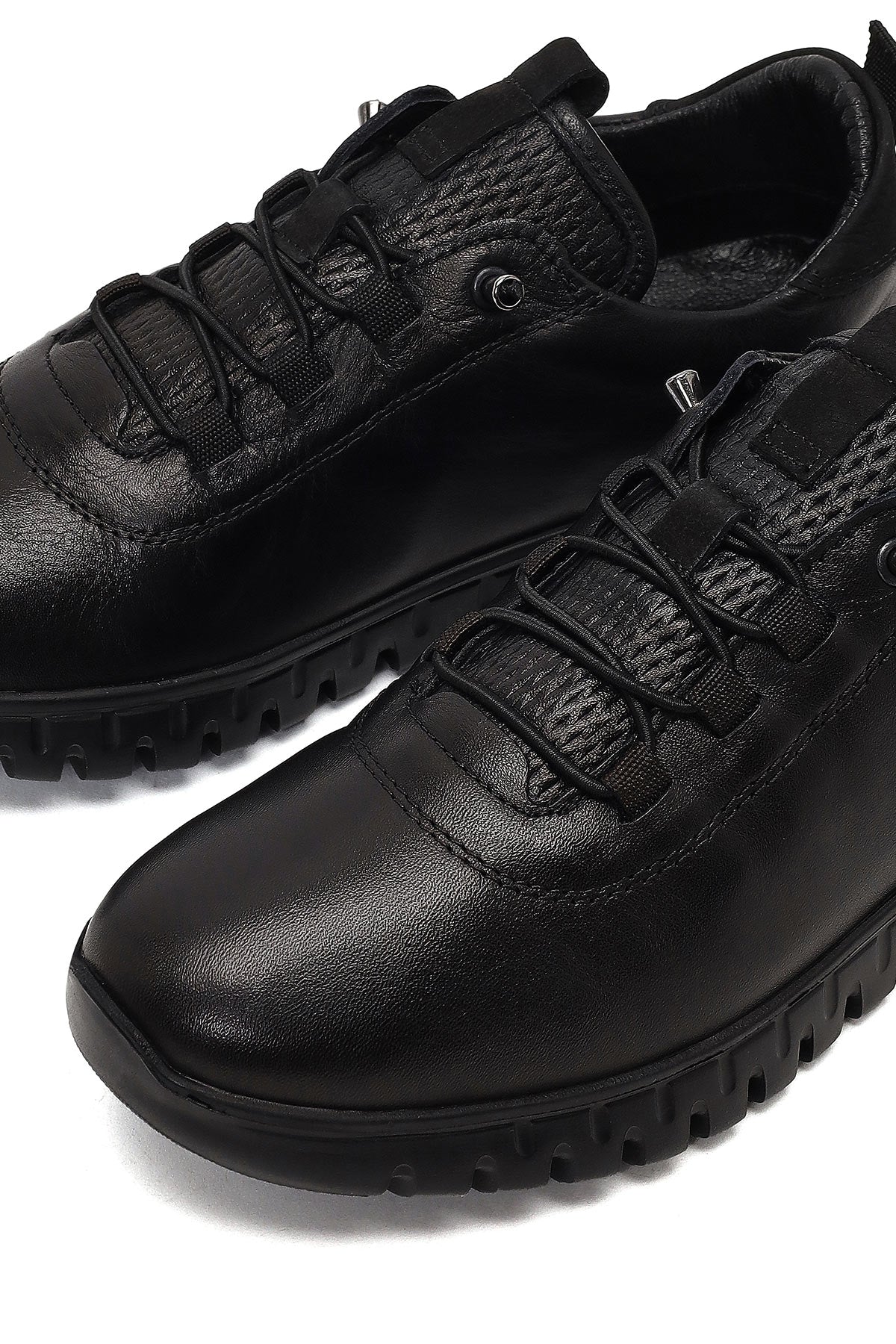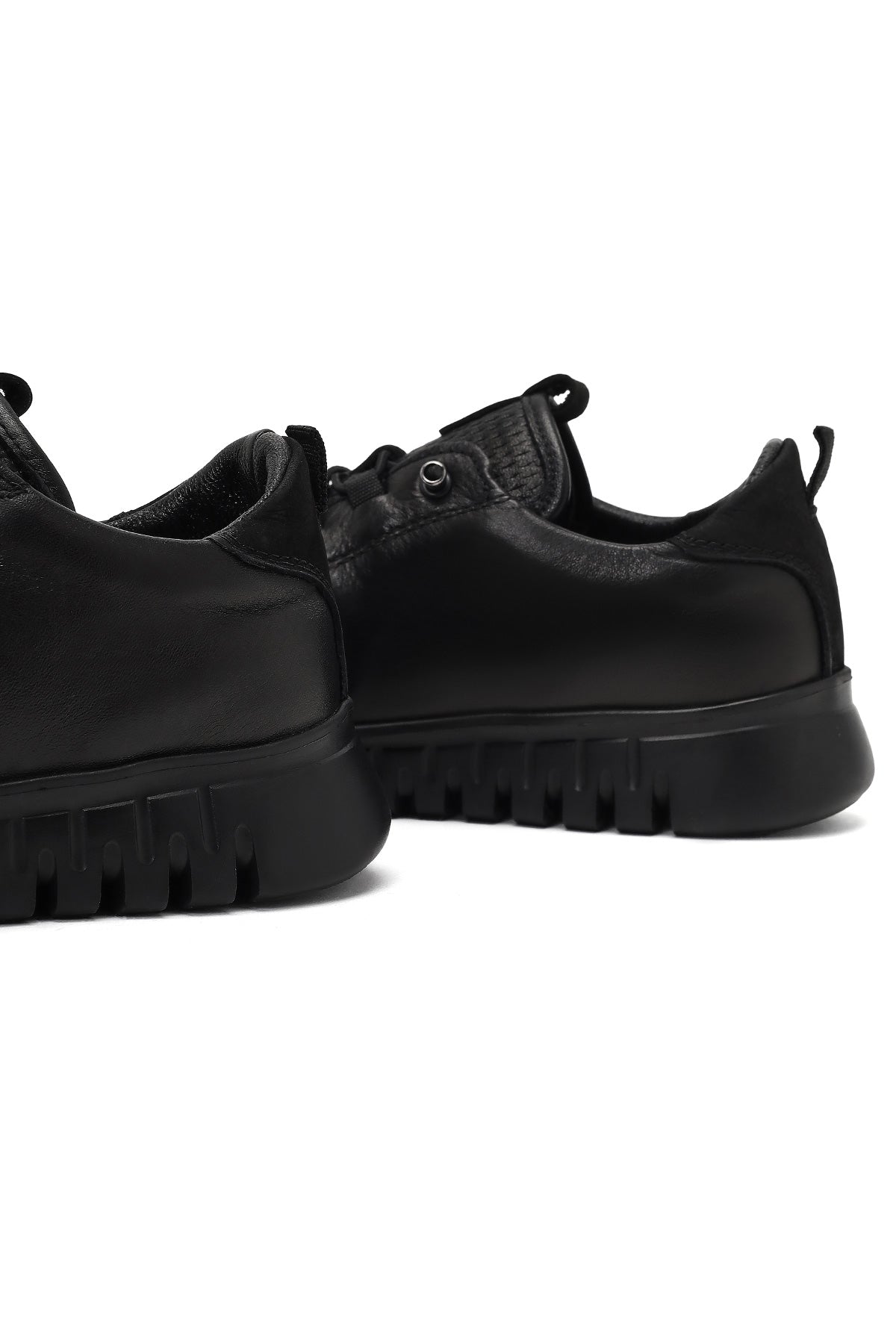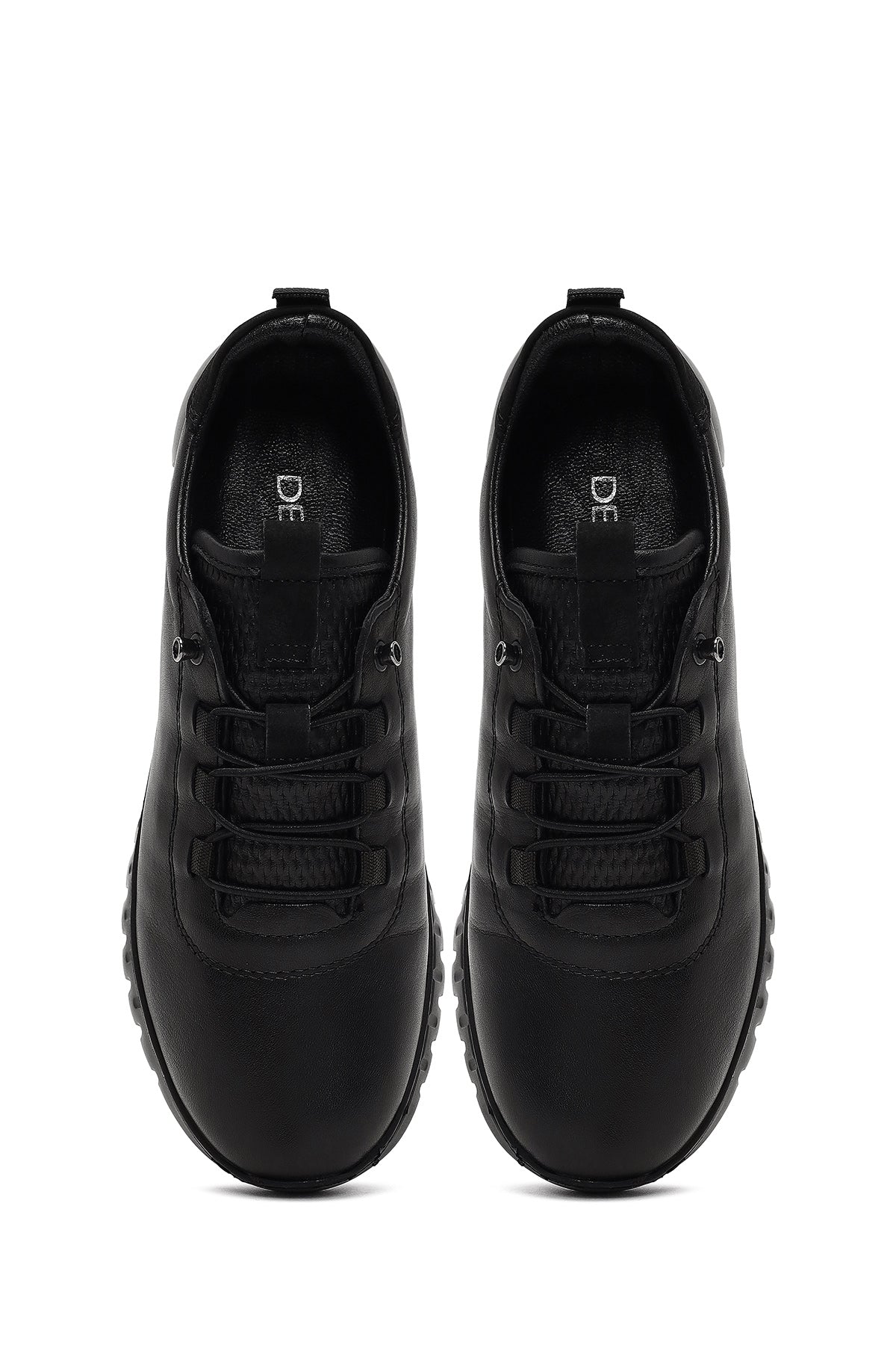 Kadın Siyah Bağcıklı Kalın Tabanlı Deri Sneaker