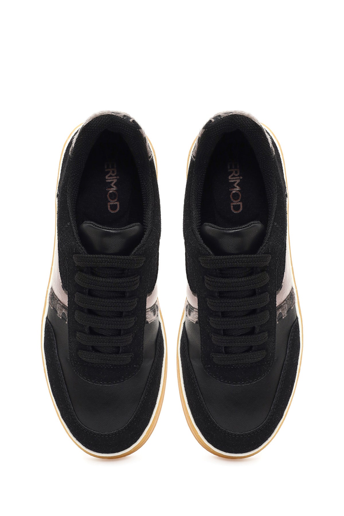 Kadın Siyah Bağcıklı Kalın Tabanlı Desenli Sneaker