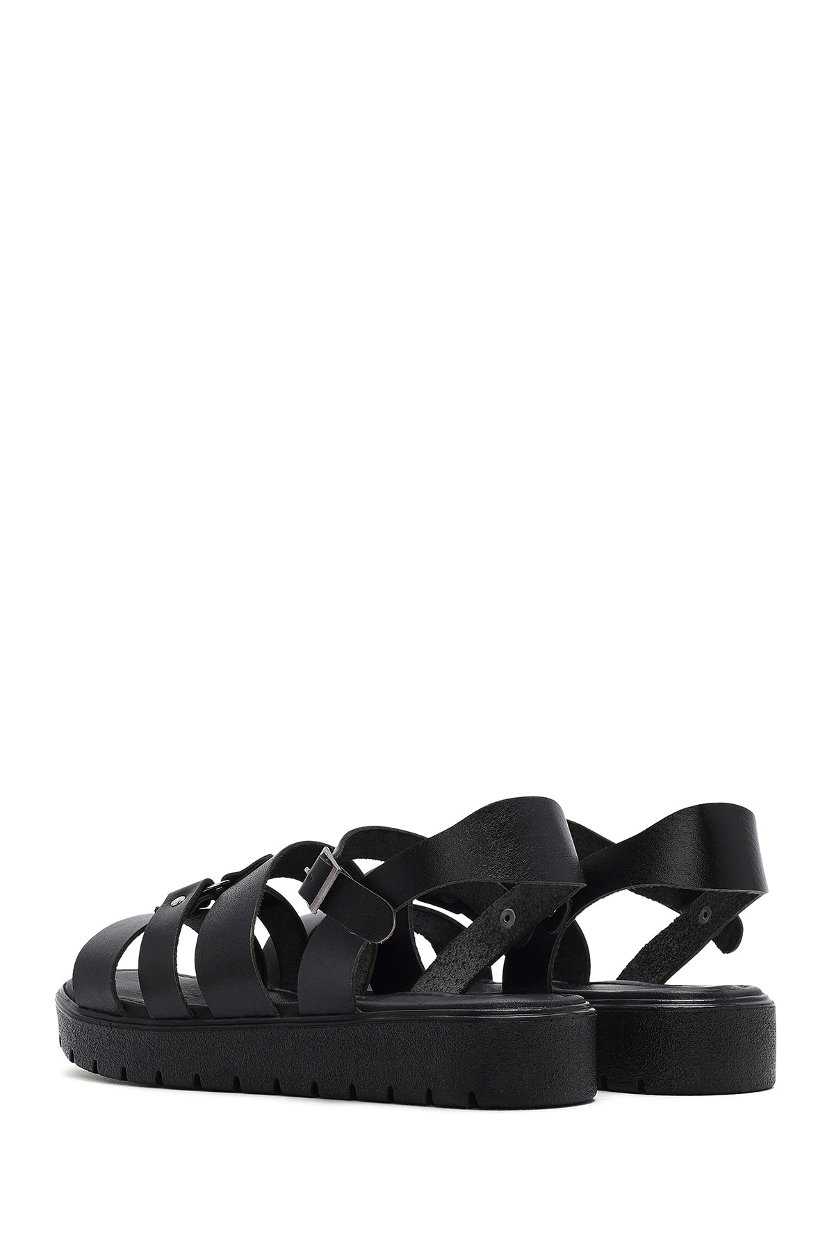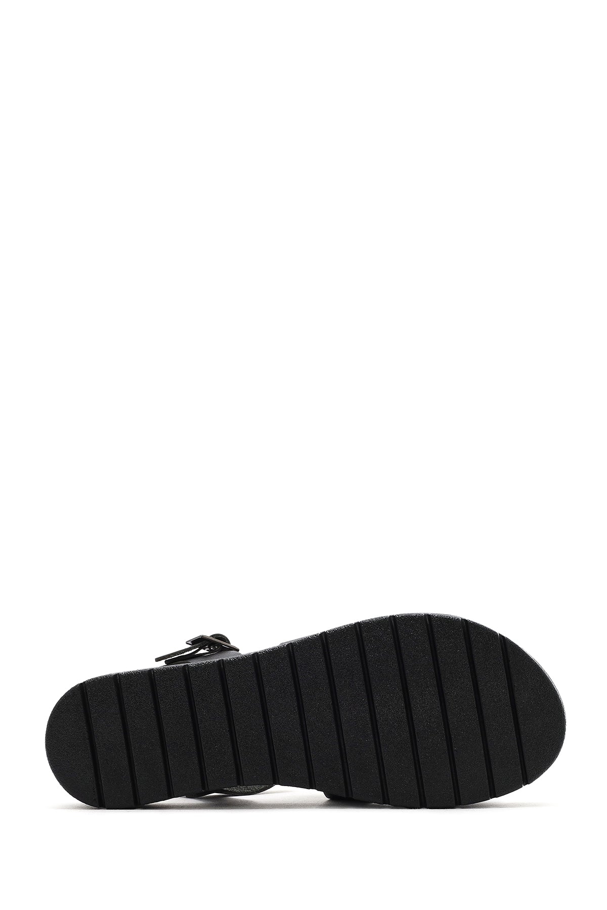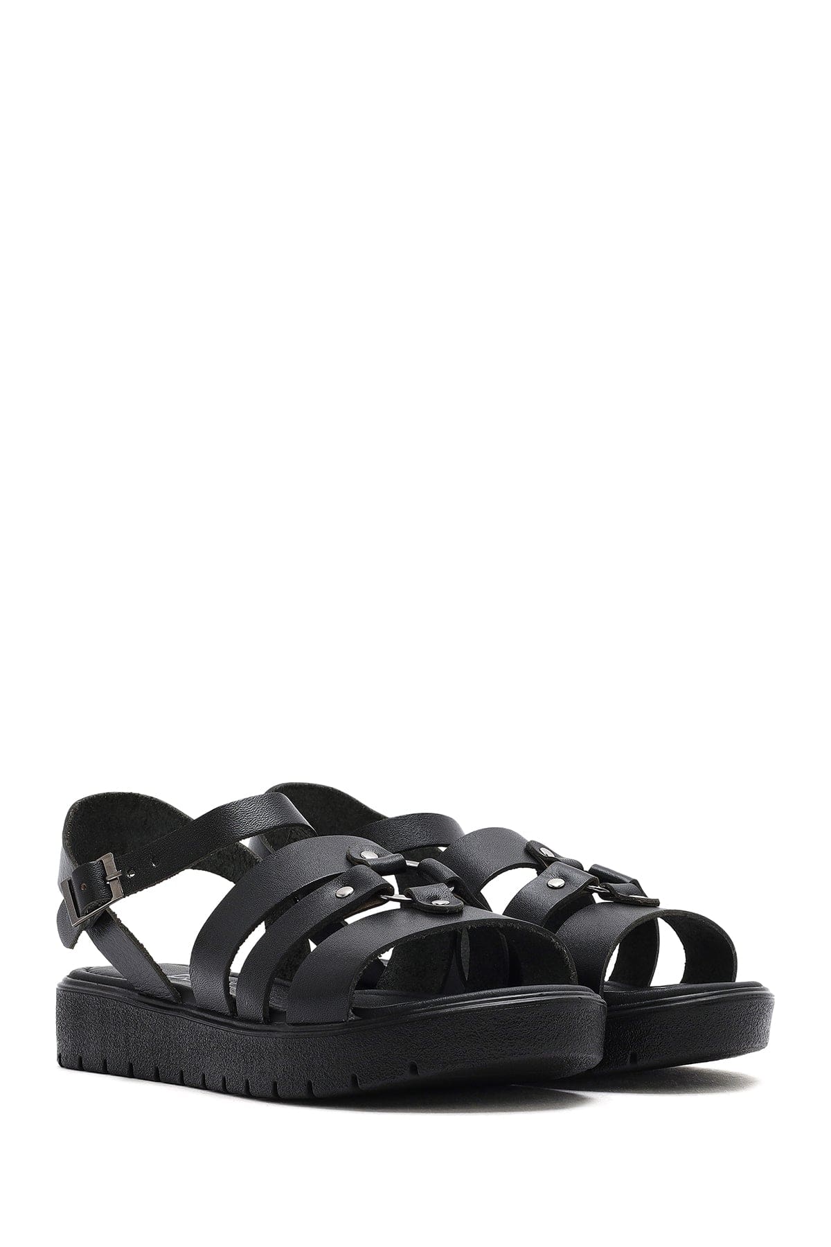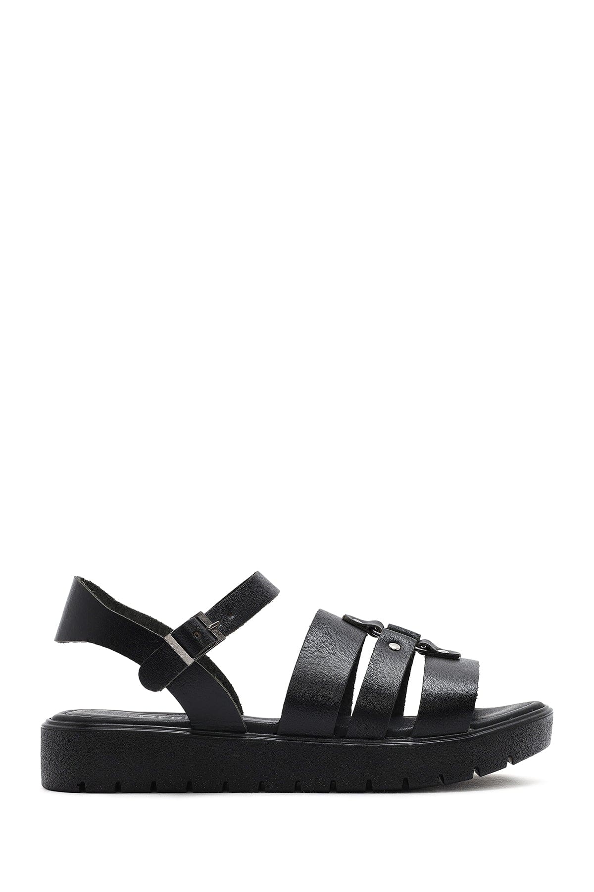 Kadın Siyah Bilekten Tokalı Deri Sandalet