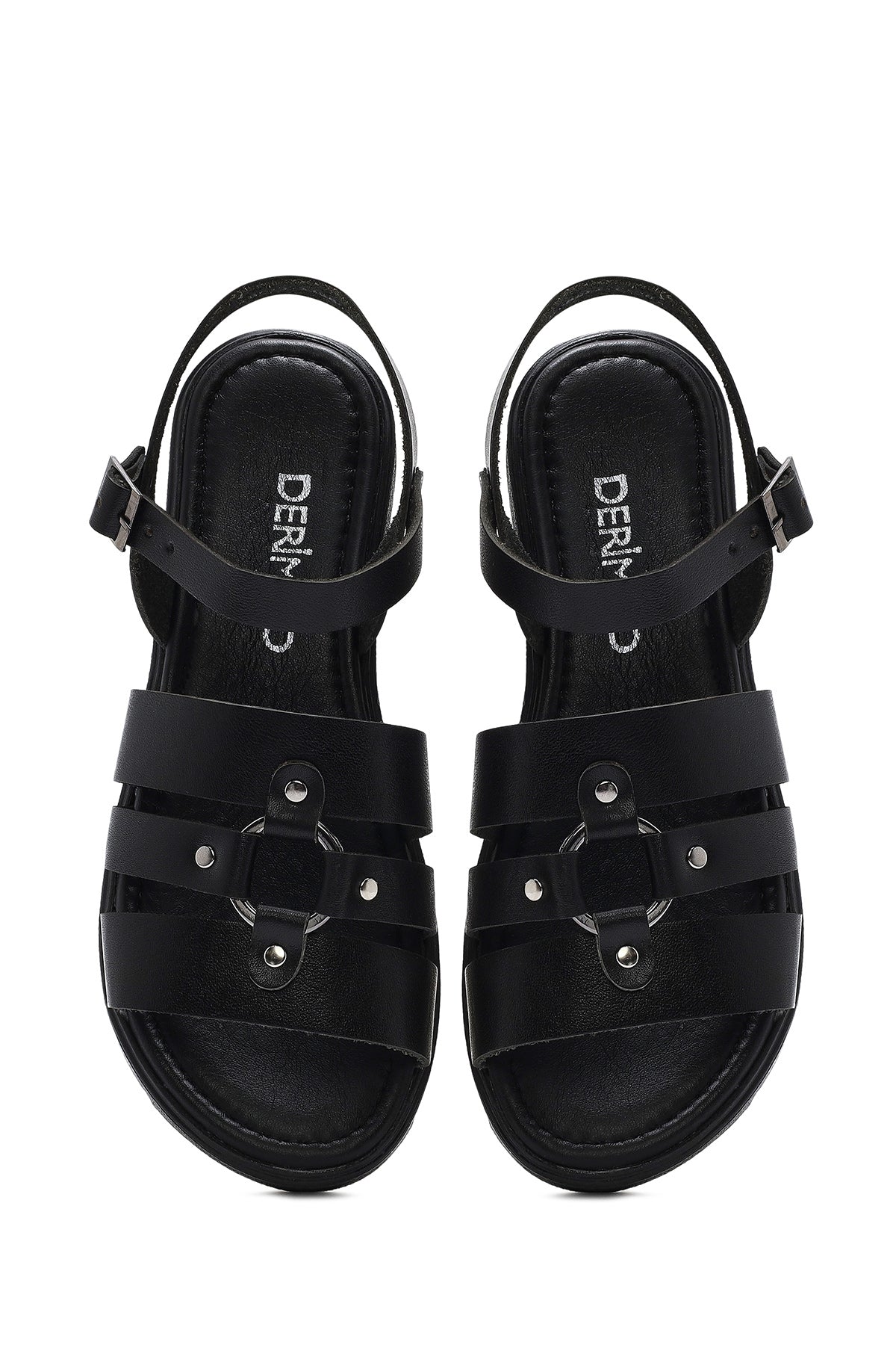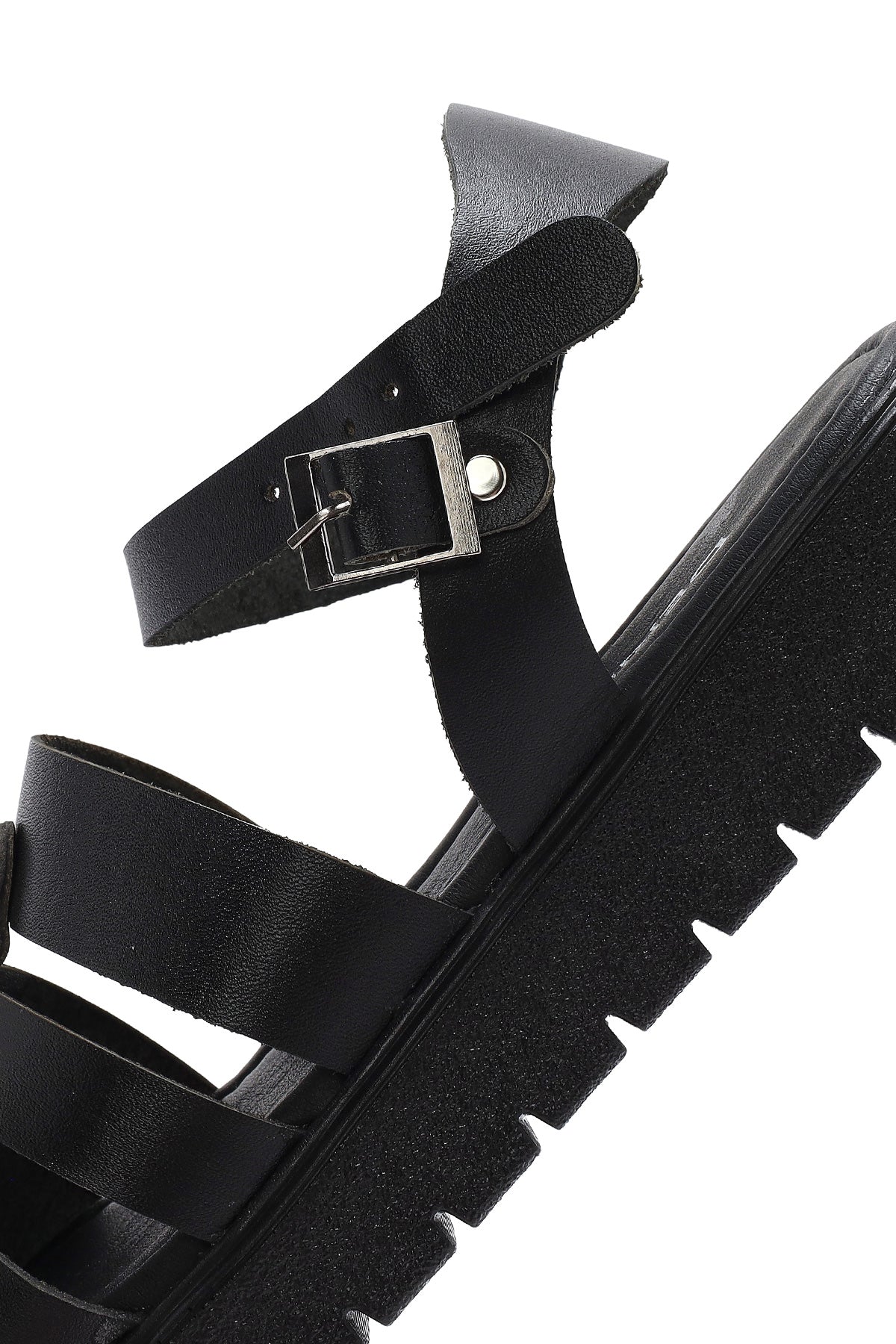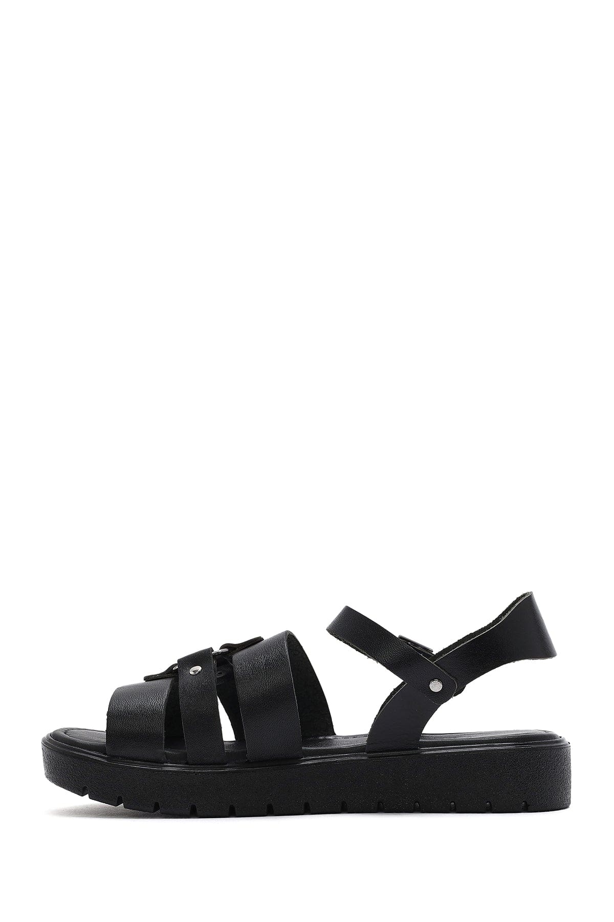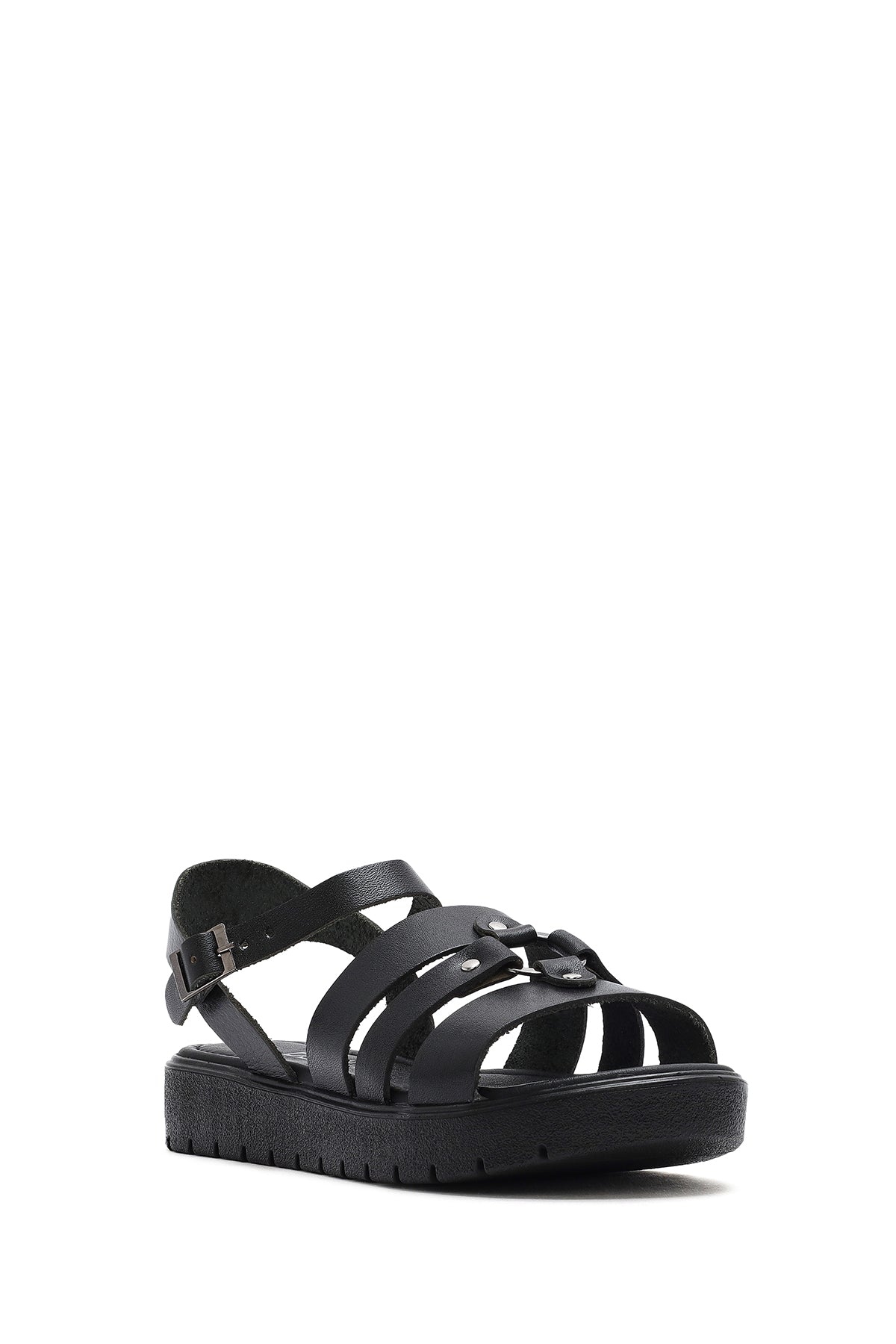 Kadın Siyah Bilekten Tokalı Deri Sandalet