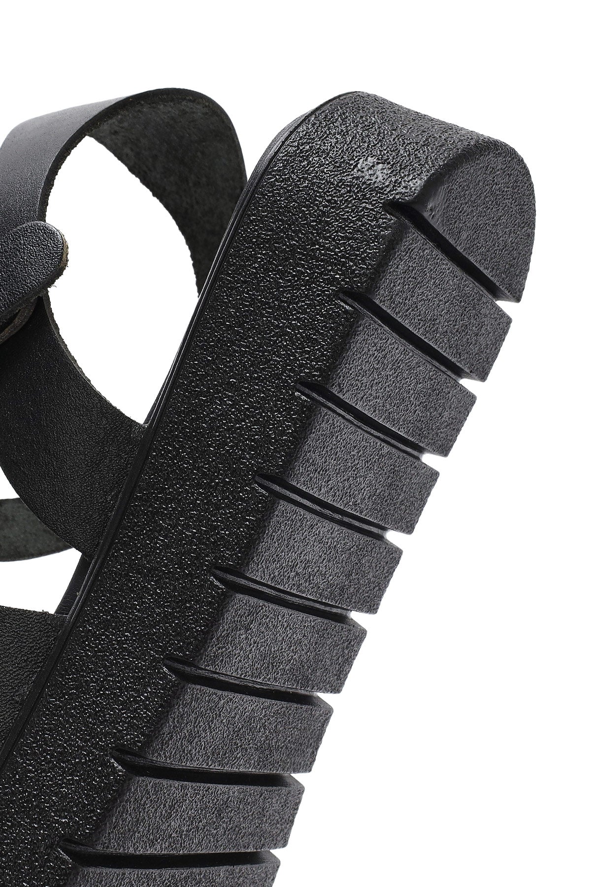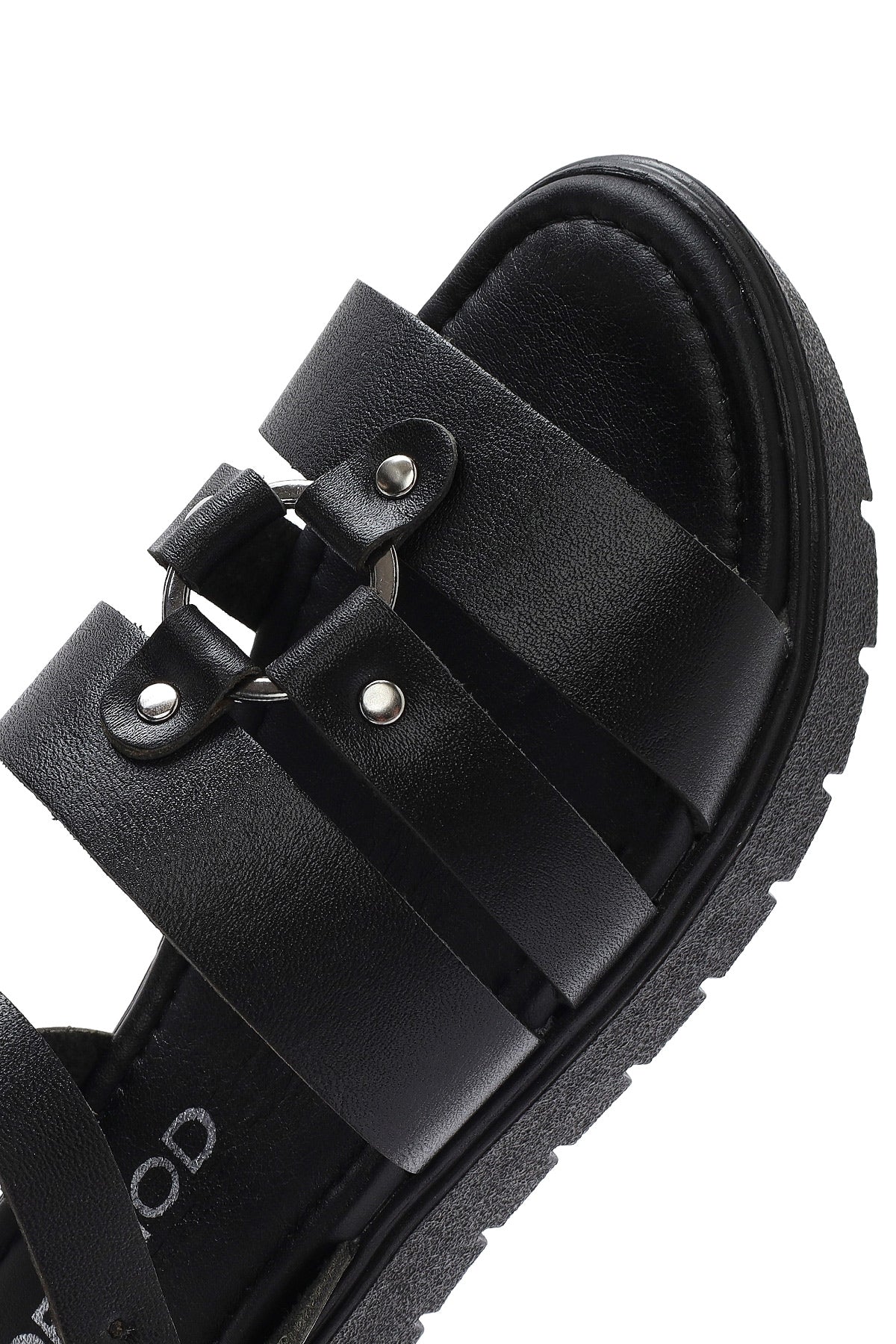 صندل زنانه مشکی چرم بنددار دری مد