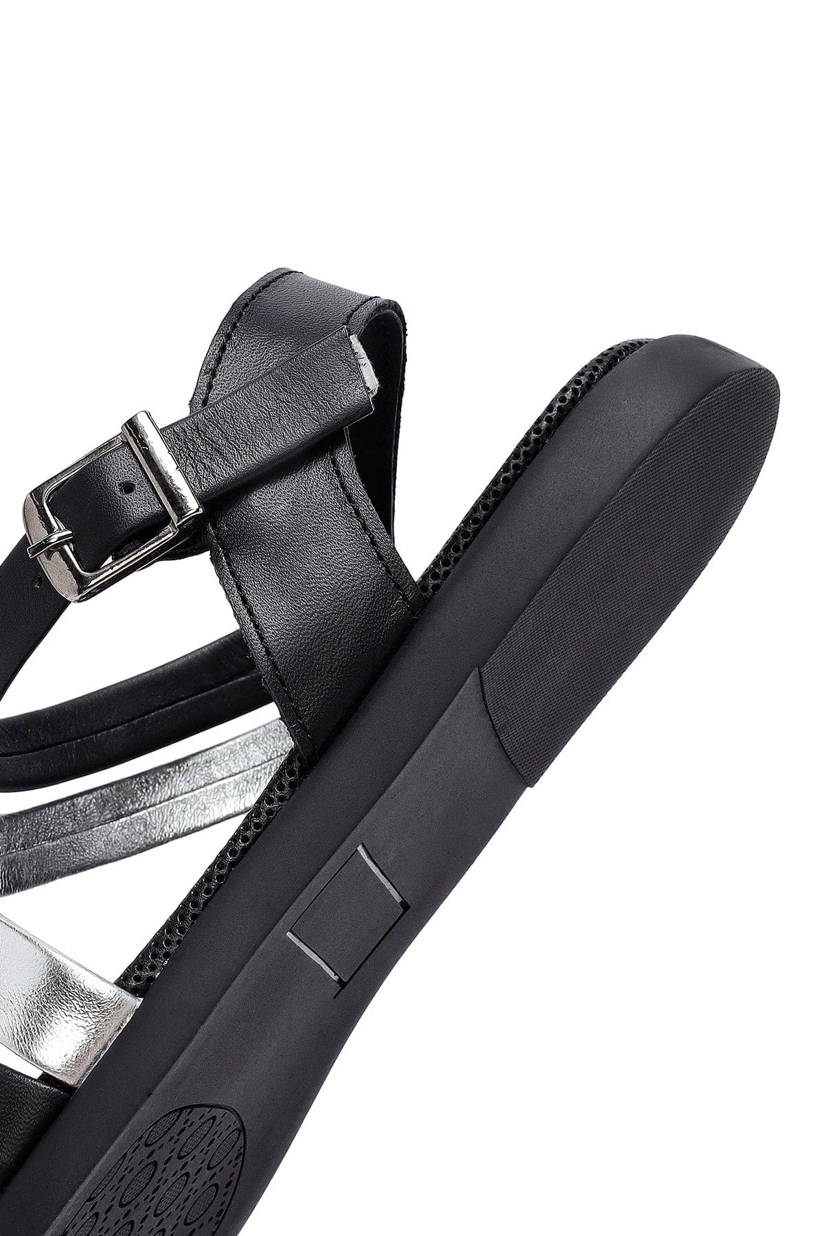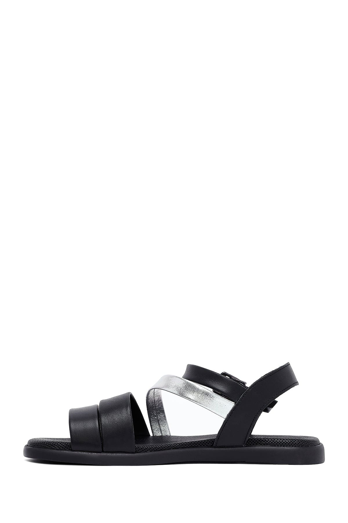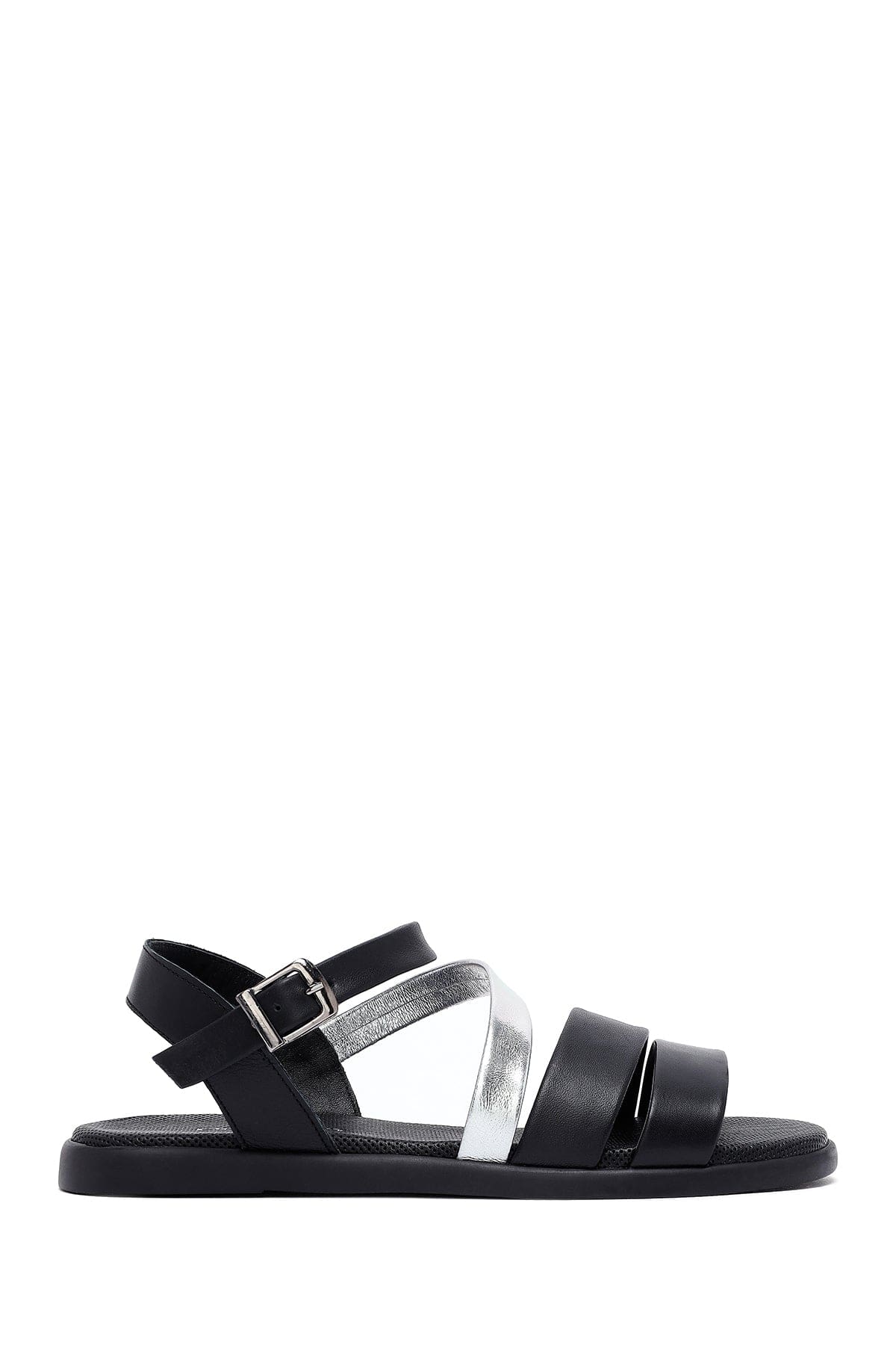Kadın Siyah Bilekten Tokalı Deri Sandalet