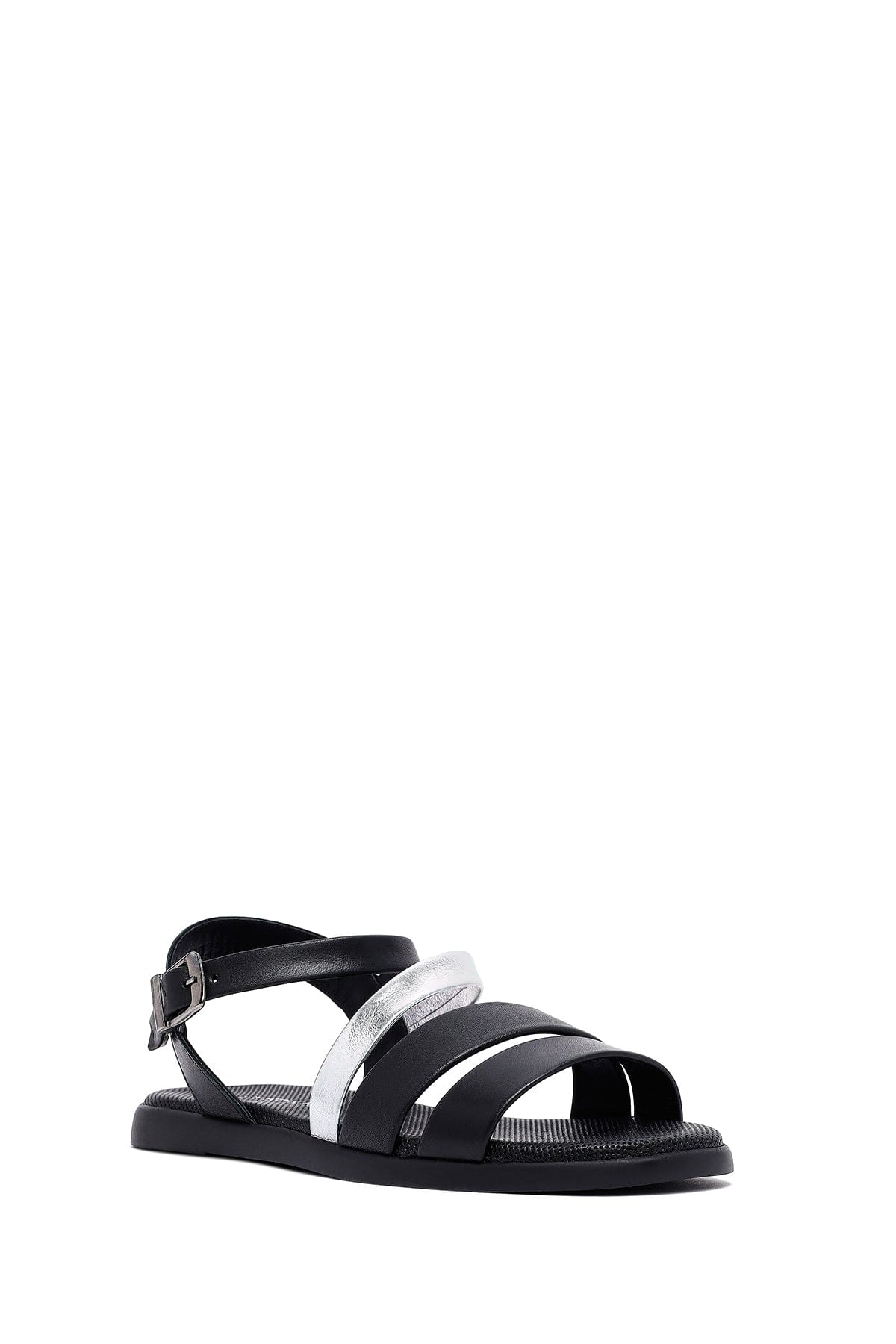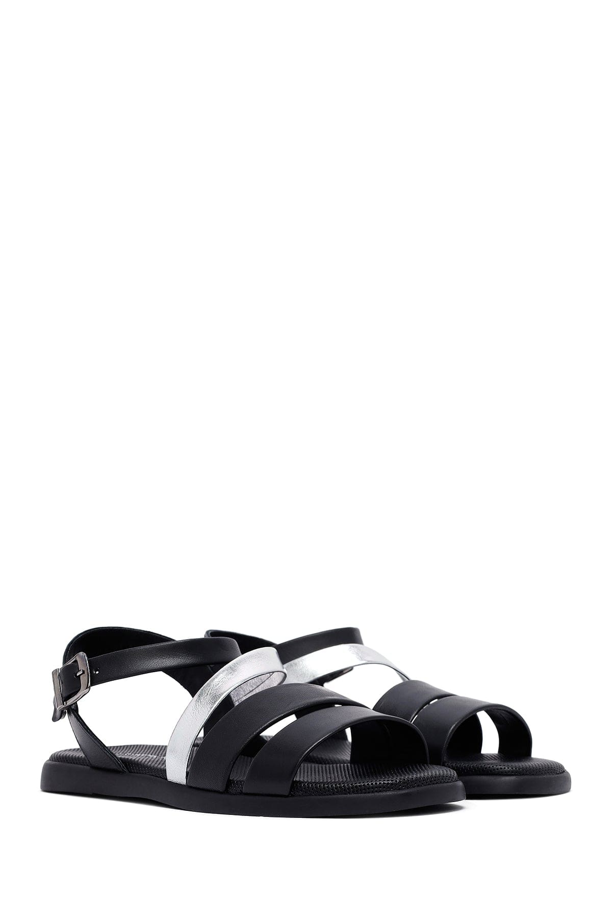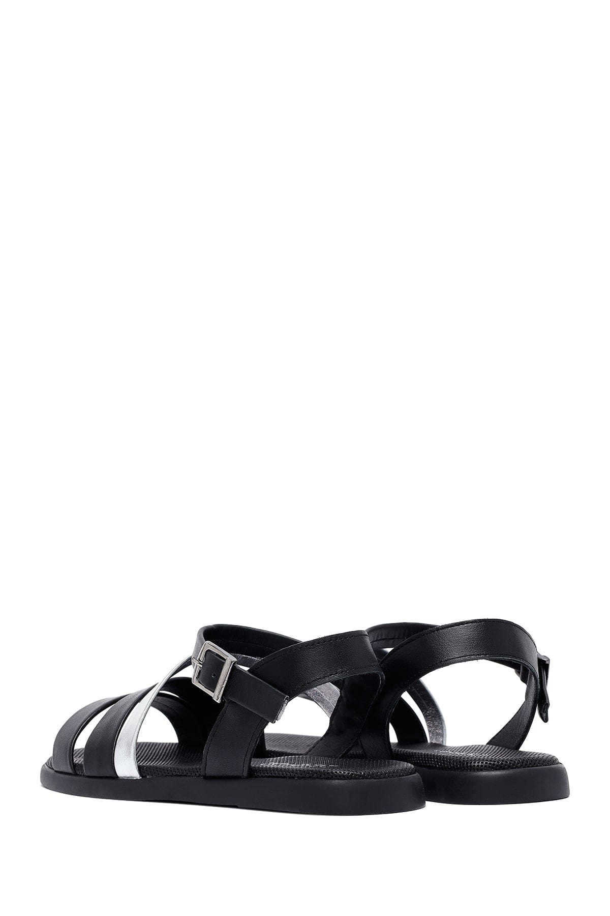 Kadın Siyah Bilekten Tokalı Deri Sandalet