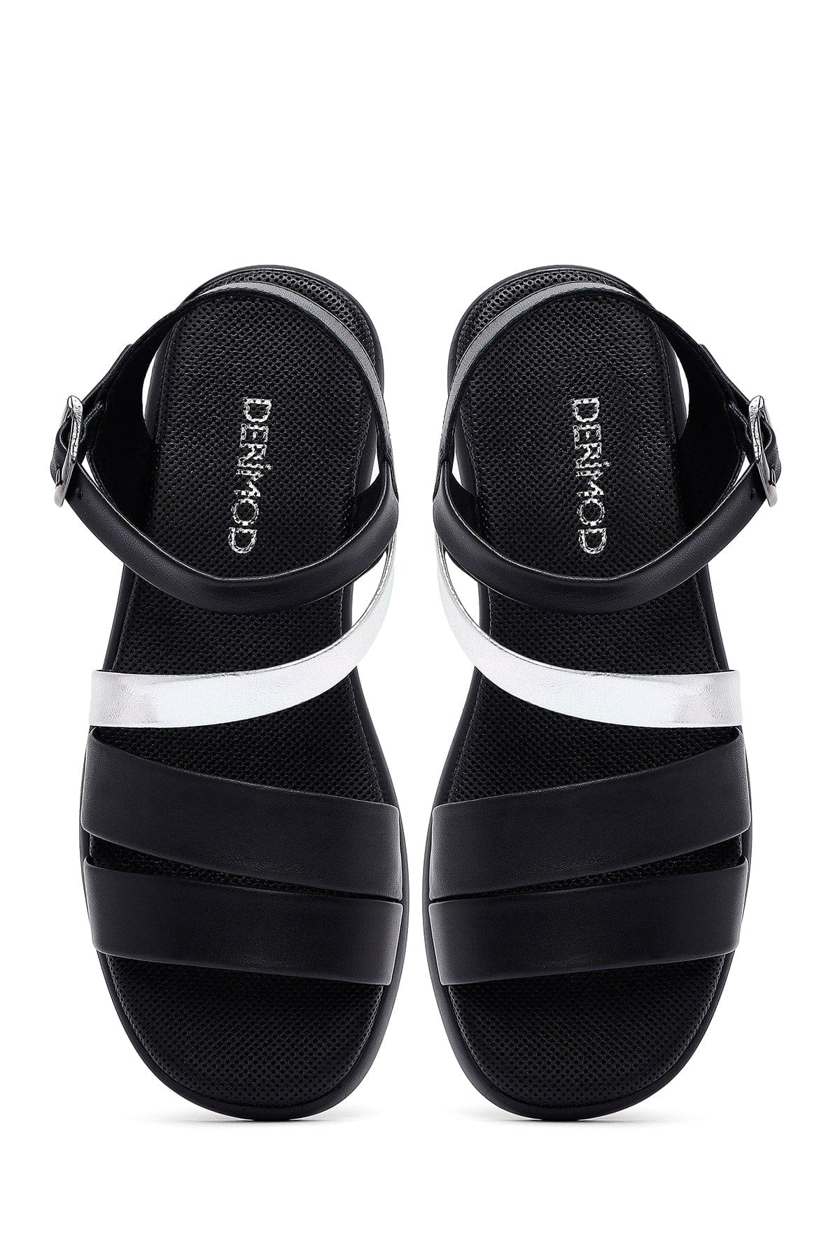 صندل زنانه مشکی چرم بنددار دری مد