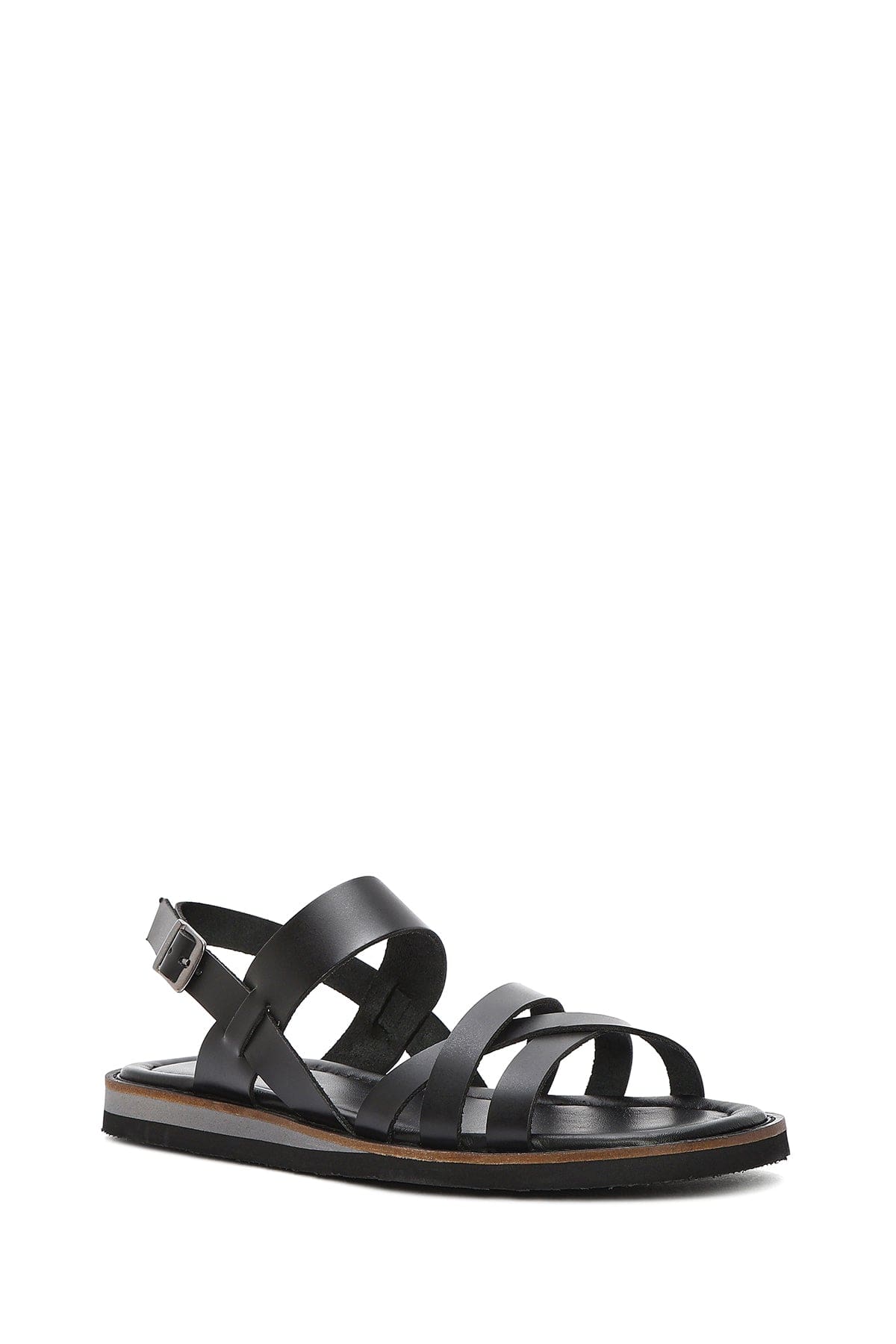 Kadın Siyah Bilekten Tokalı Deri Sandalet