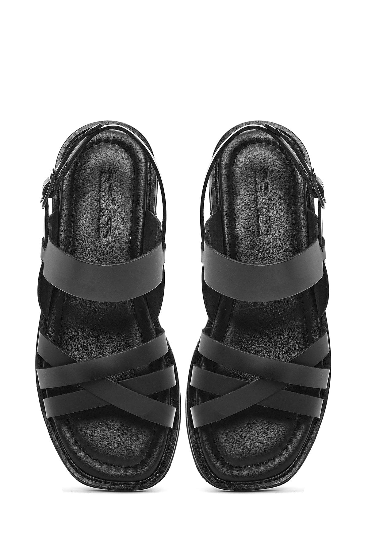صندل زنانه مشکی چرم بنددار دری مد