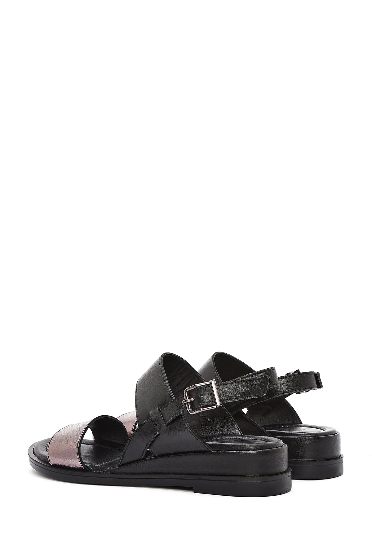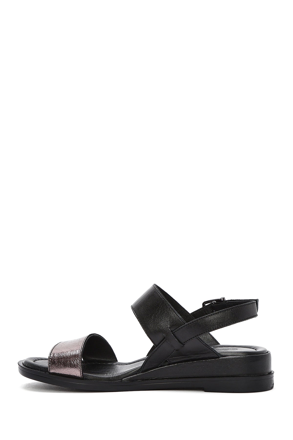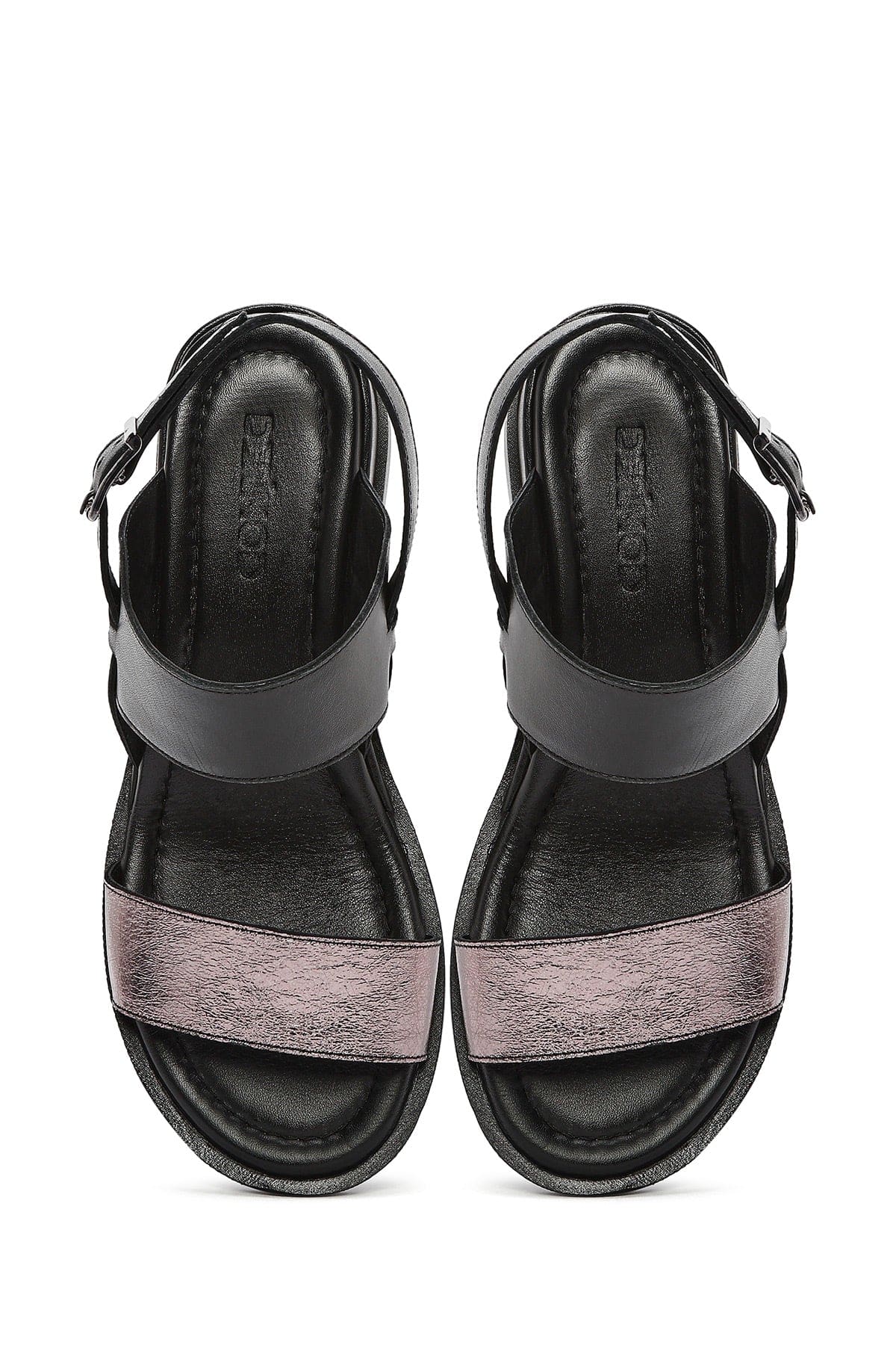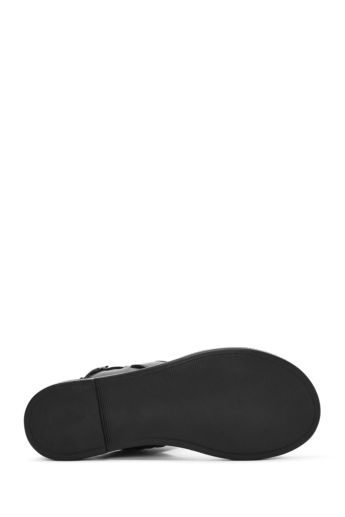 Kadın Siyah Bilekten Tokalı Deri Sandalet