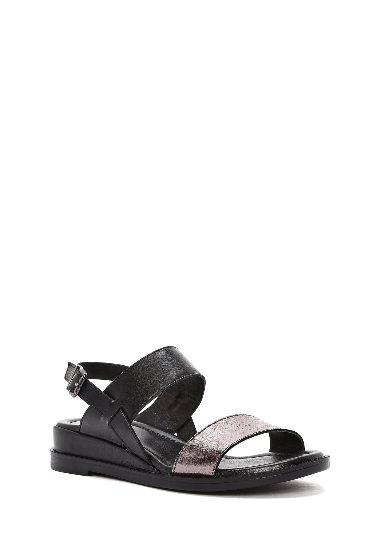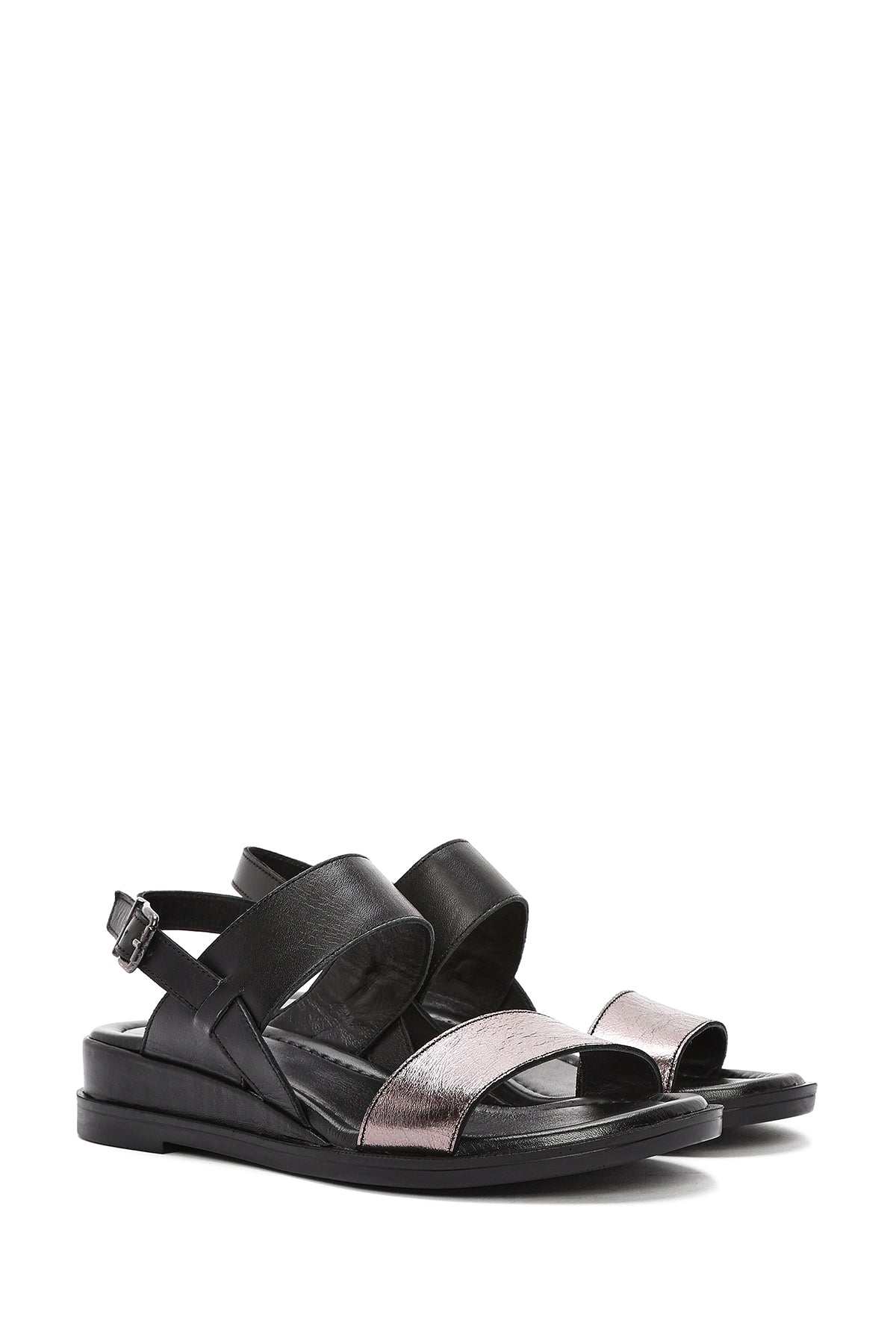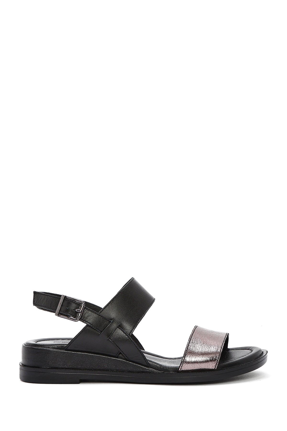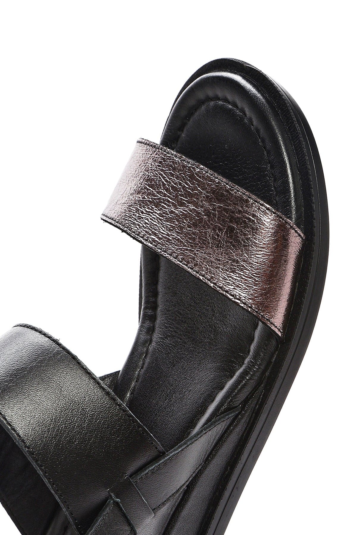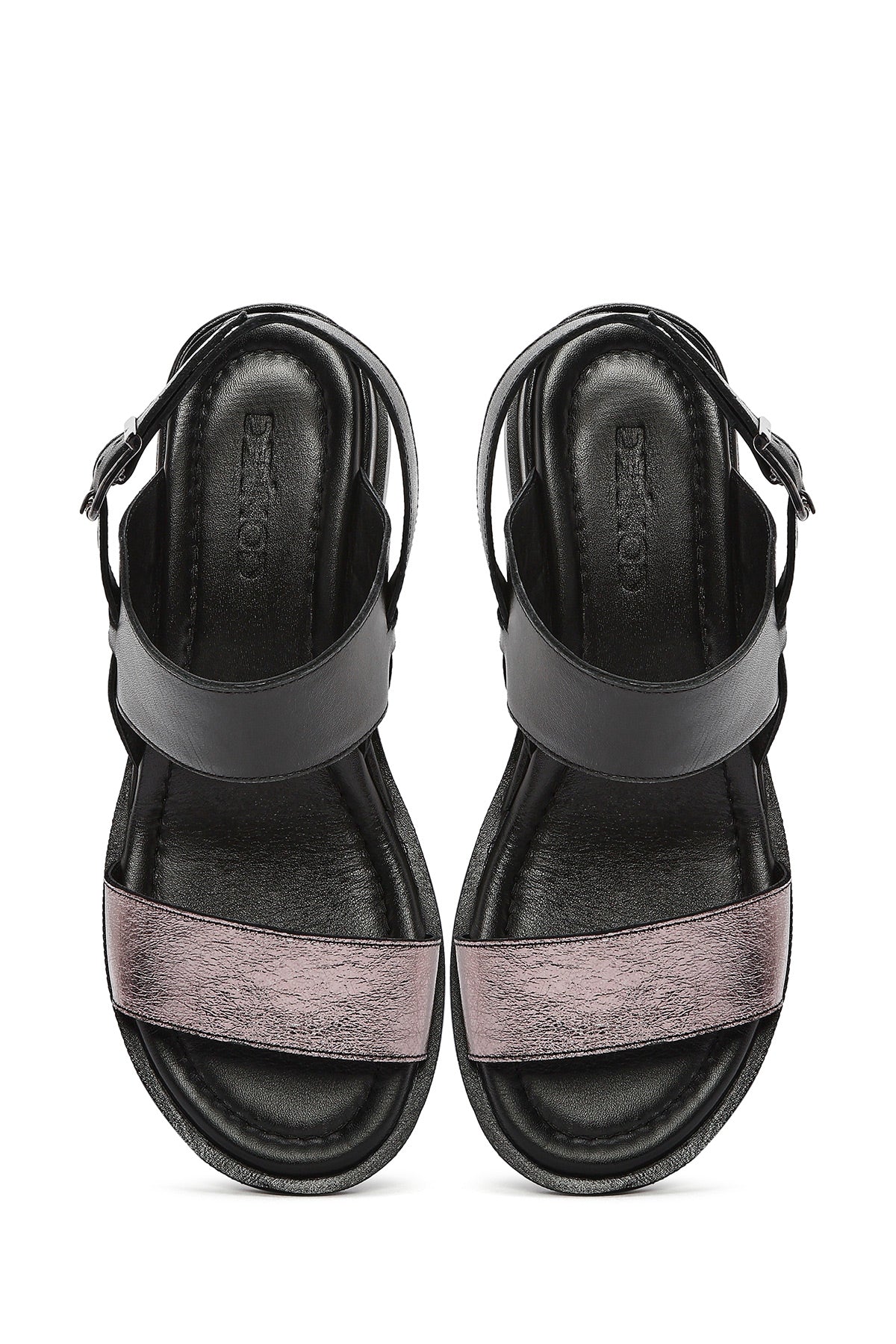 Kadın Siyah Bilekten Tokalı Deri Sandalet