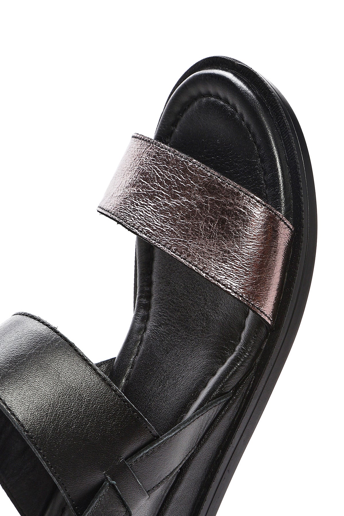 صندل زنانه مشکی چرم بنددار دری مد