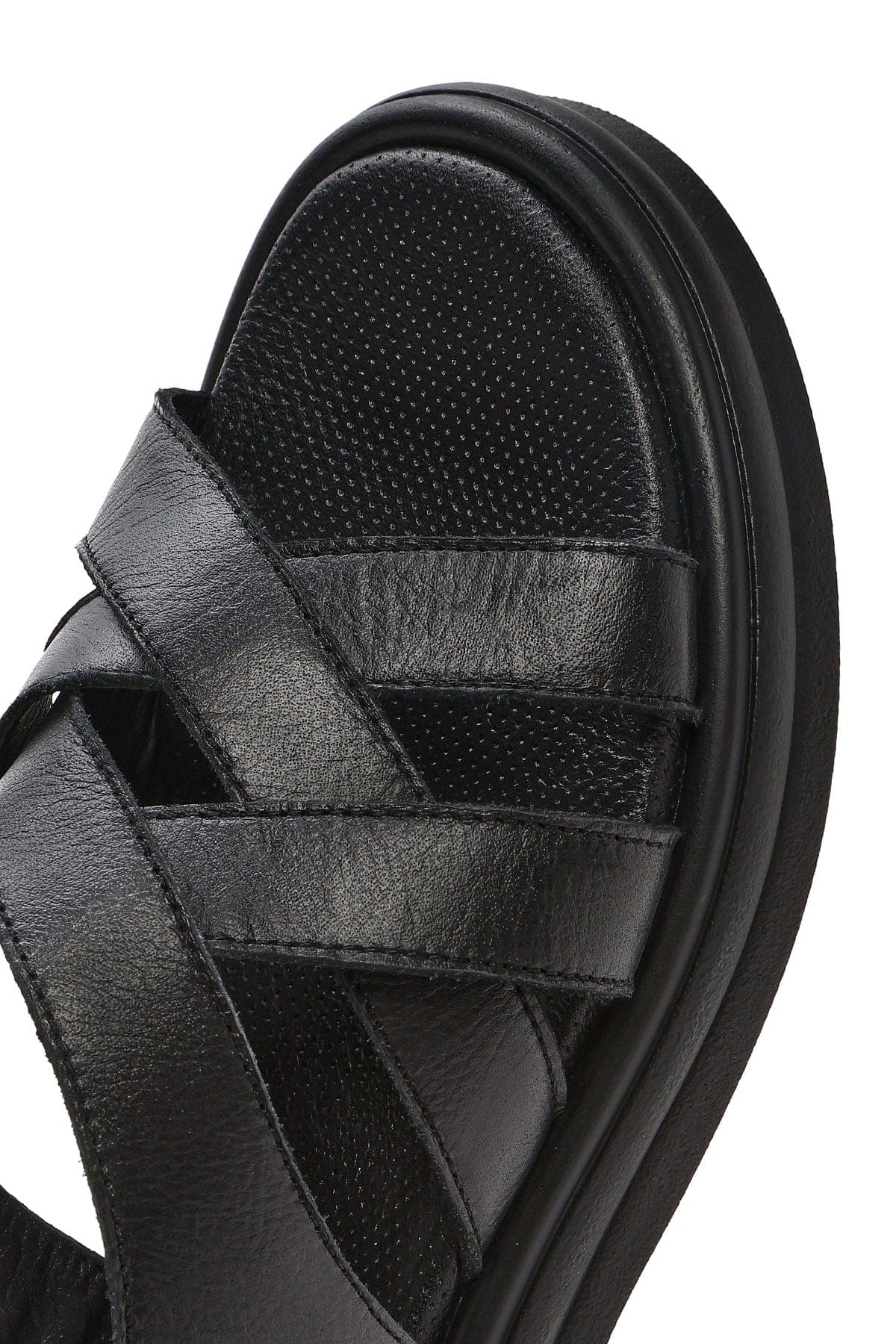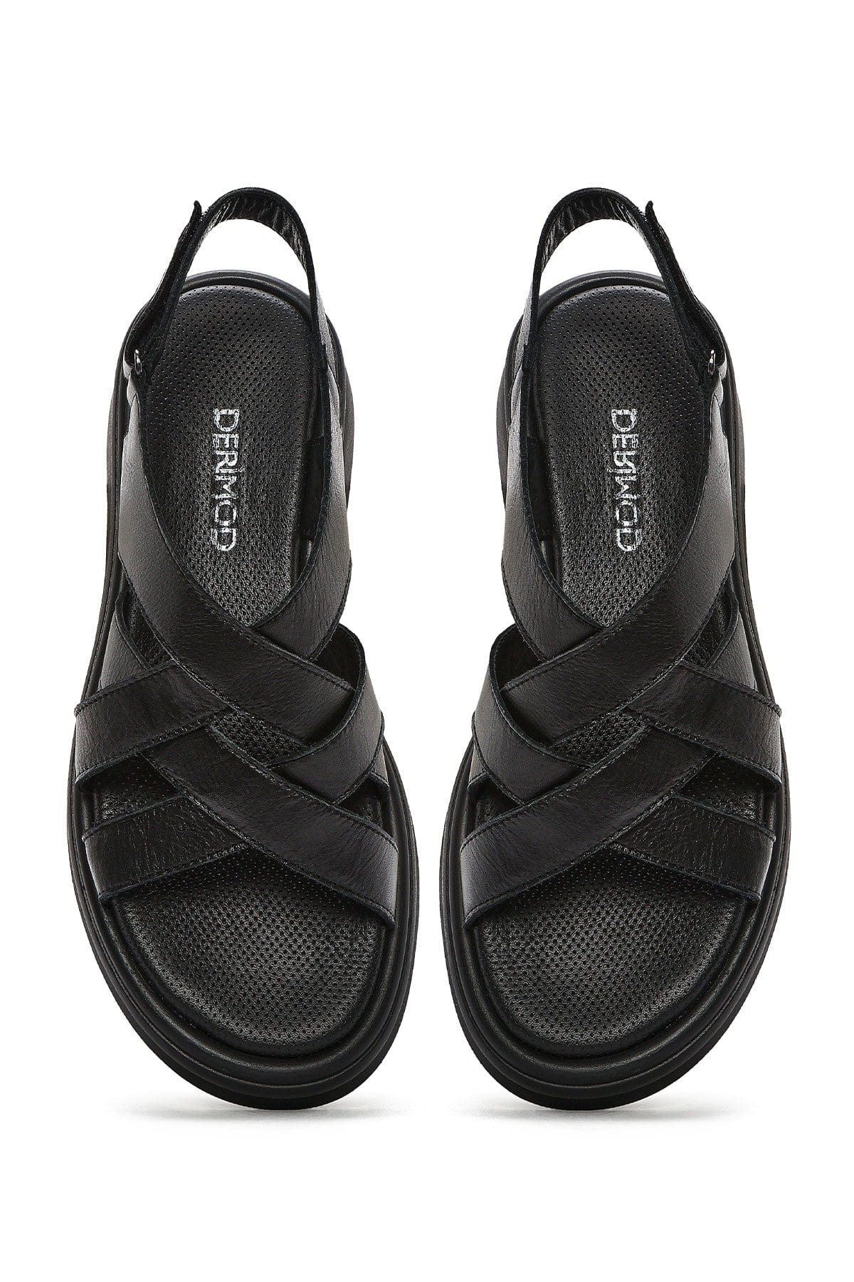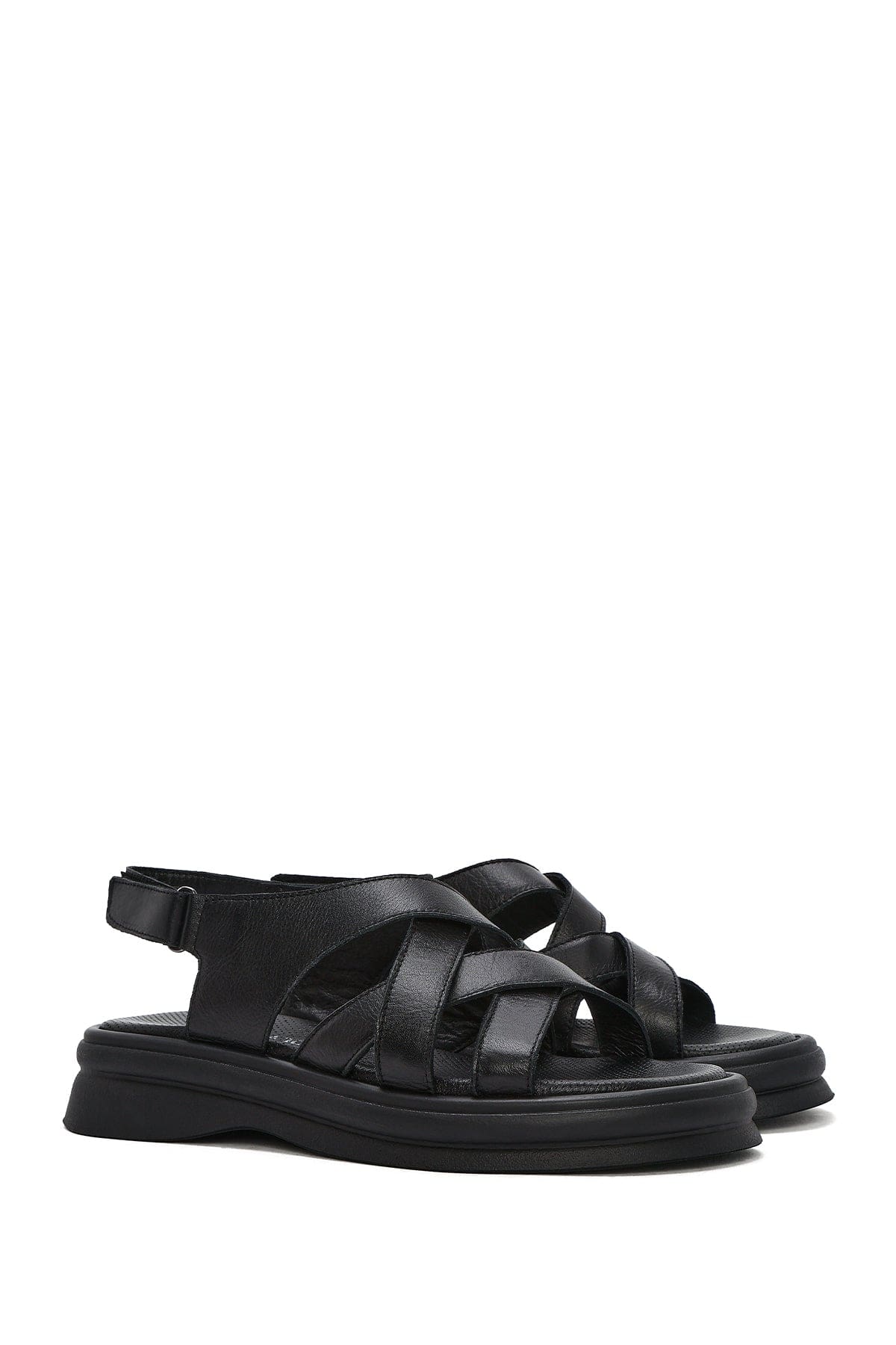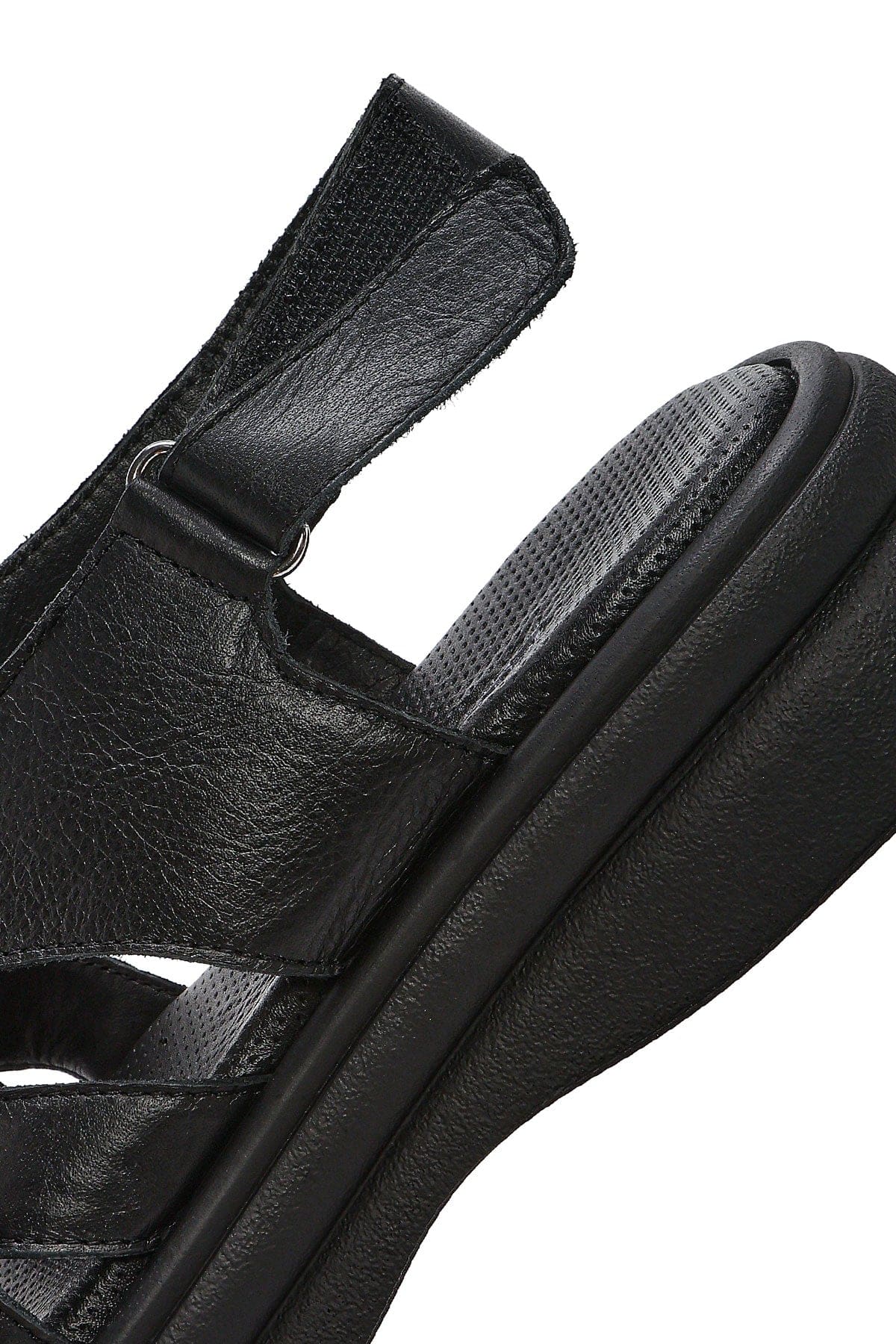 Kadın Siyah Arkası Bantlı Deri Sandalet