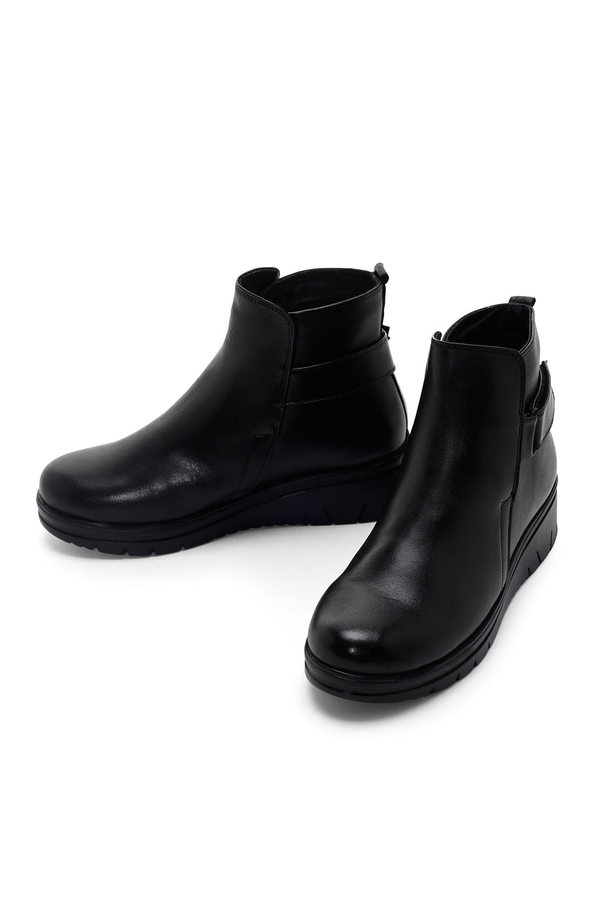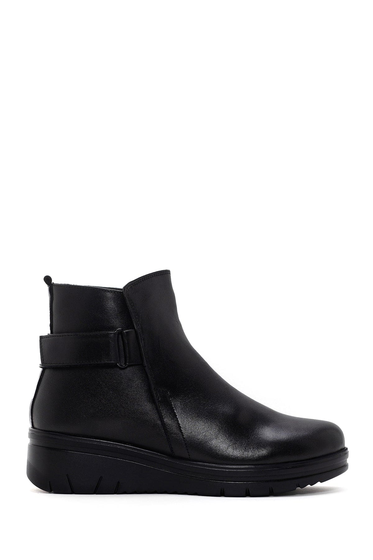 Kadın Siyah Bantlı Deri Comfort Bot