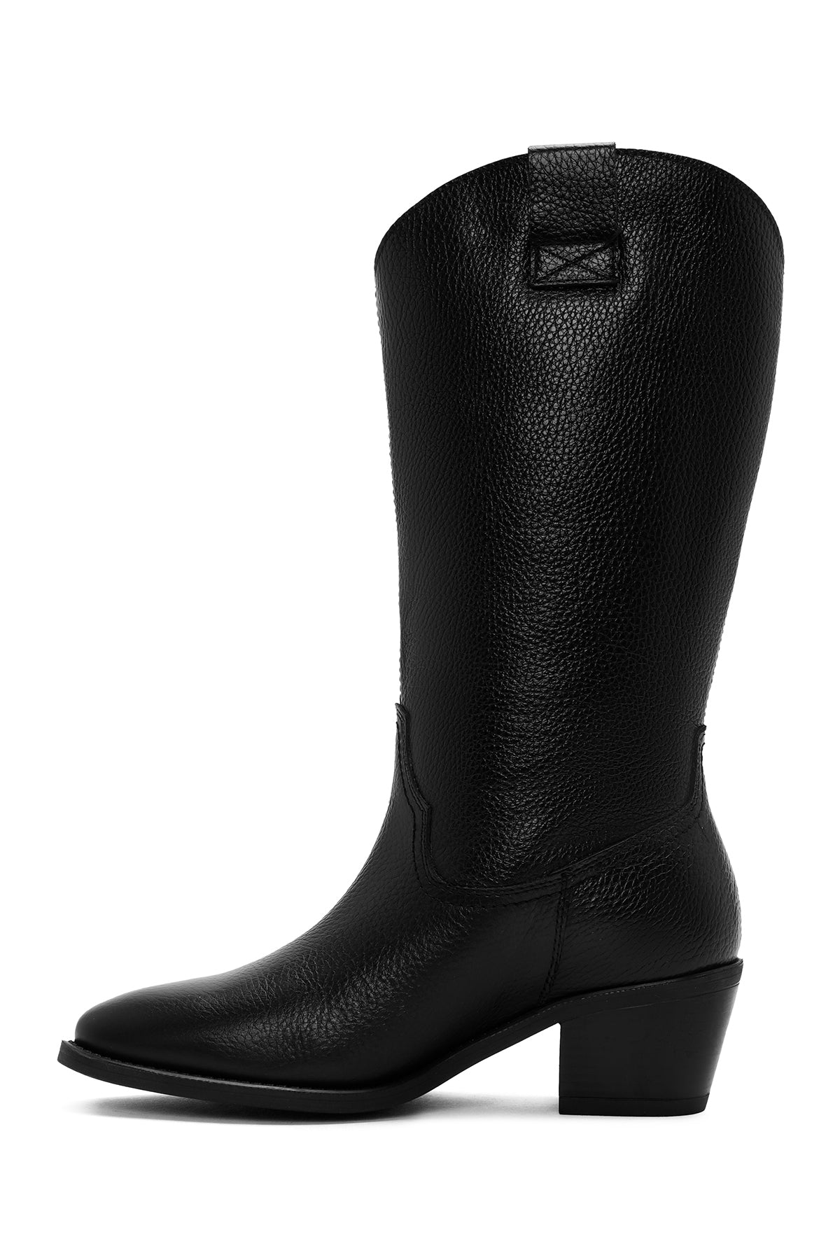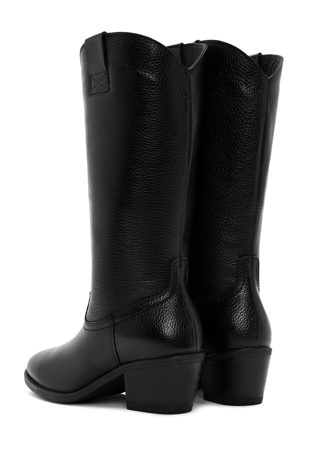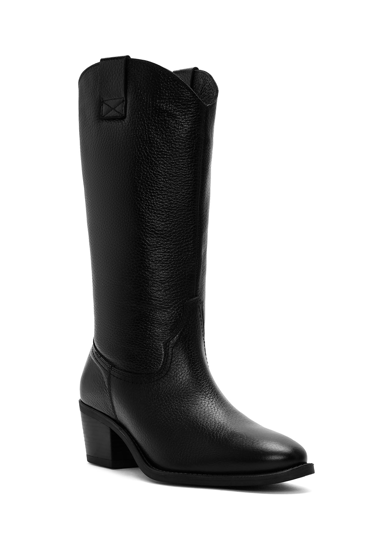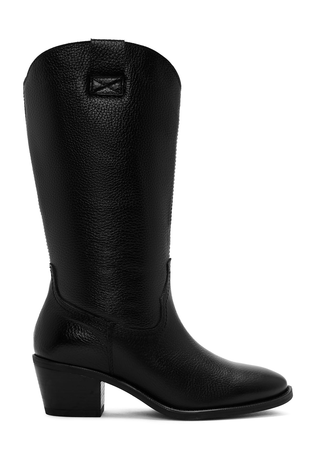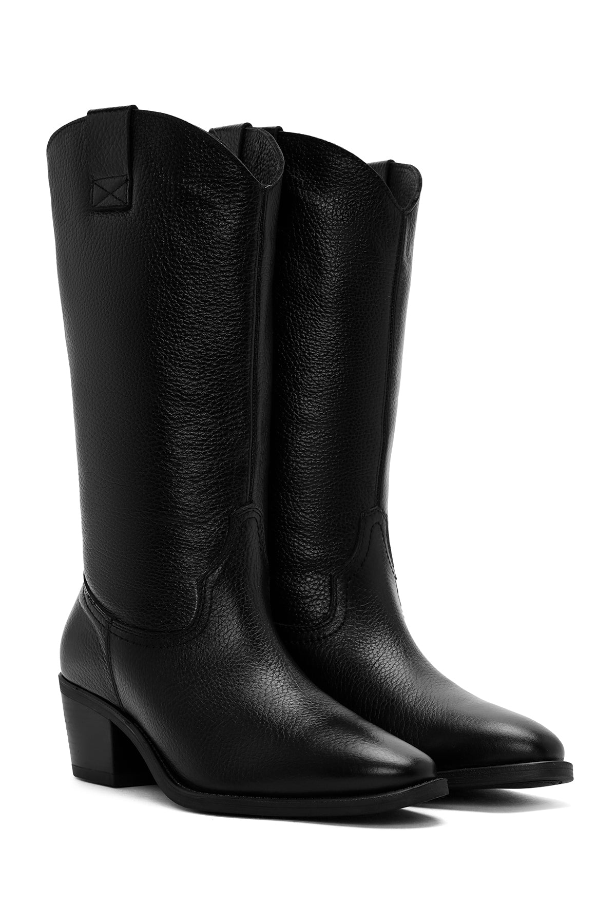 Kadın Siyah Kalın Topuklu Deri Kovboy Çizme