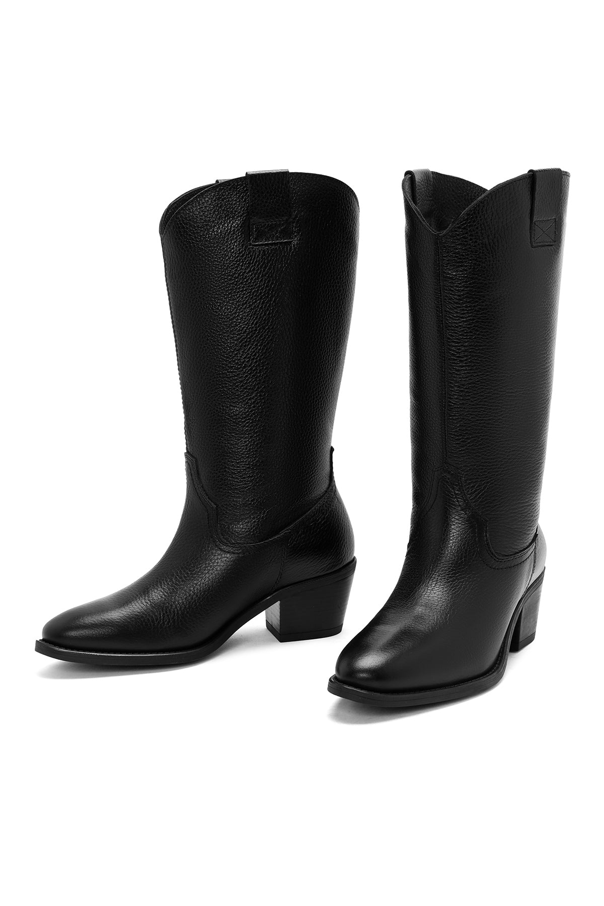 چکمه زنانه چرمی مشکی کابوی پاشنهبلند ضخیم دری مد