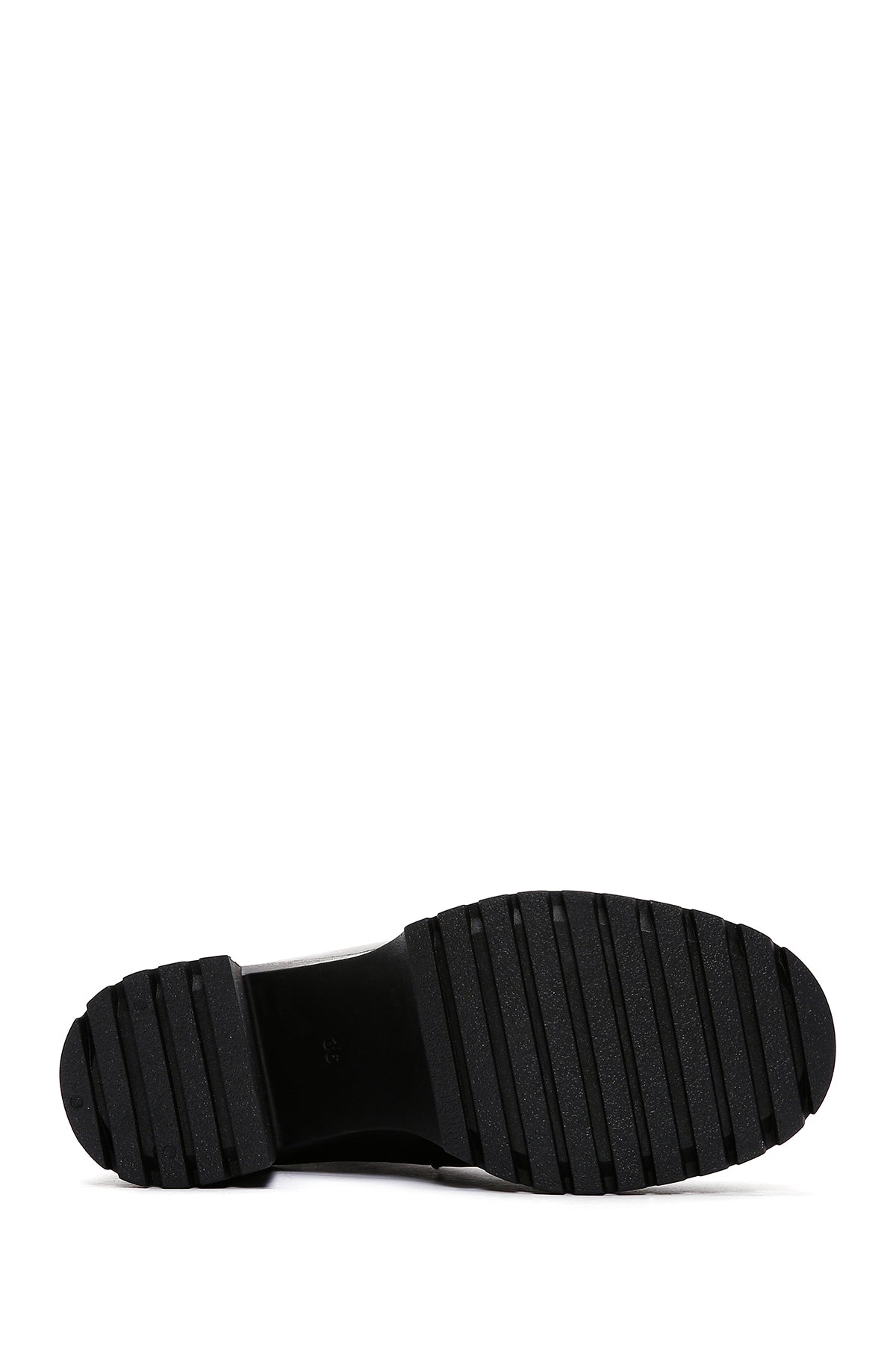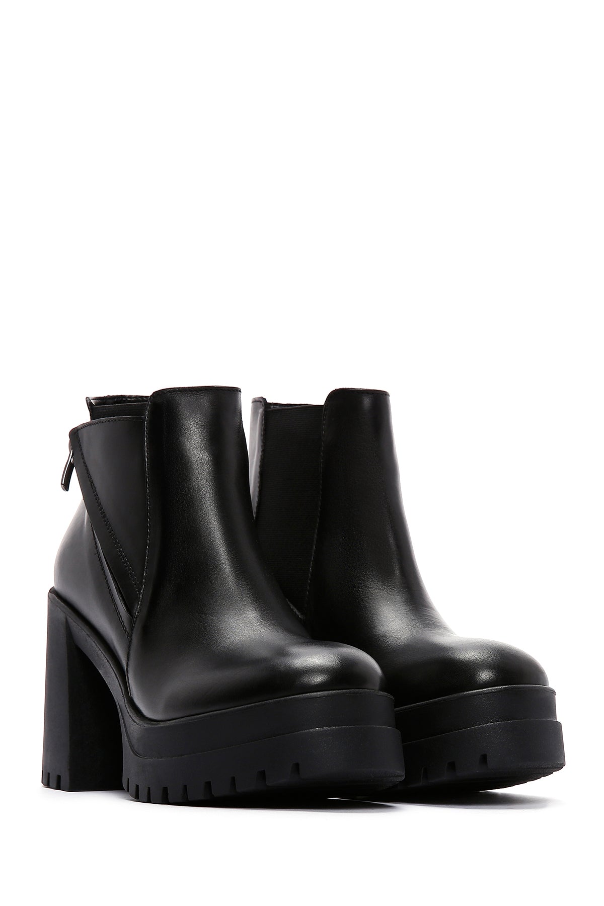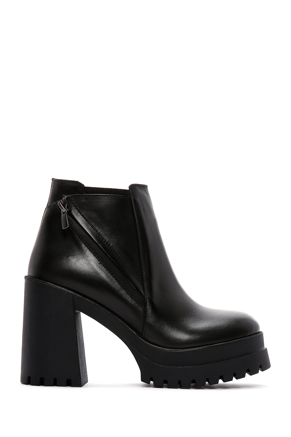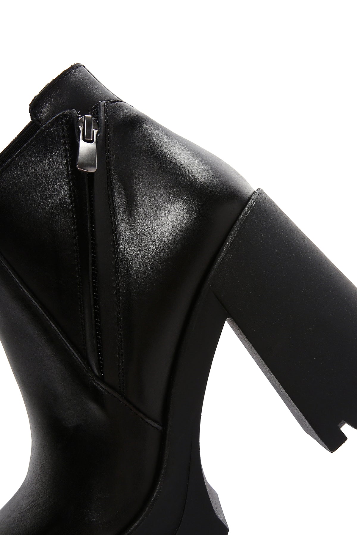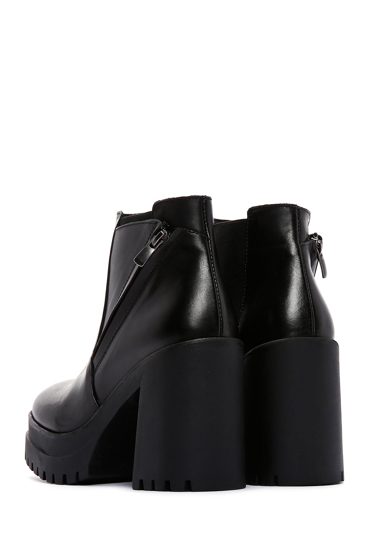Kadın Siyah Fermuarlı Kalın Topuklu Deri Bot