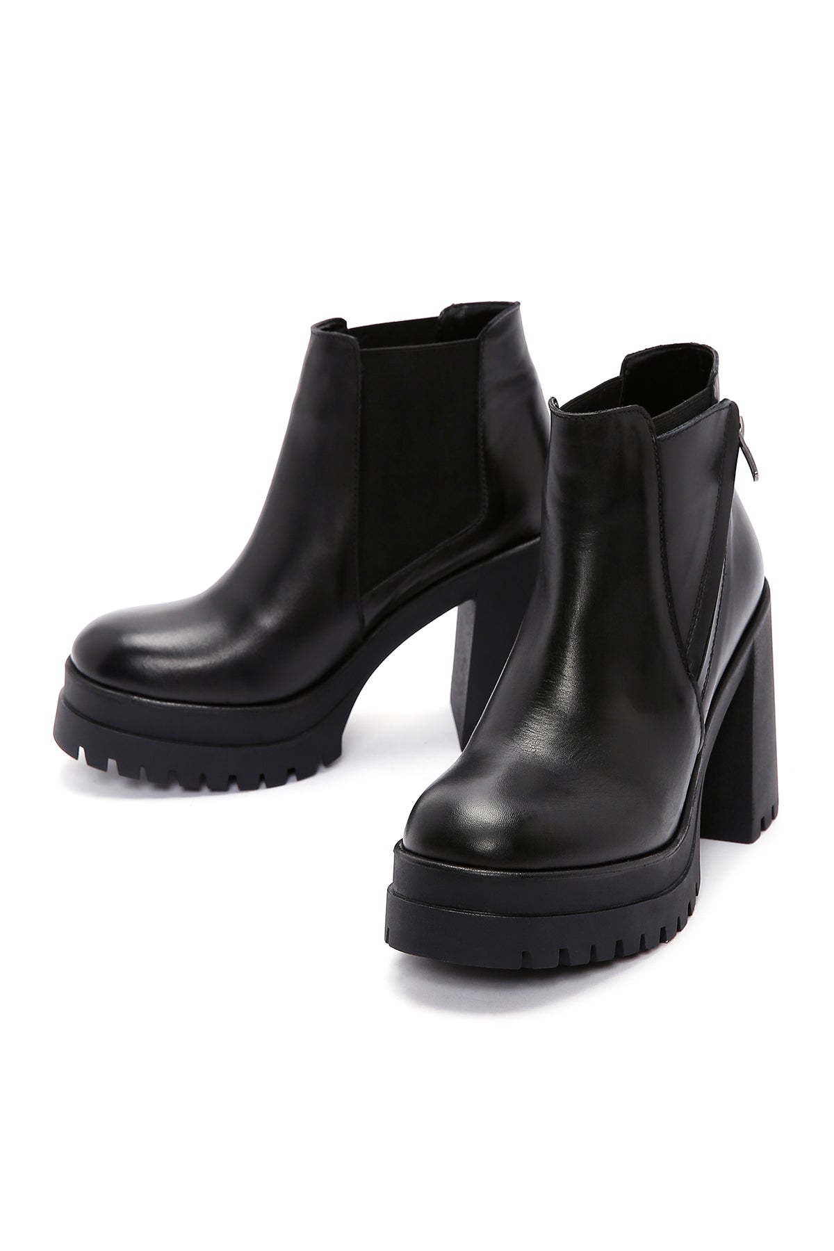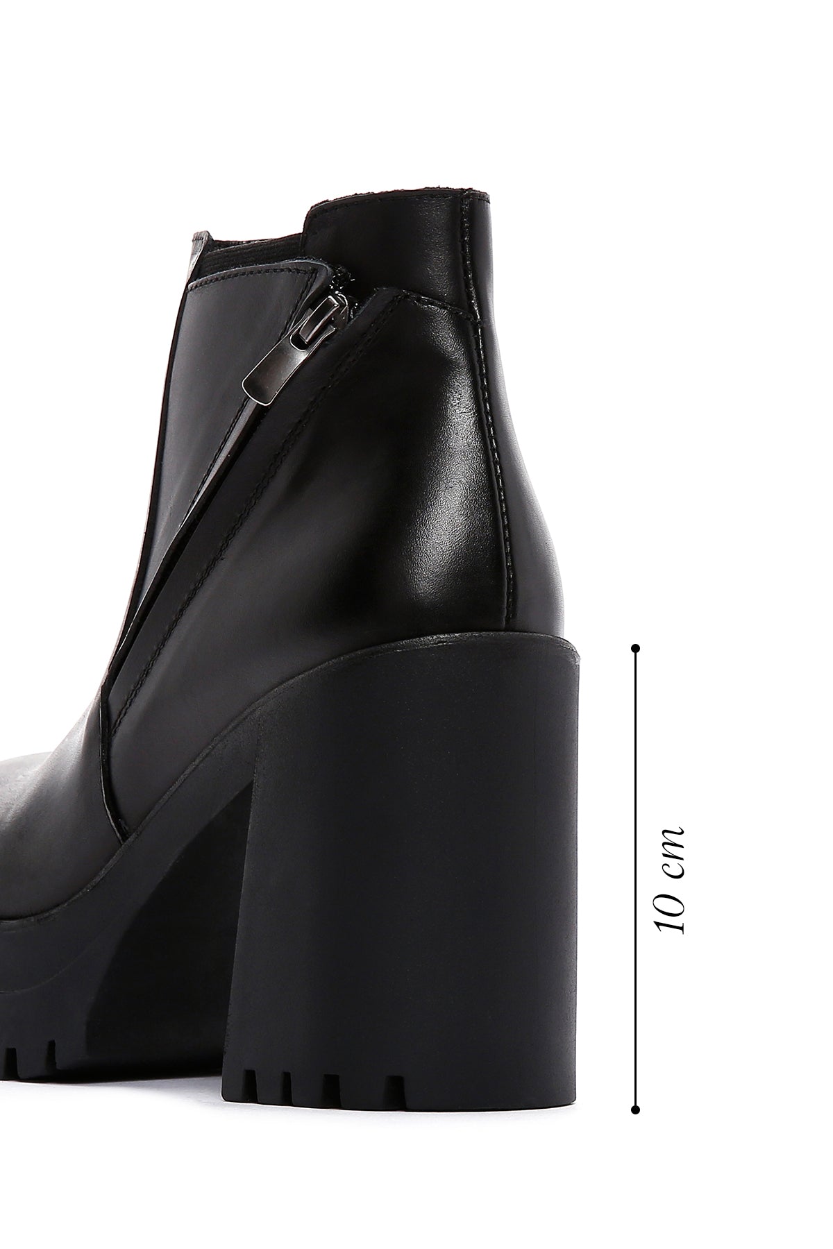 نیم بوت زنانه چرمی مشکی زیپدار پاشنهبلند ضخیم دری مد