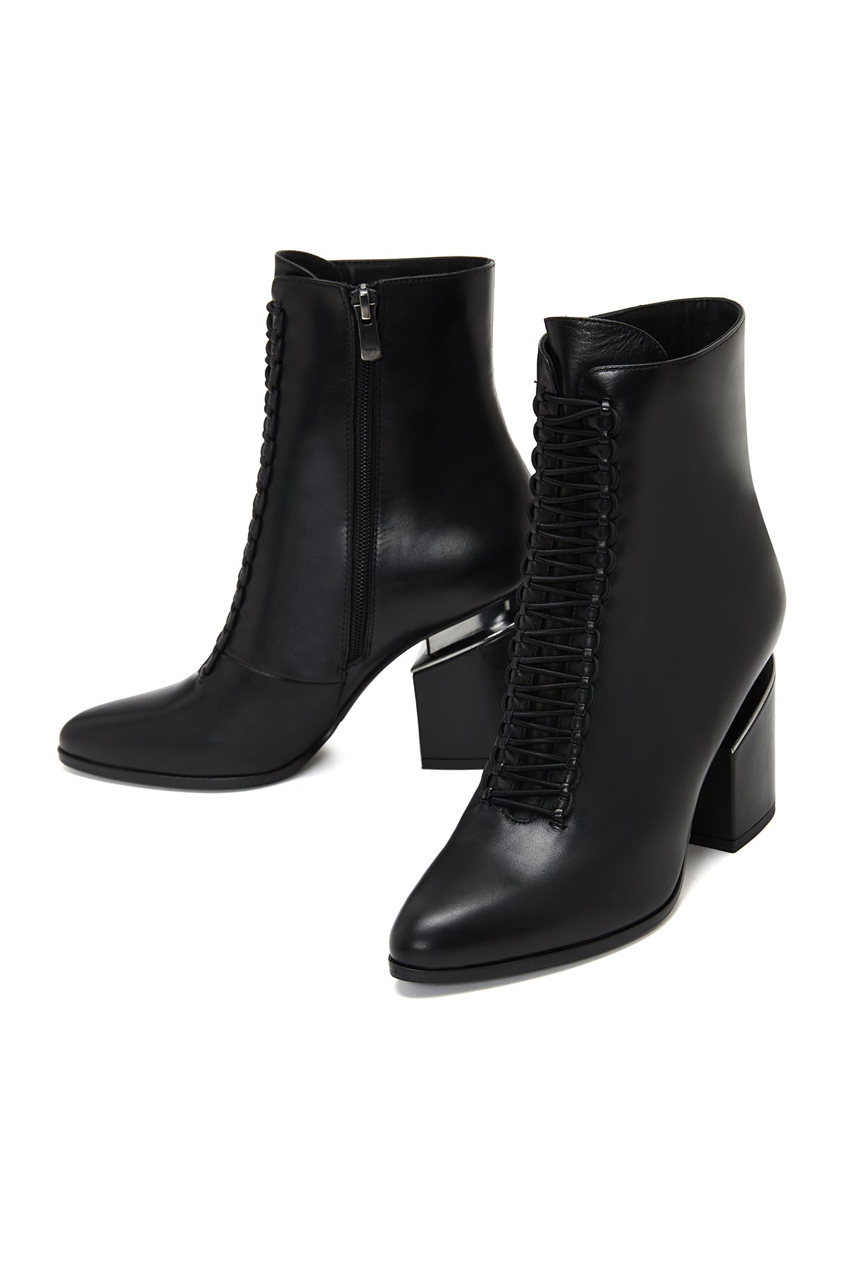نیم بوت زنانه چرمی مشکی زیپدار پاشنهبلند ضخیم دری مد