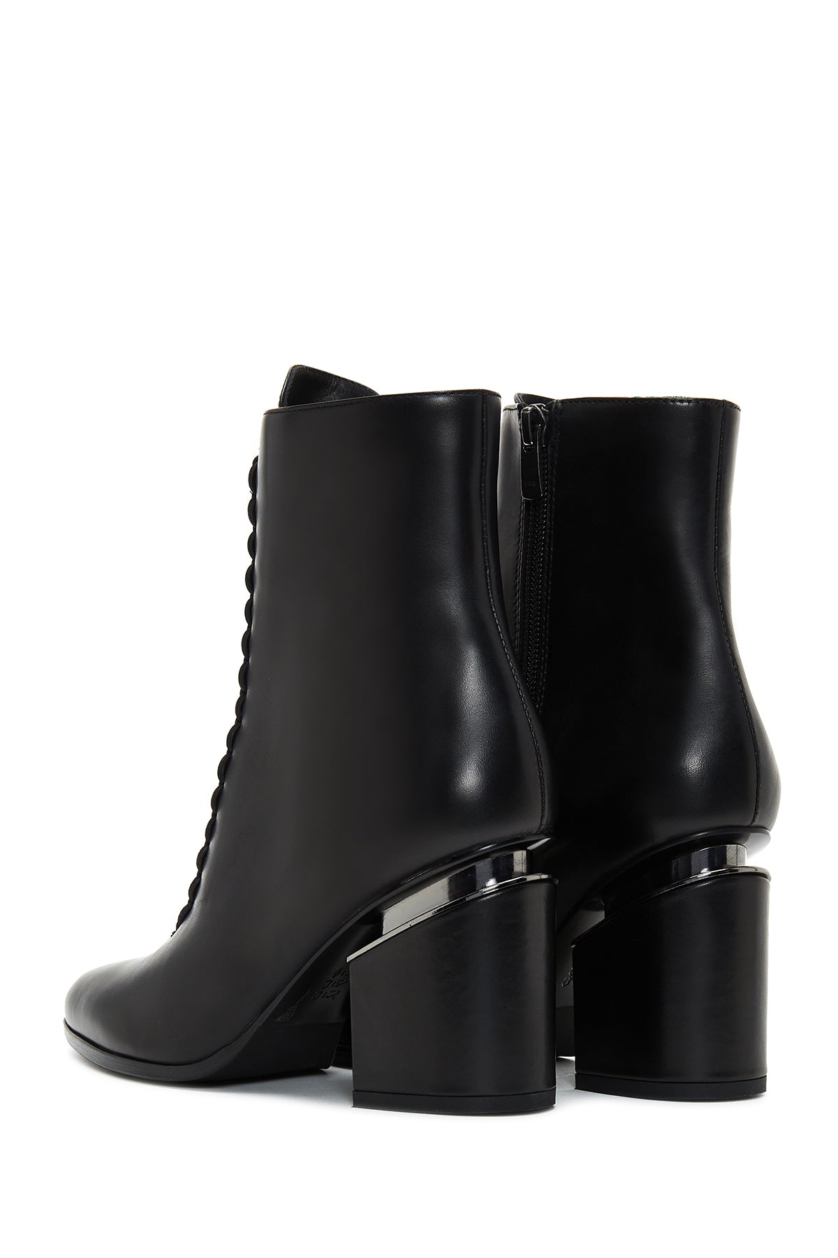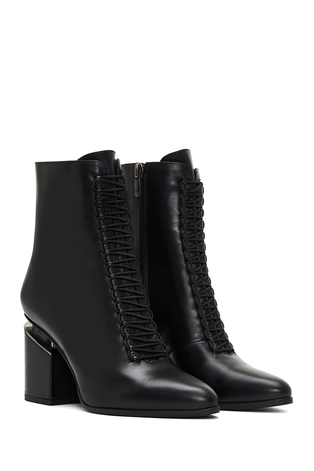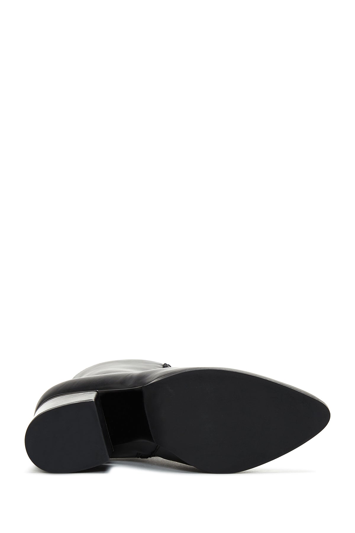Kadın Siyah Fermuarlı Kalın Topuklu Deri Bot
