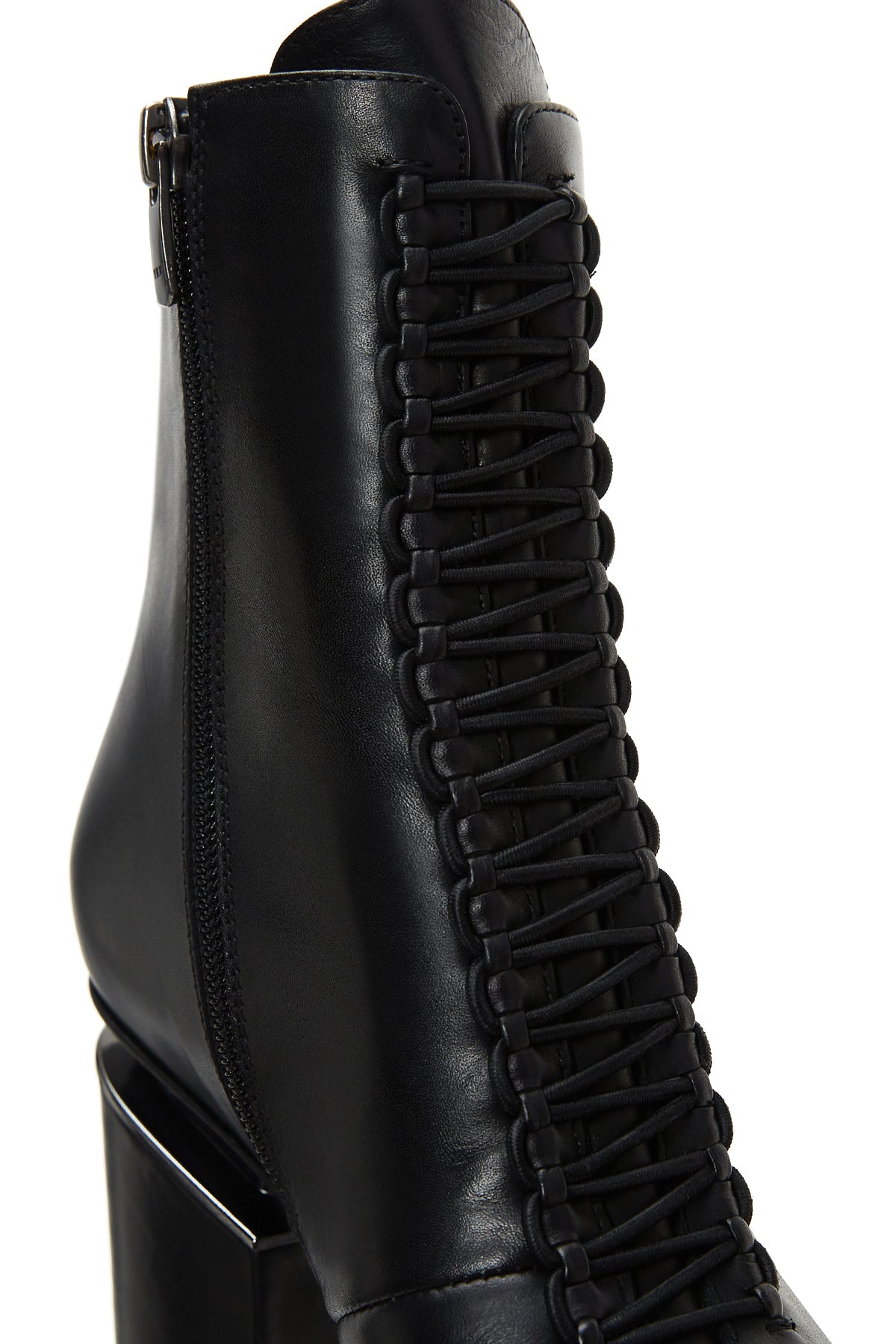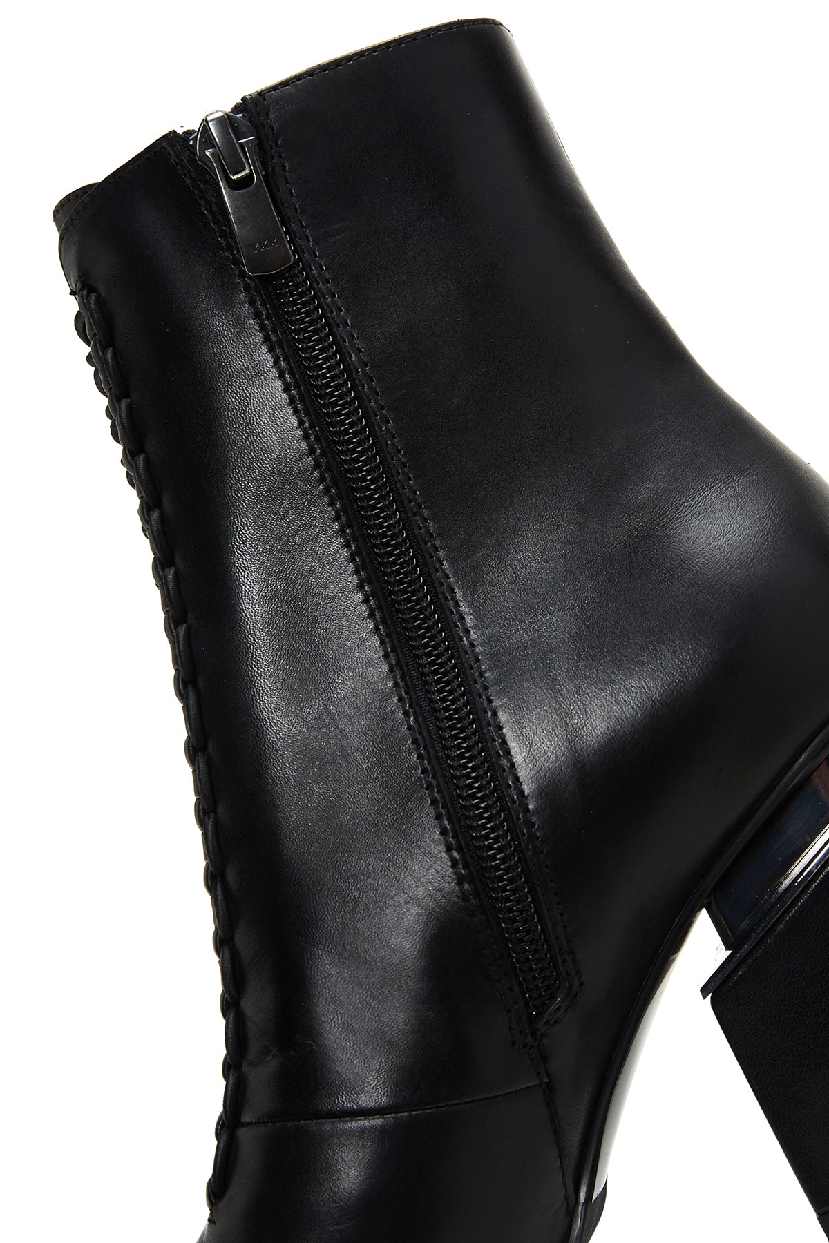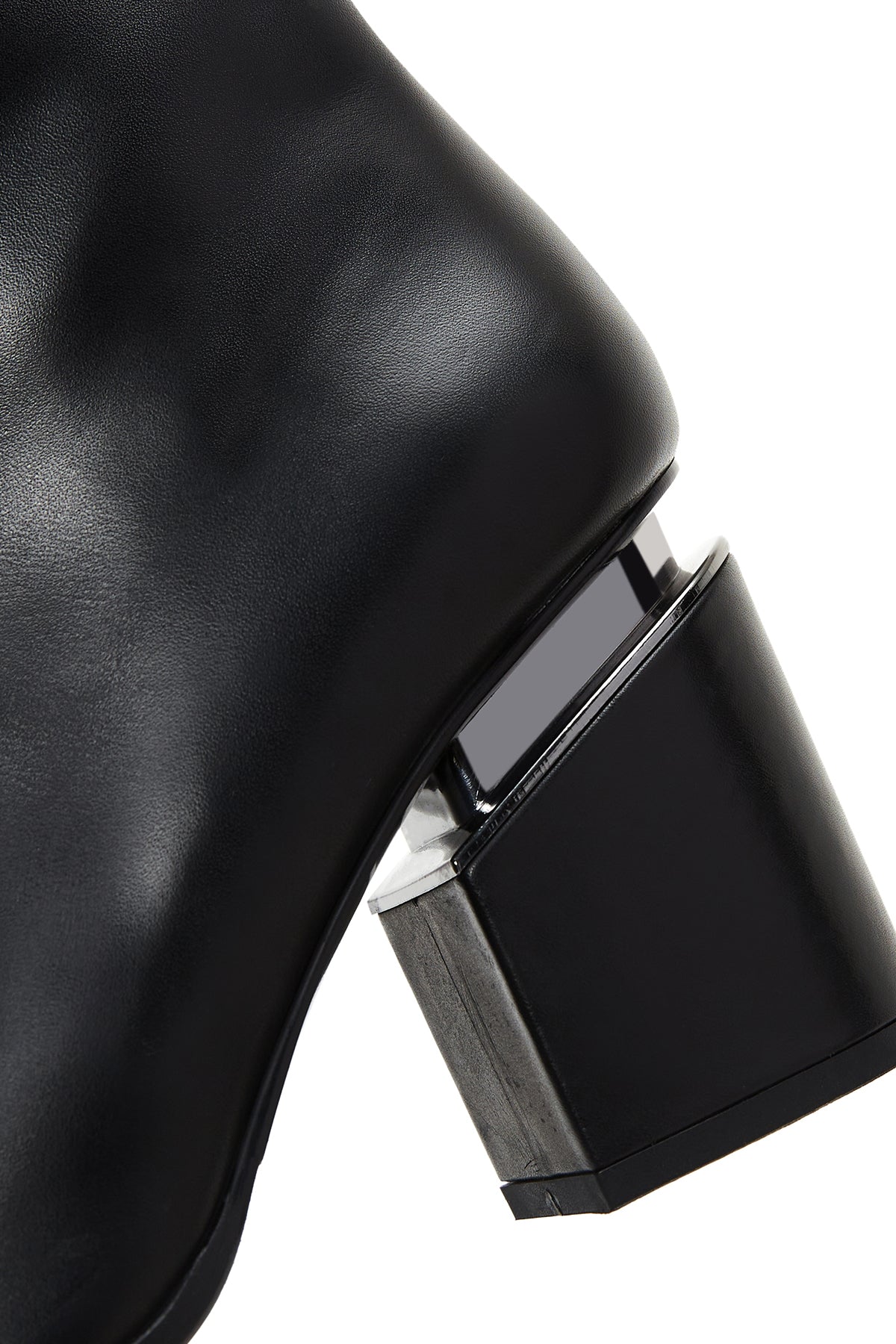 Kadın Siyah Fermuarlı Kalın Topuklu Deri Bot