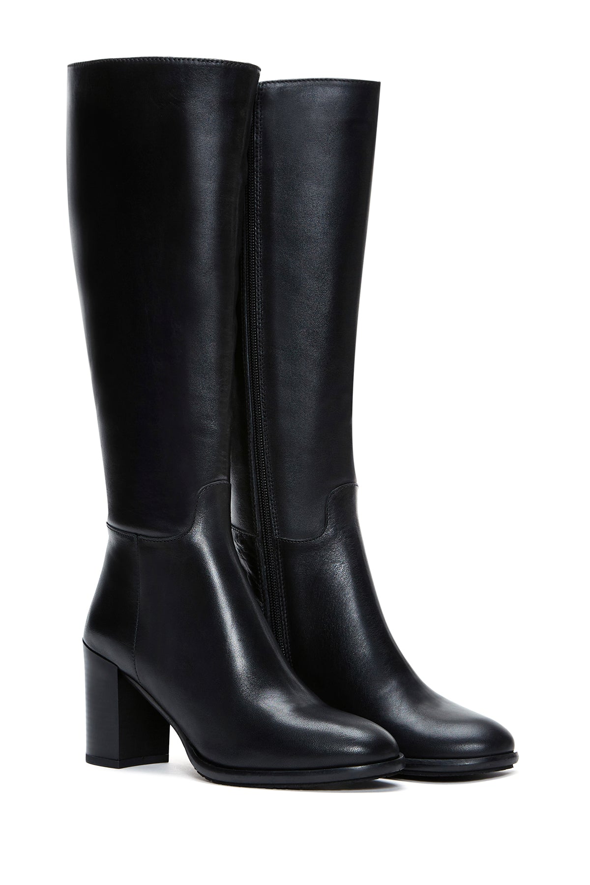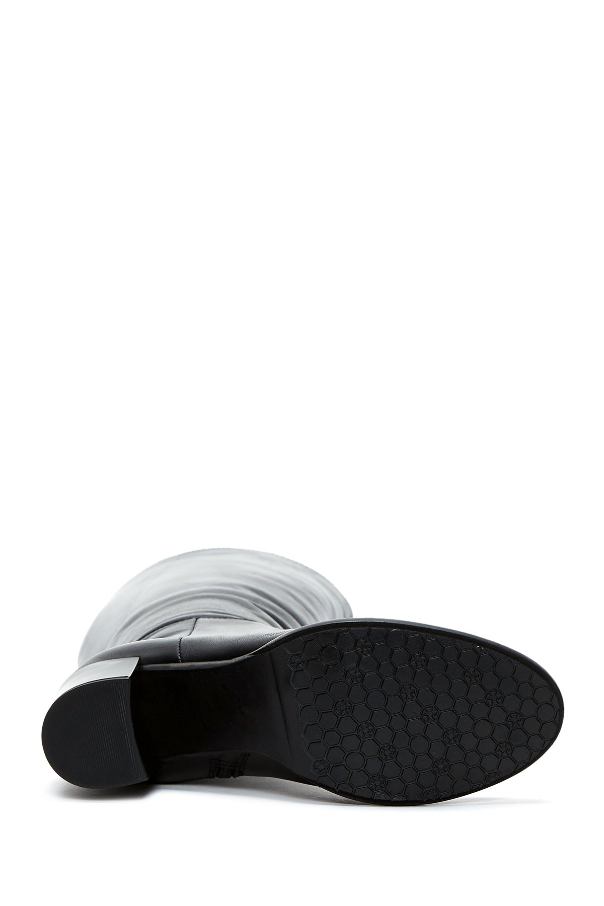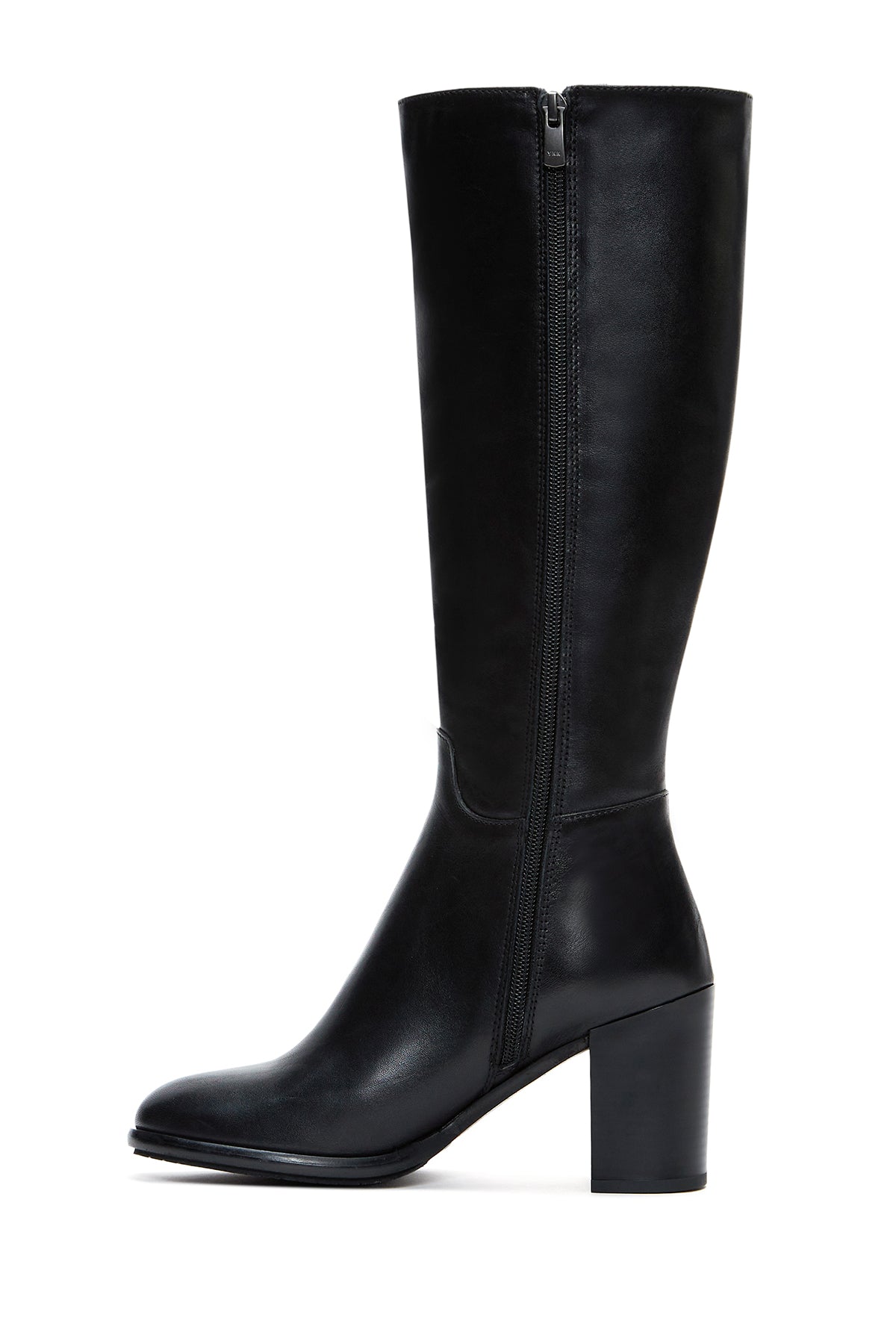 Kadın Siyah Fermuarlı Kalın Topuklu Deri Çizme