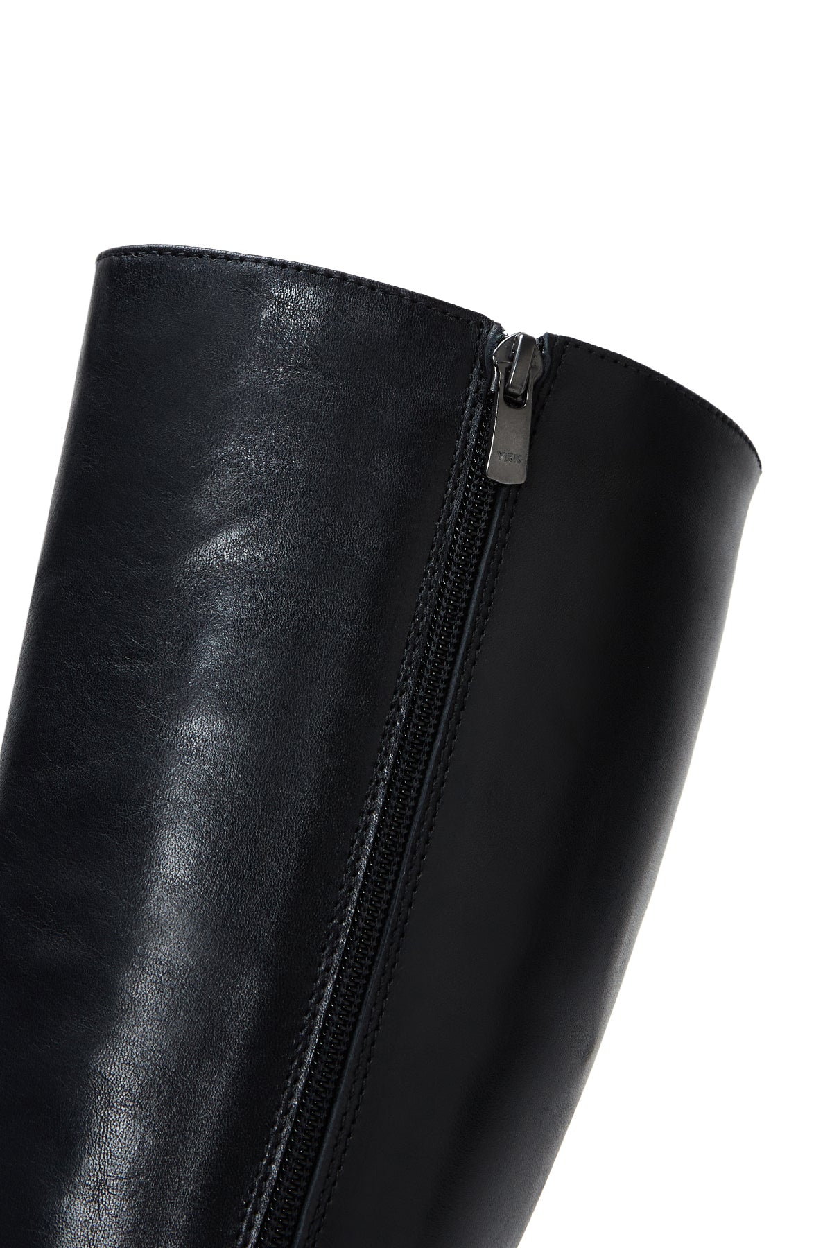 چکمه زنانه چرمی مشکی پاشنهبلند ضخیم زیپدار دری مد