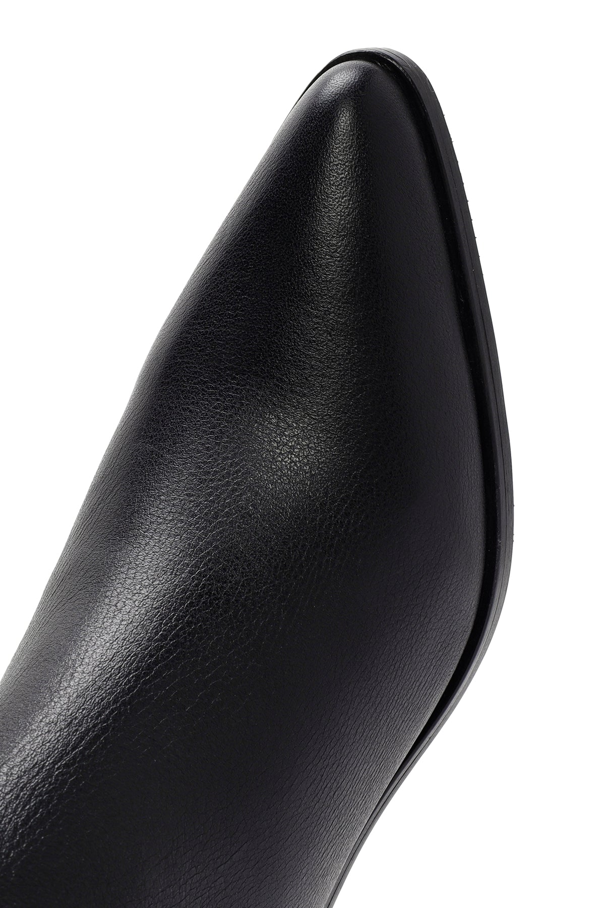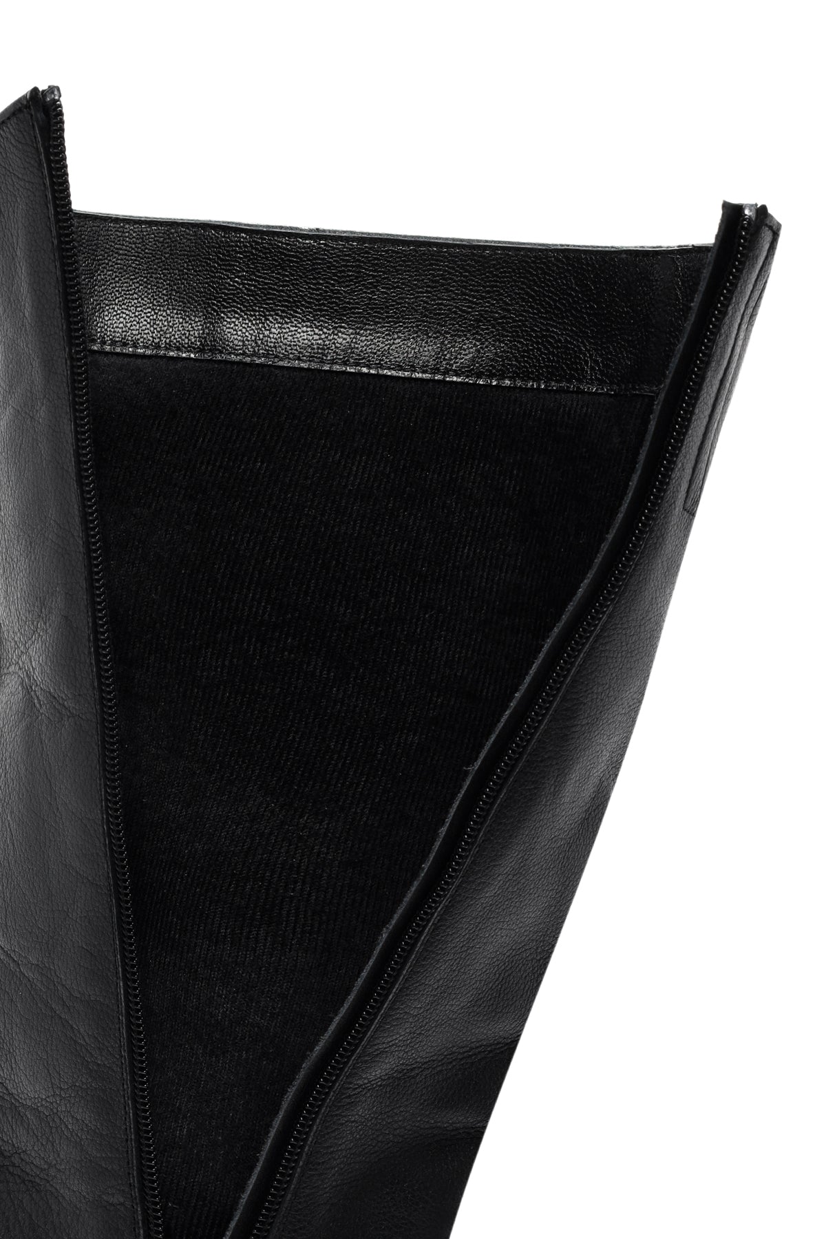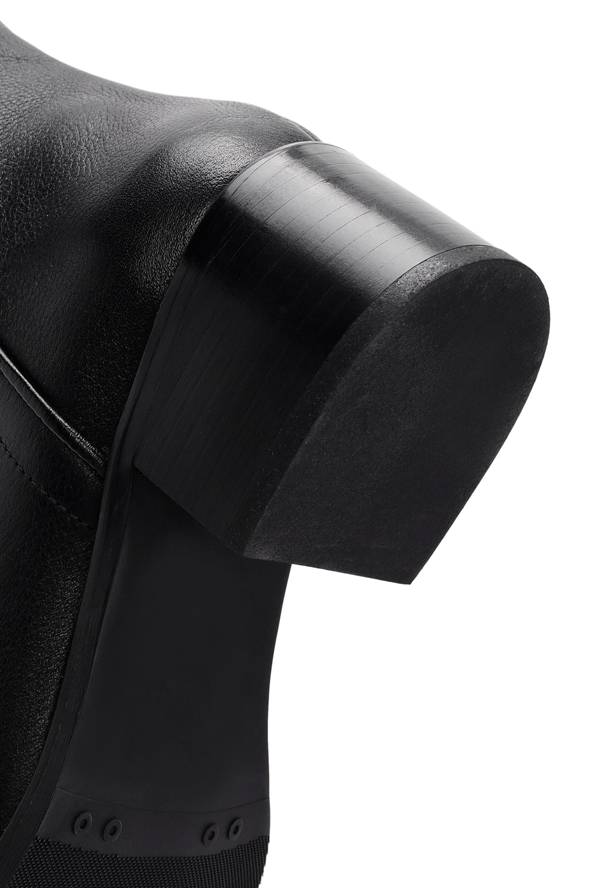 چکمه زنانه چرمی مشکی پاشنهبلند ضخیم زیپدار دری مد
