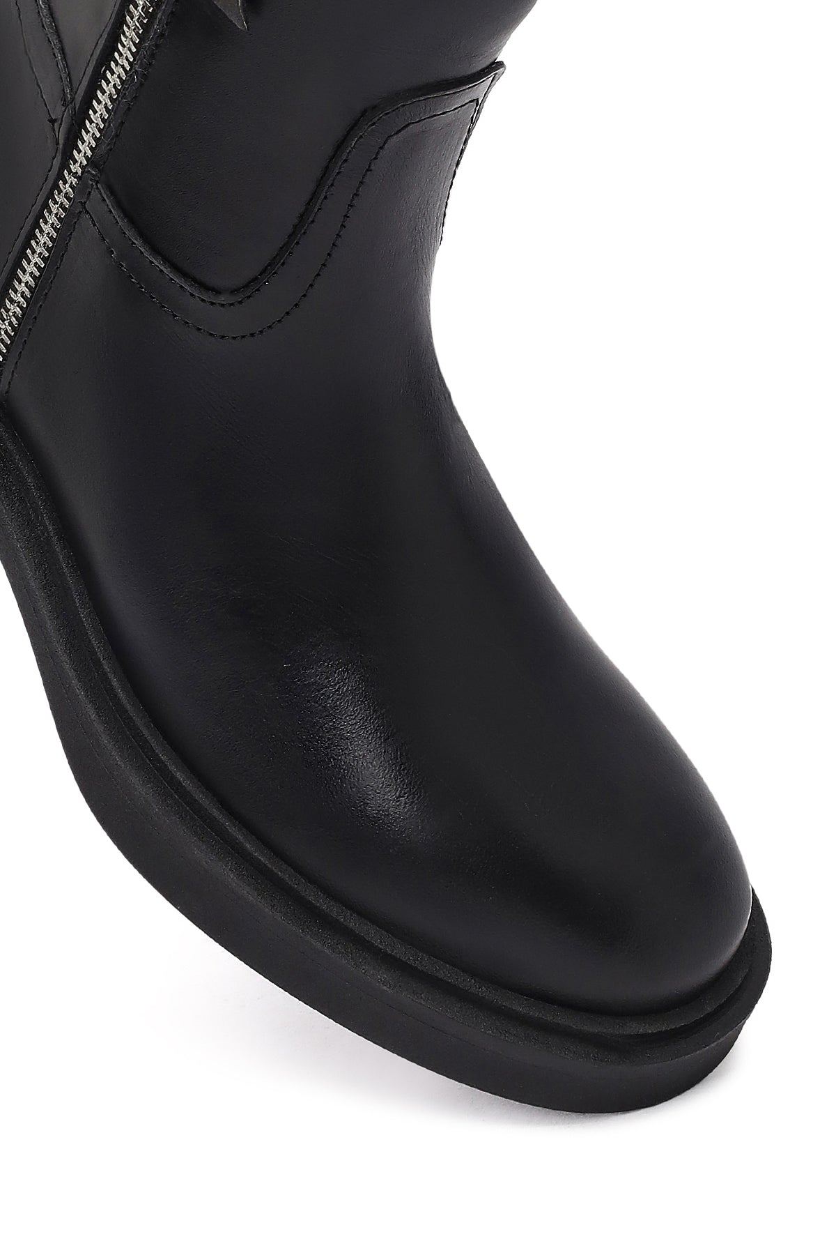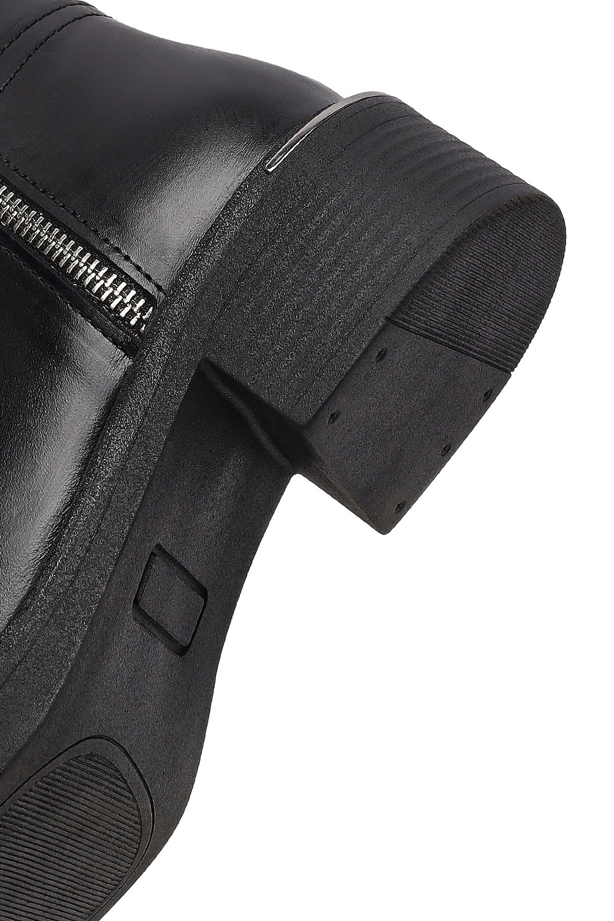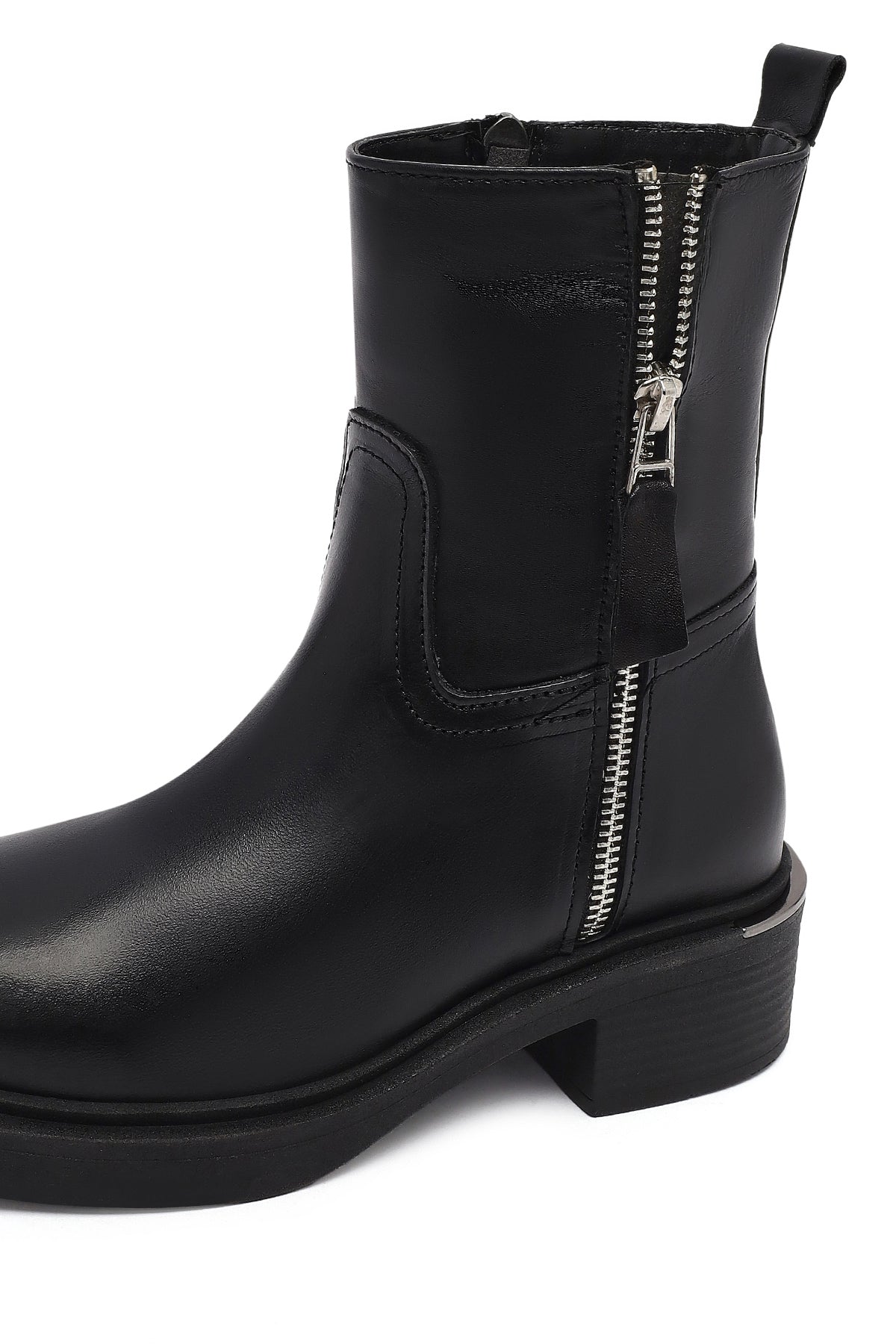 Kadın Siyah Fermuarlı Deri Bot