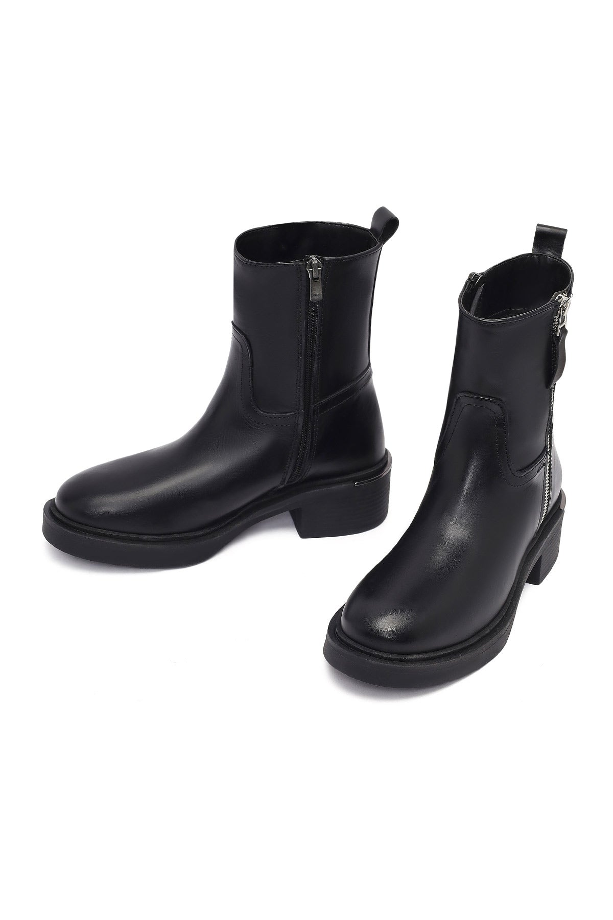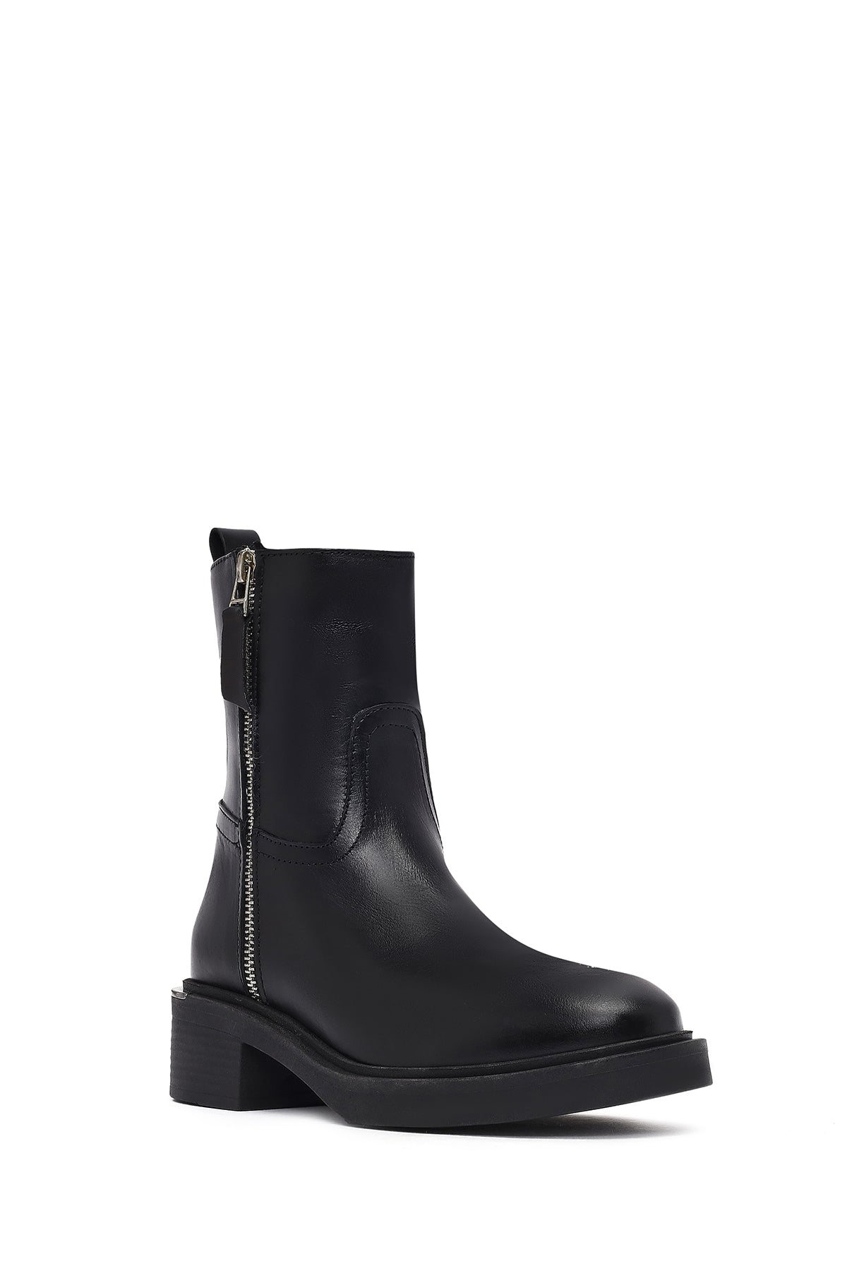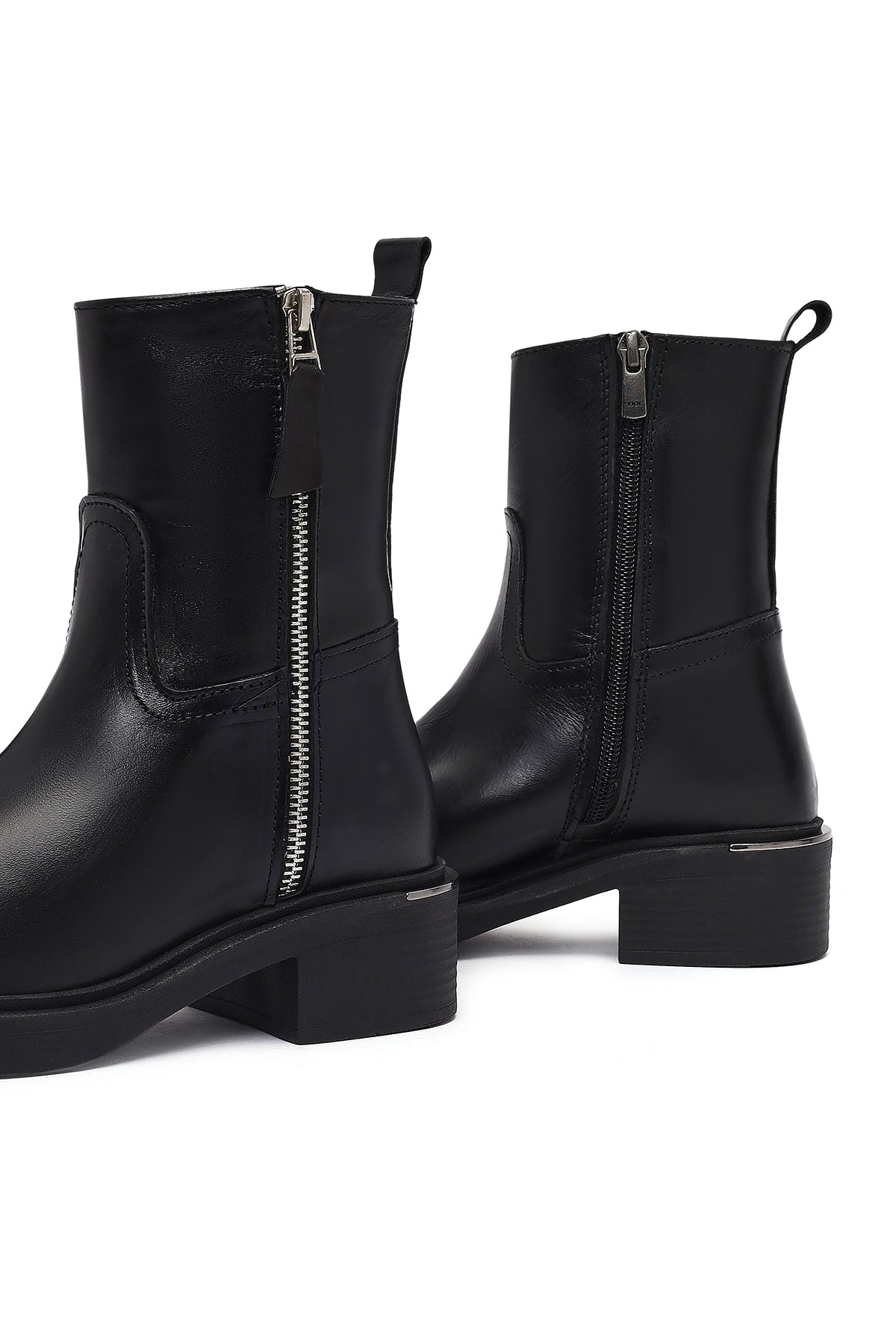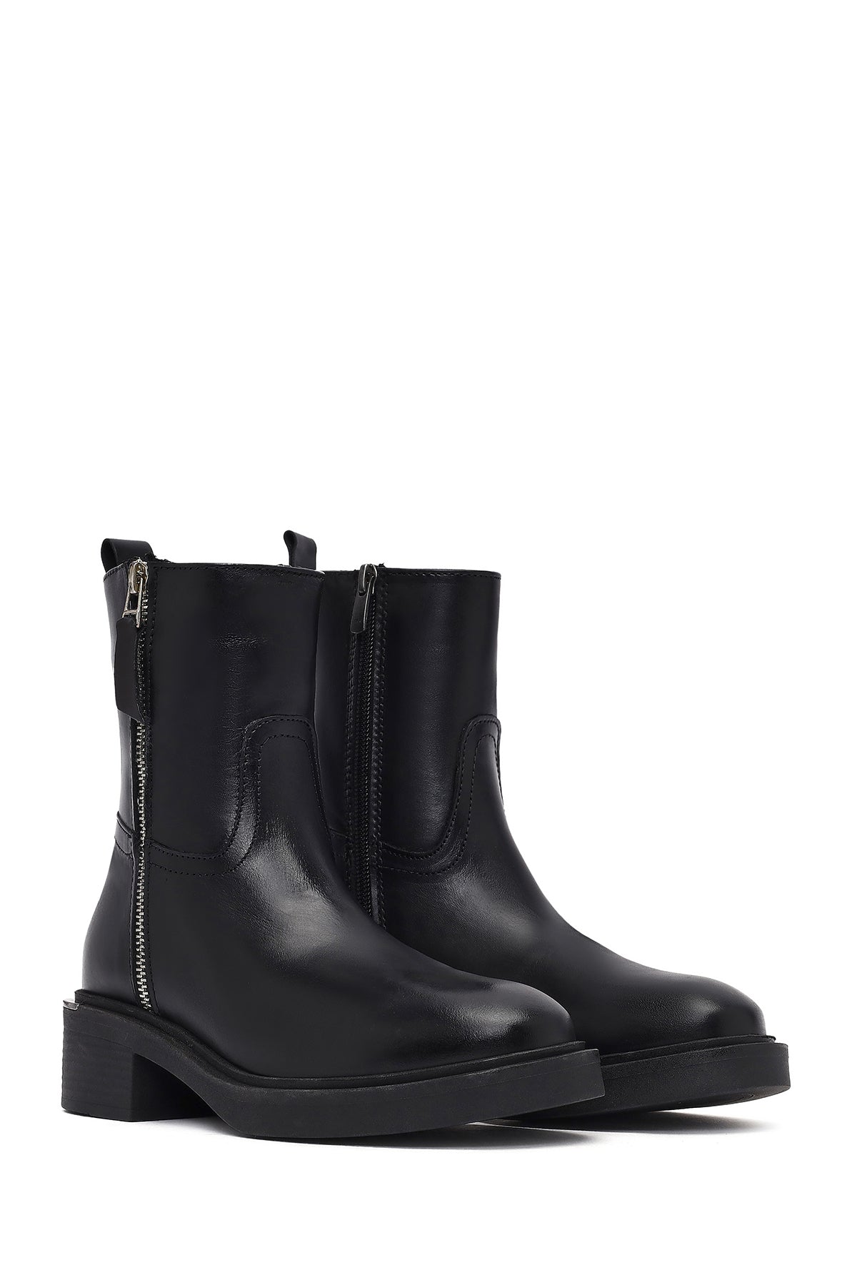 Kadın Siyah Fermuarlı Deri Bot