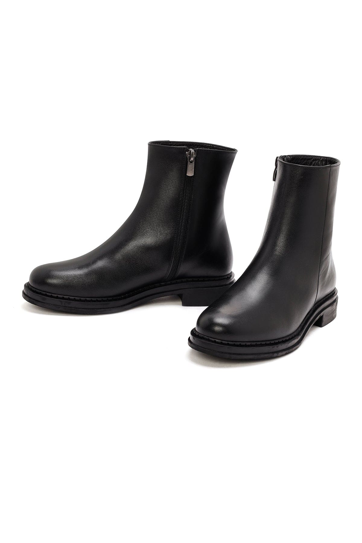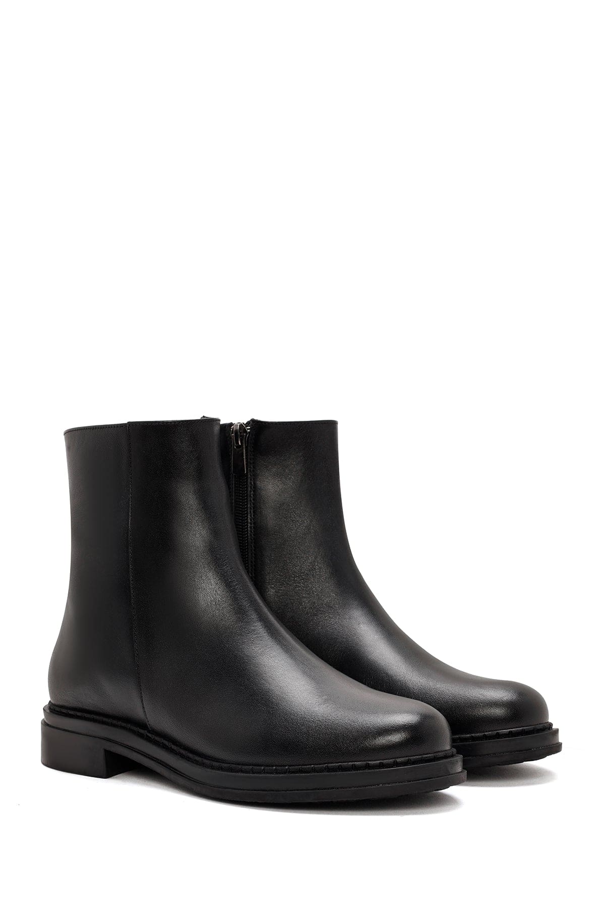 Kadın Siyah Fermuarlı Deri Bot
