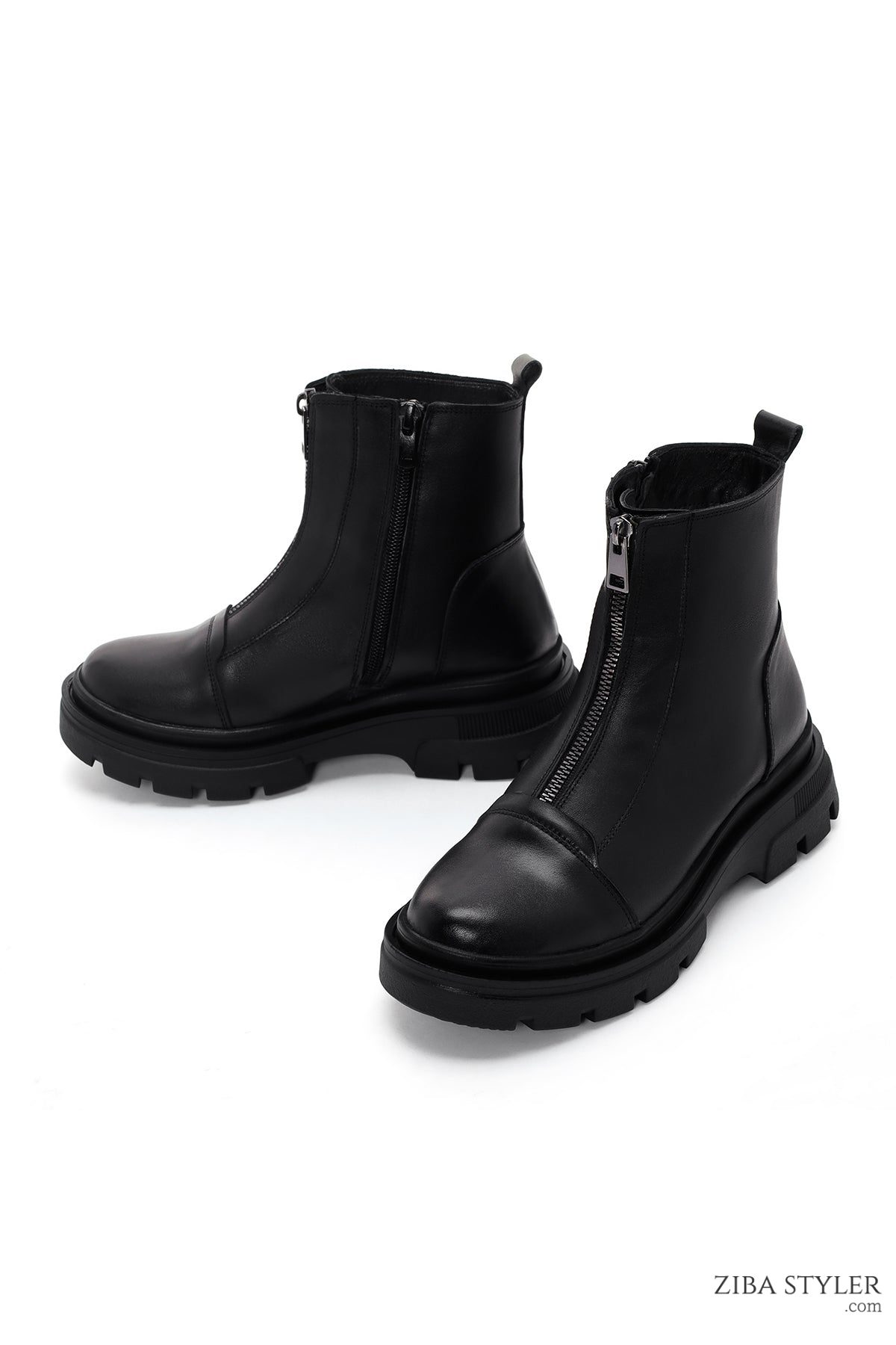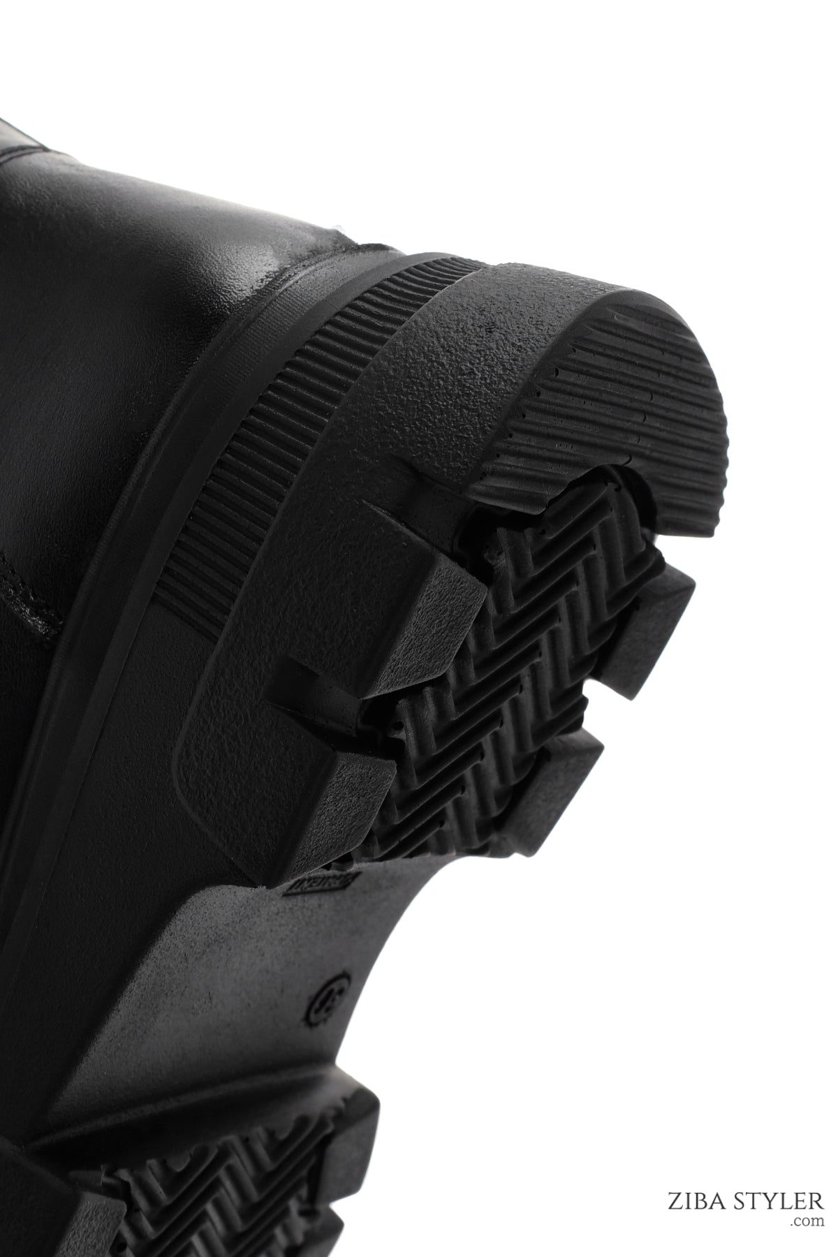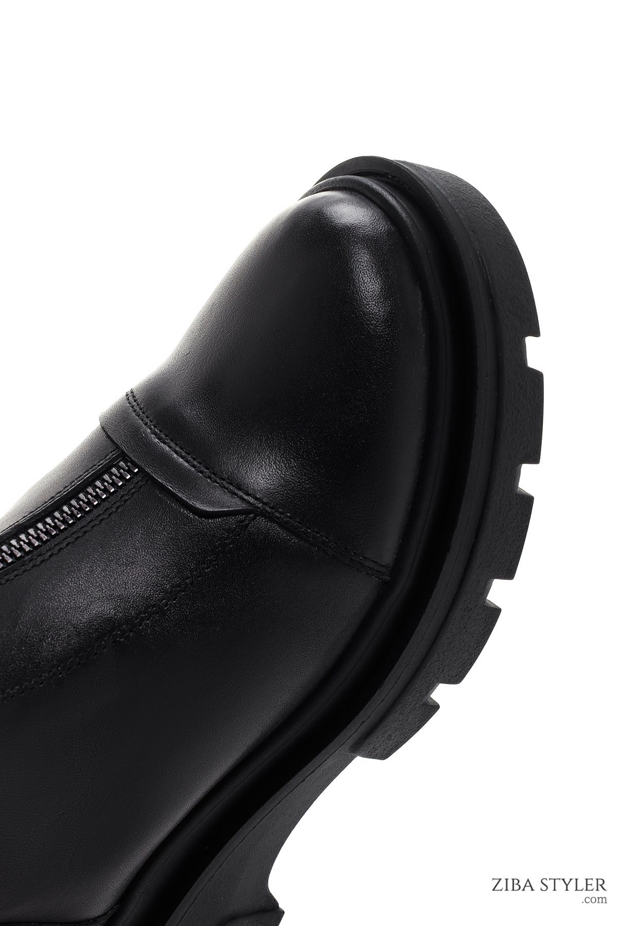 بوت زنانه چرمی مشکی زیپ دار دری مد