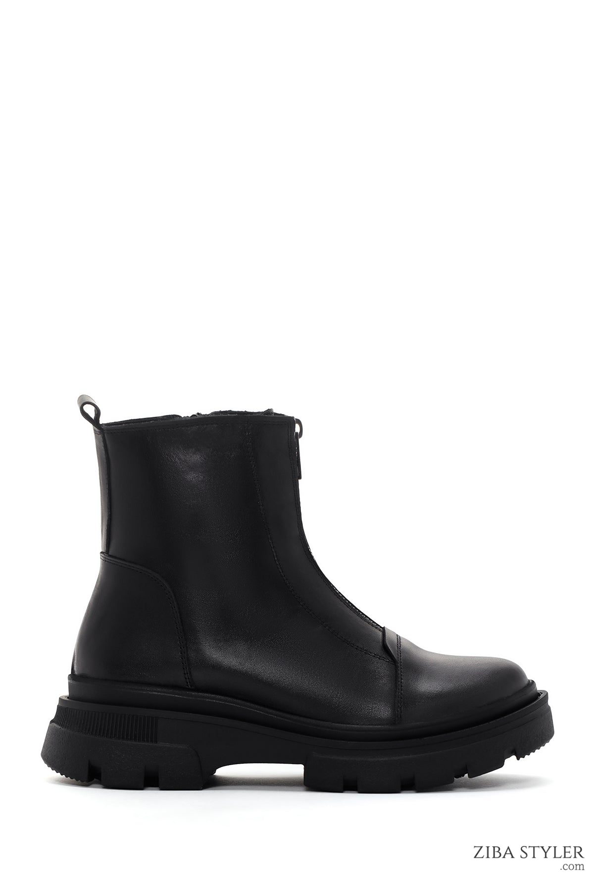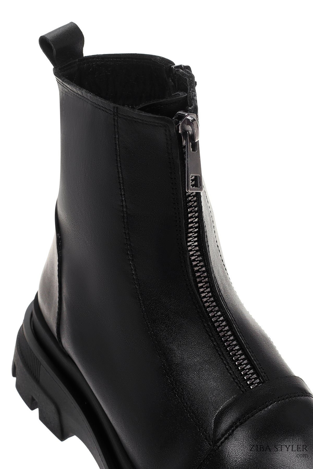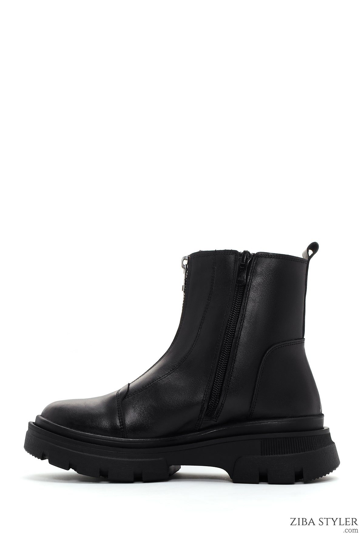 بوت زنانه چرمی مشکی زیپ دار دری مد