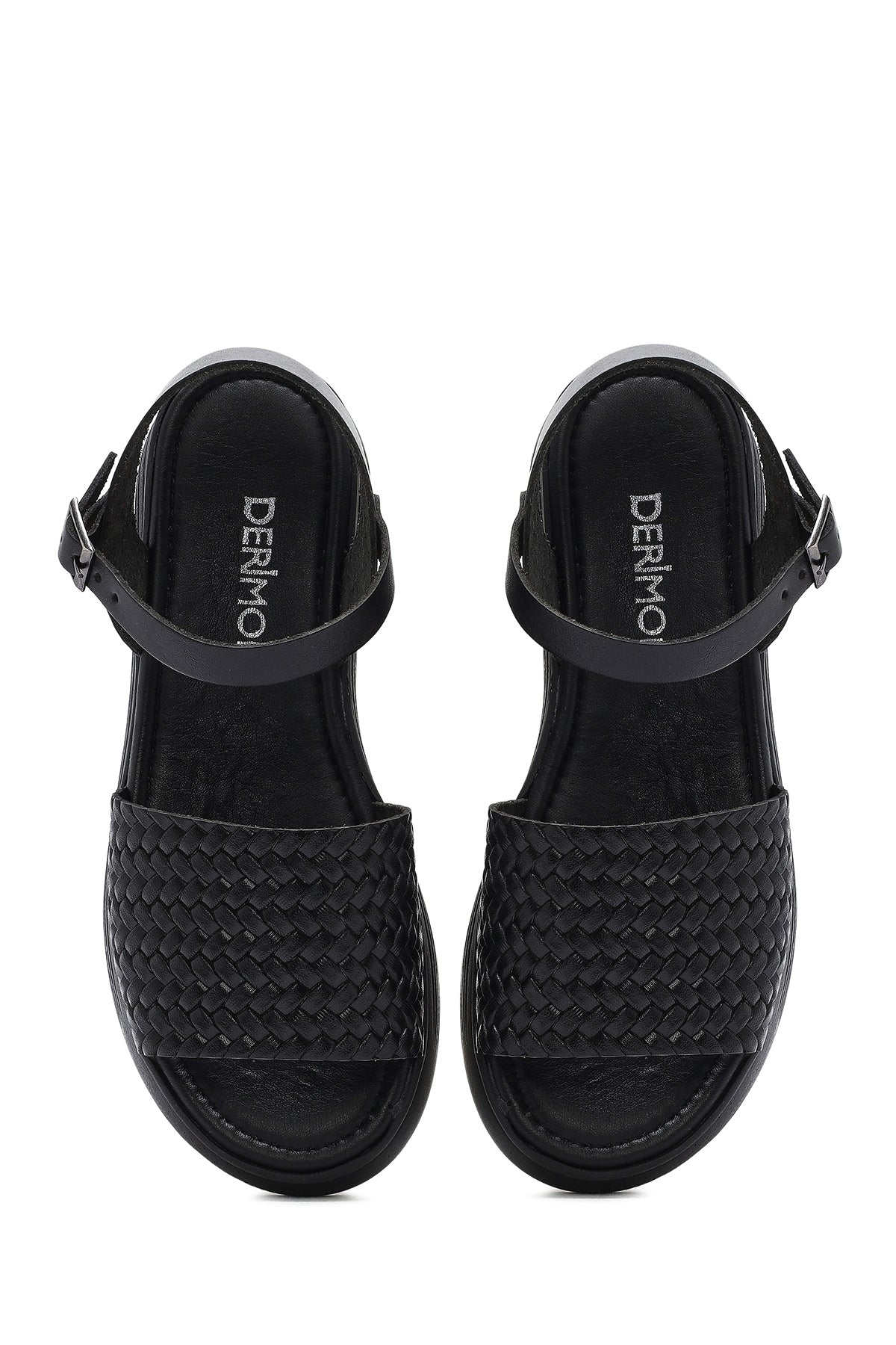 صندل زنانه چرمی مشکی با بند و زیره ضخیم دری مد