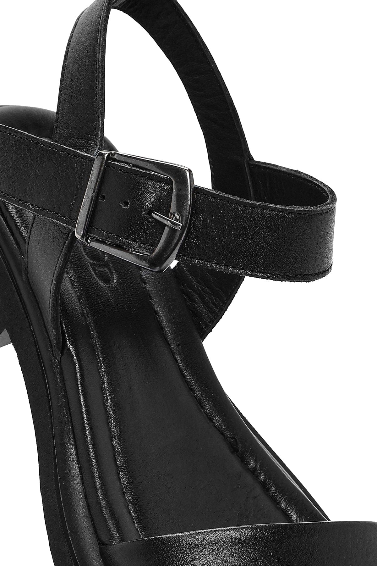Kadın Siyah Bilekten Tokalı Deri Sandalet