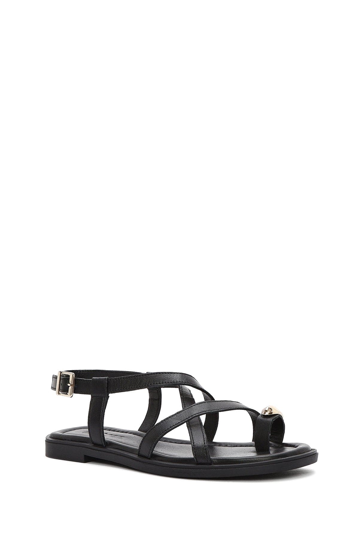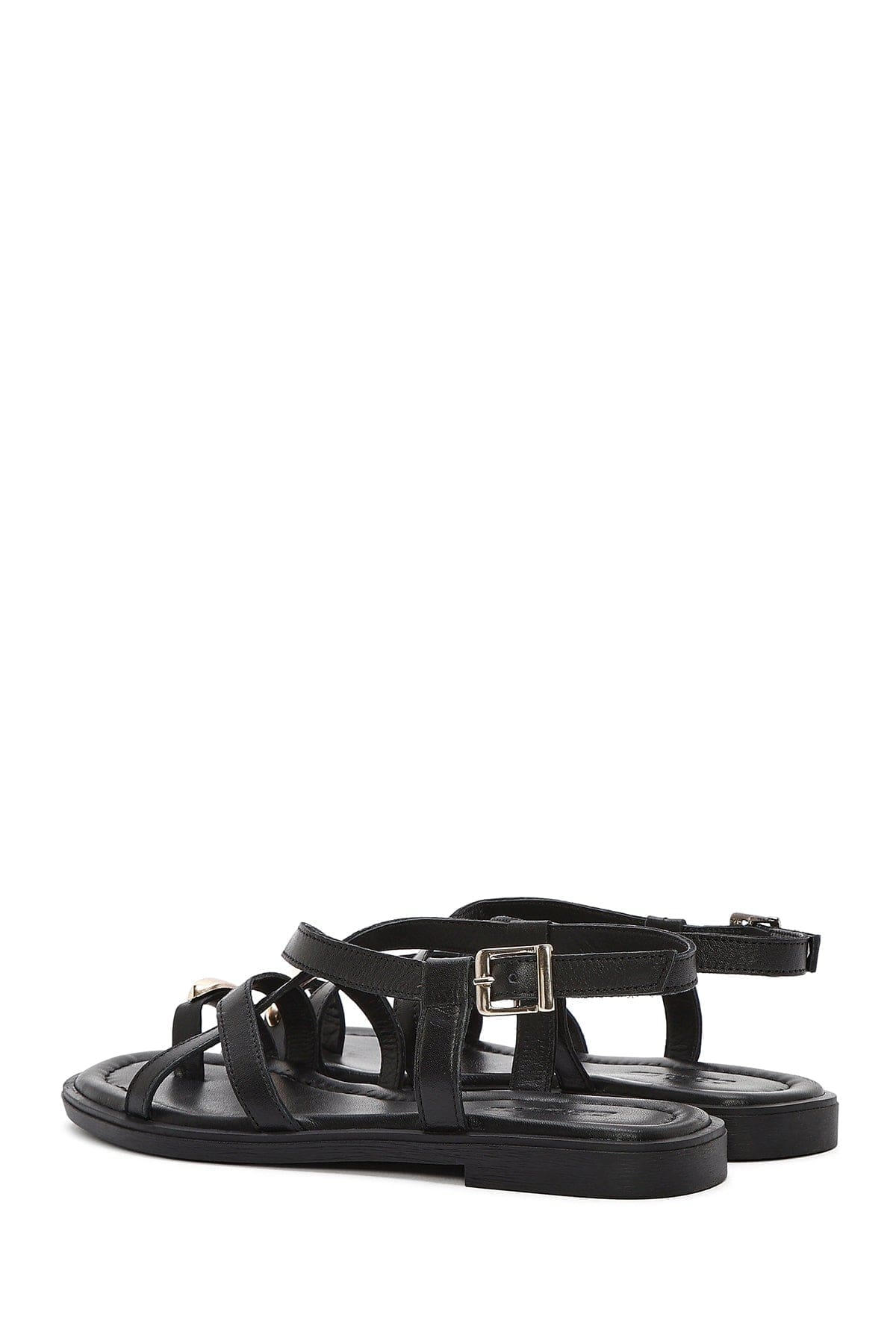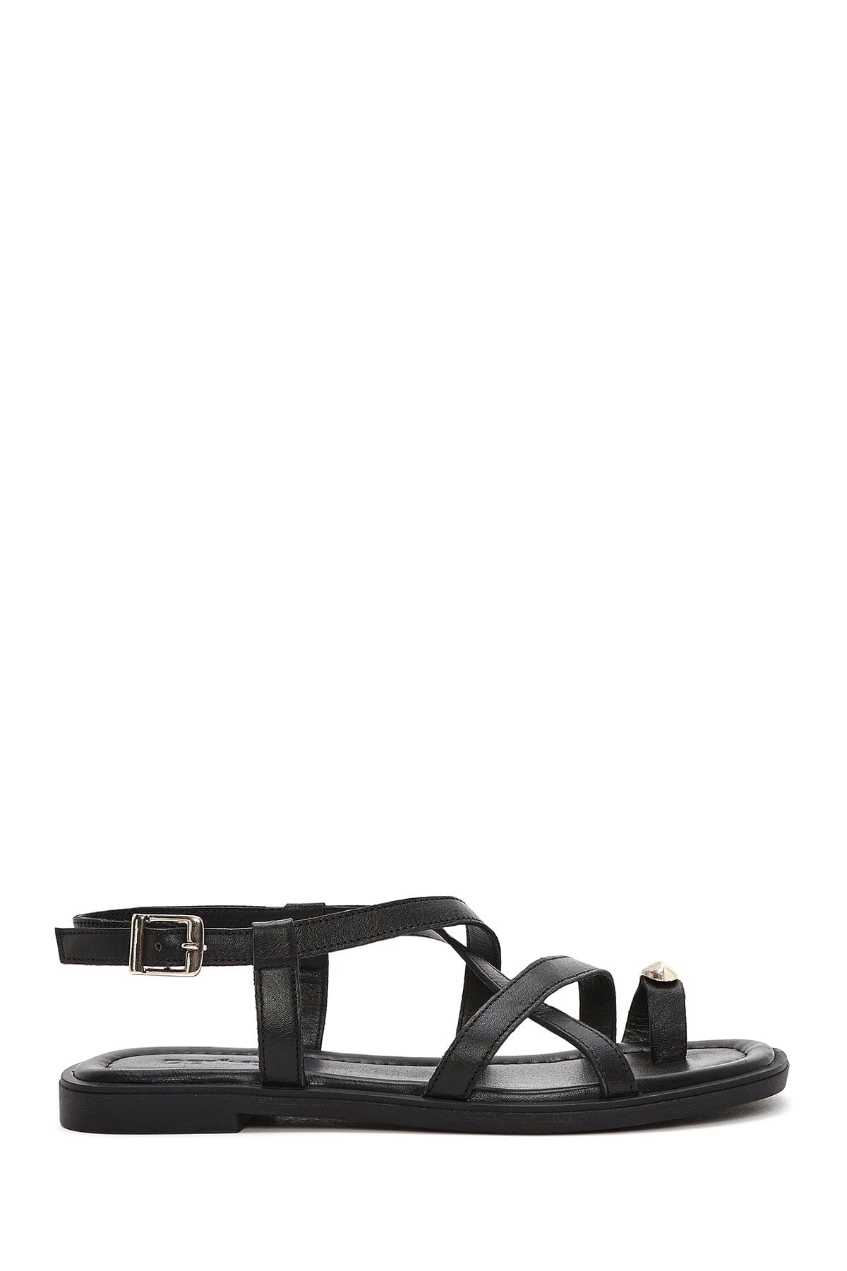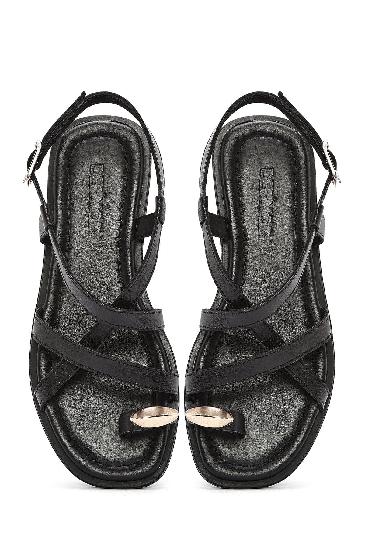 Kadın Siyah Bilekten Tokalı Deri Sandalet