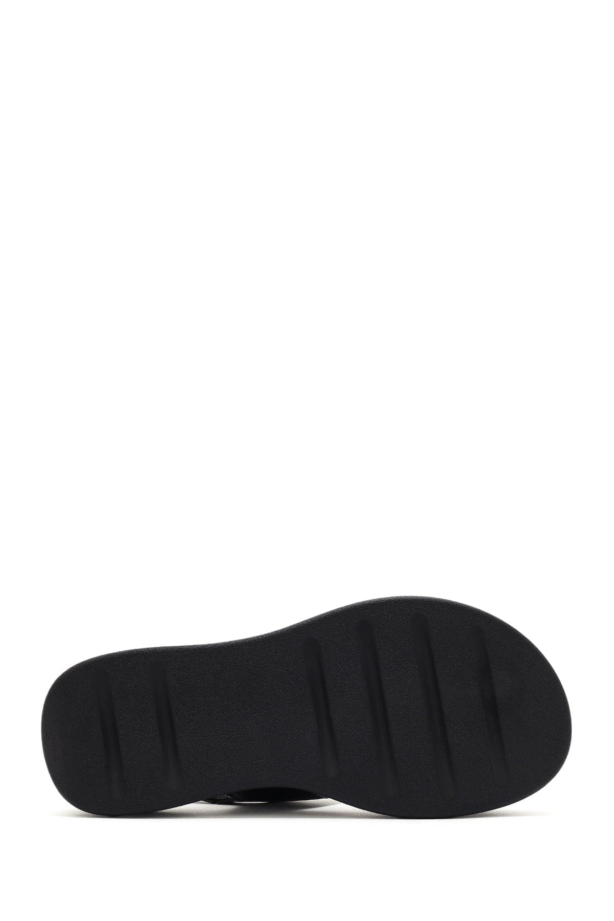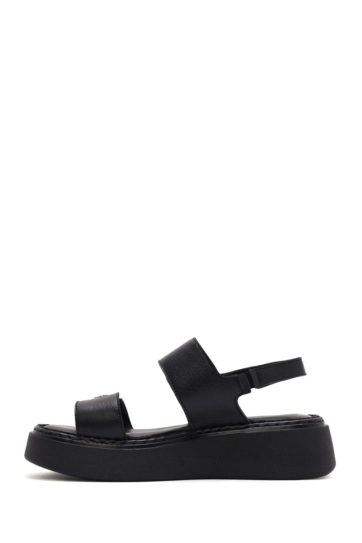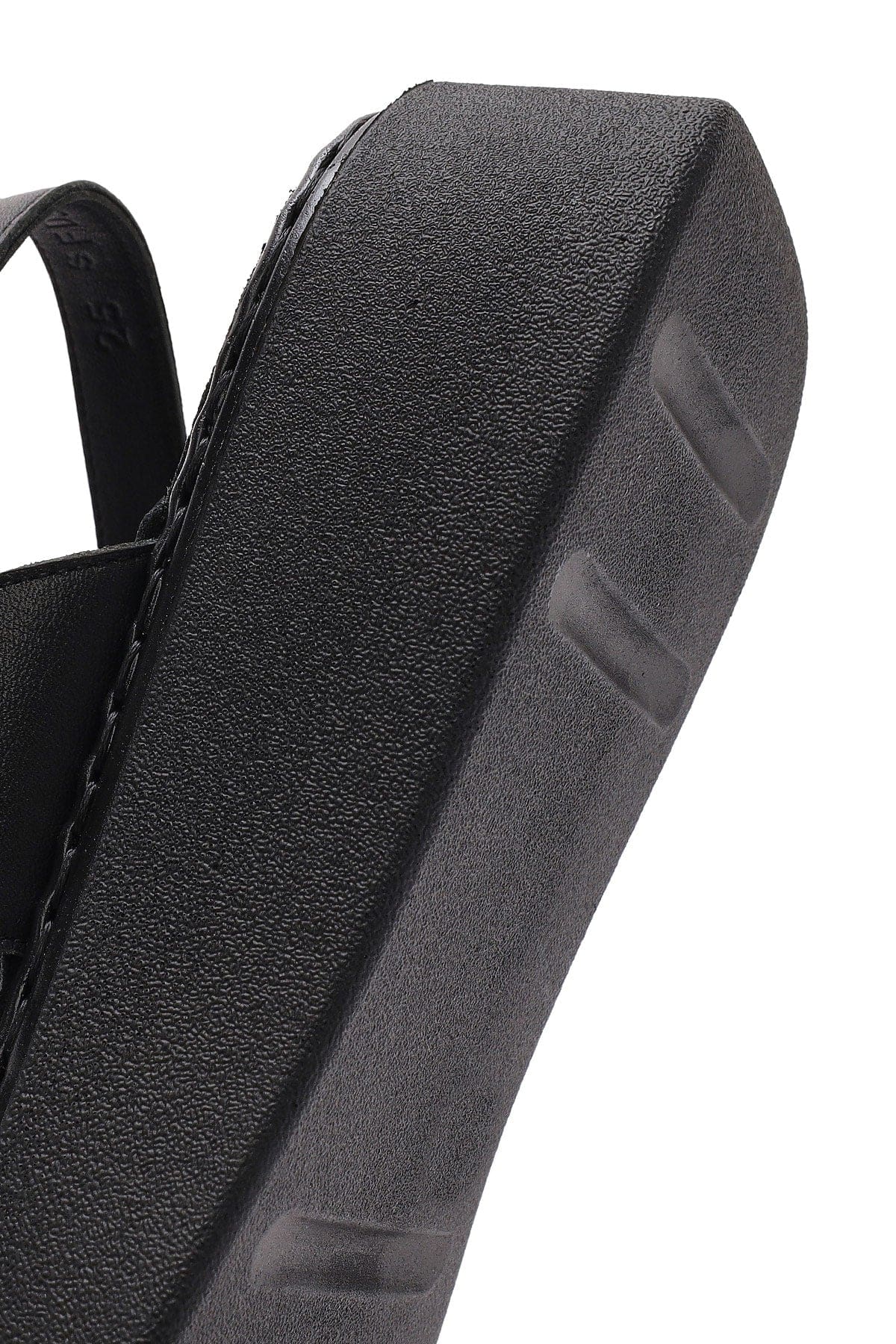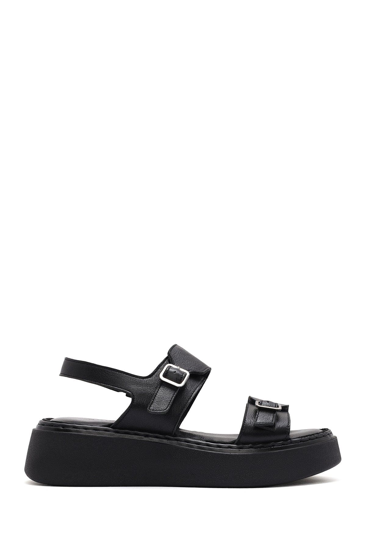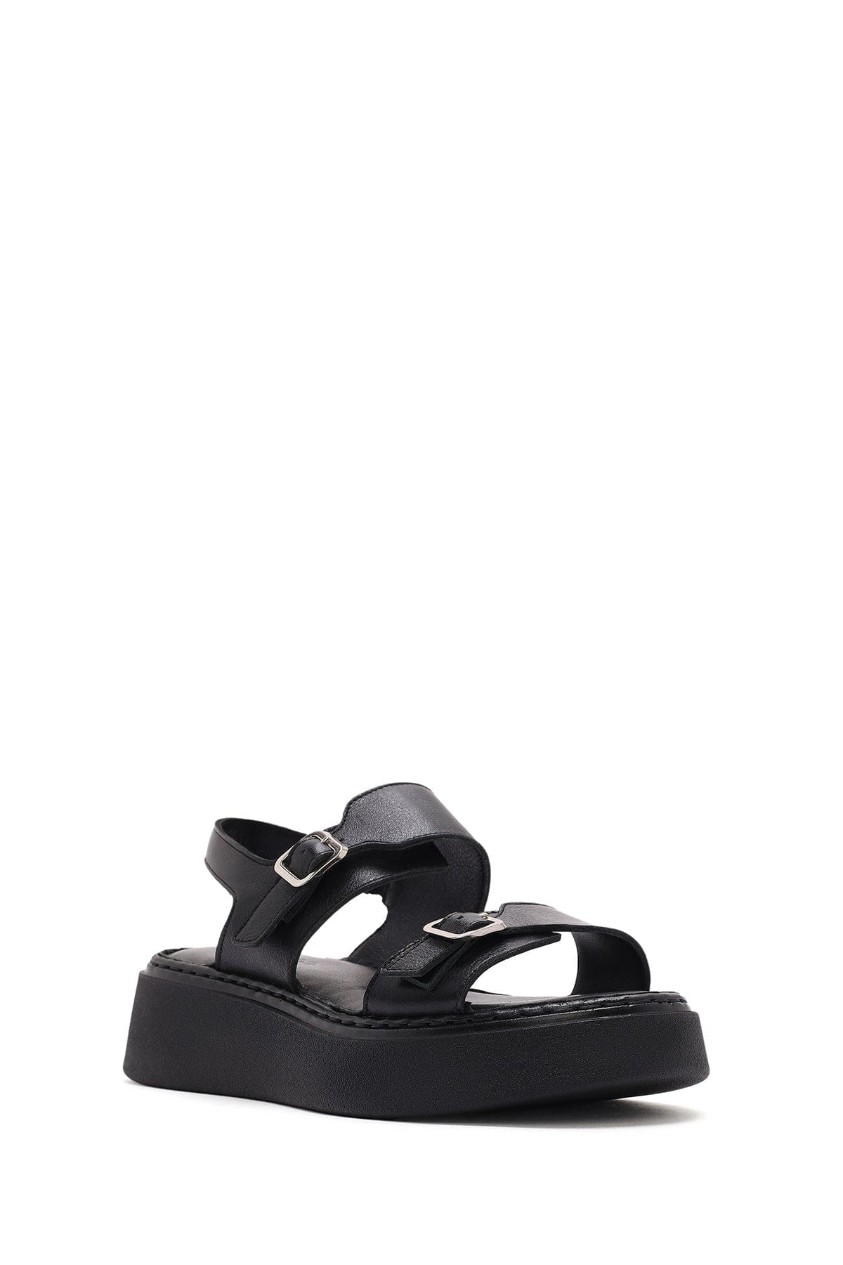 Kadın Siyah Tokalı Kalın Tabanlı Deri Comfort Sandalet