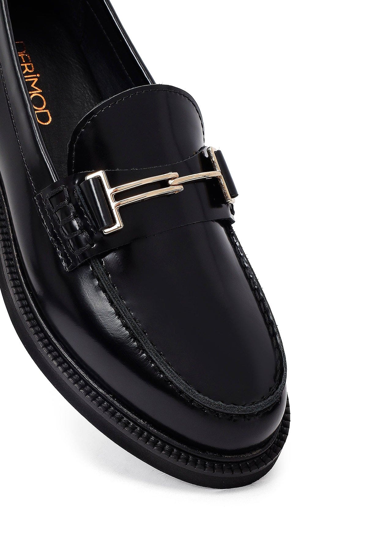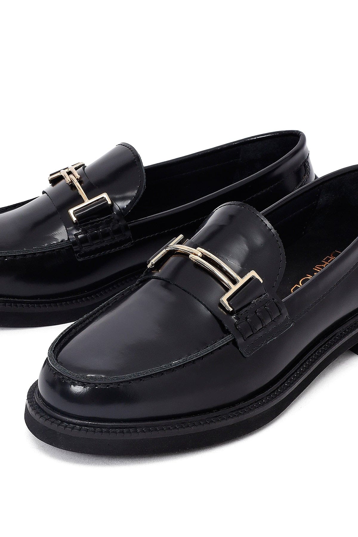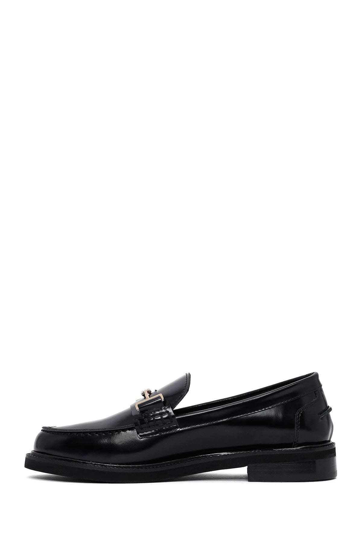 Kadın Siyah Tokalı Deri Maskülen Loafer