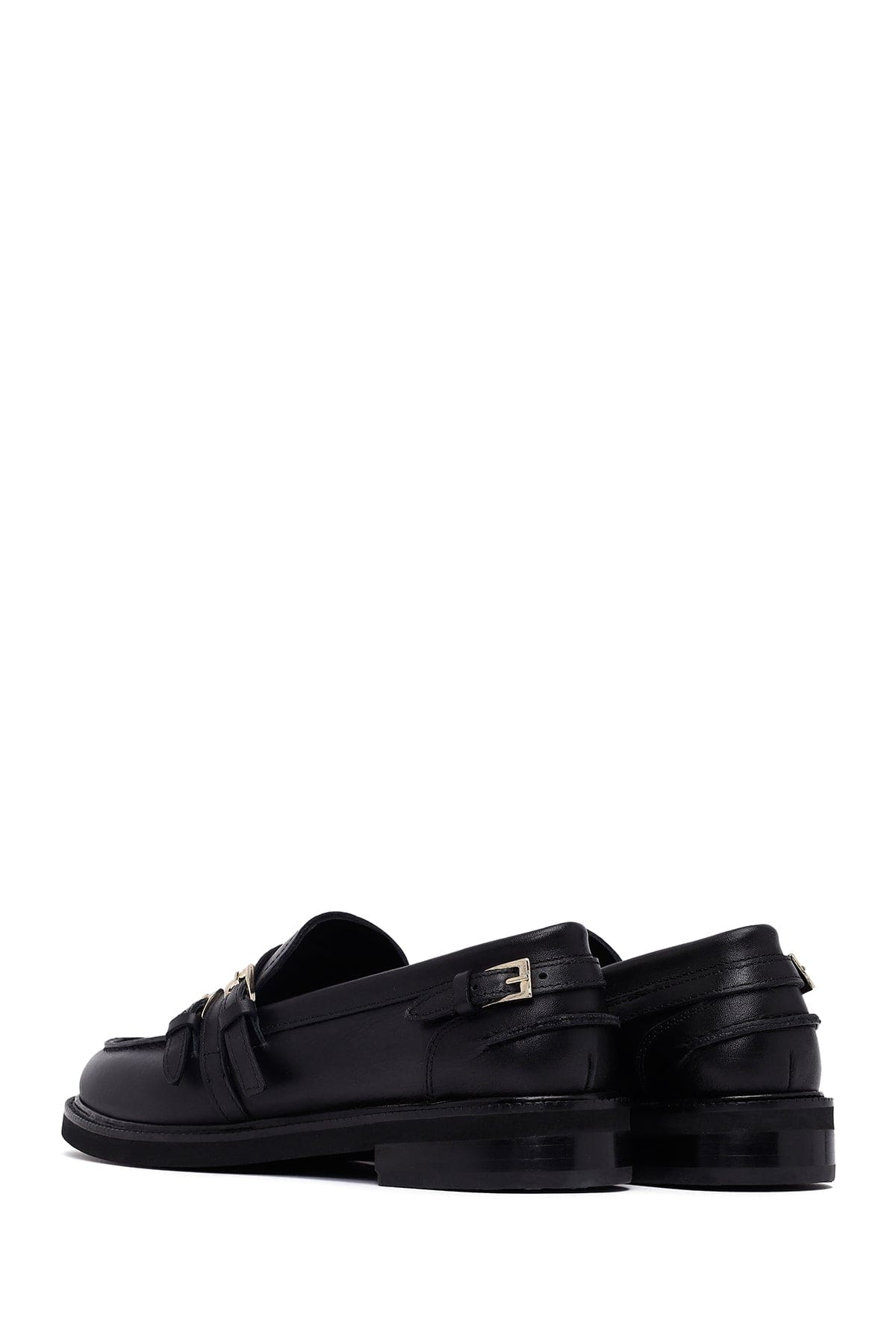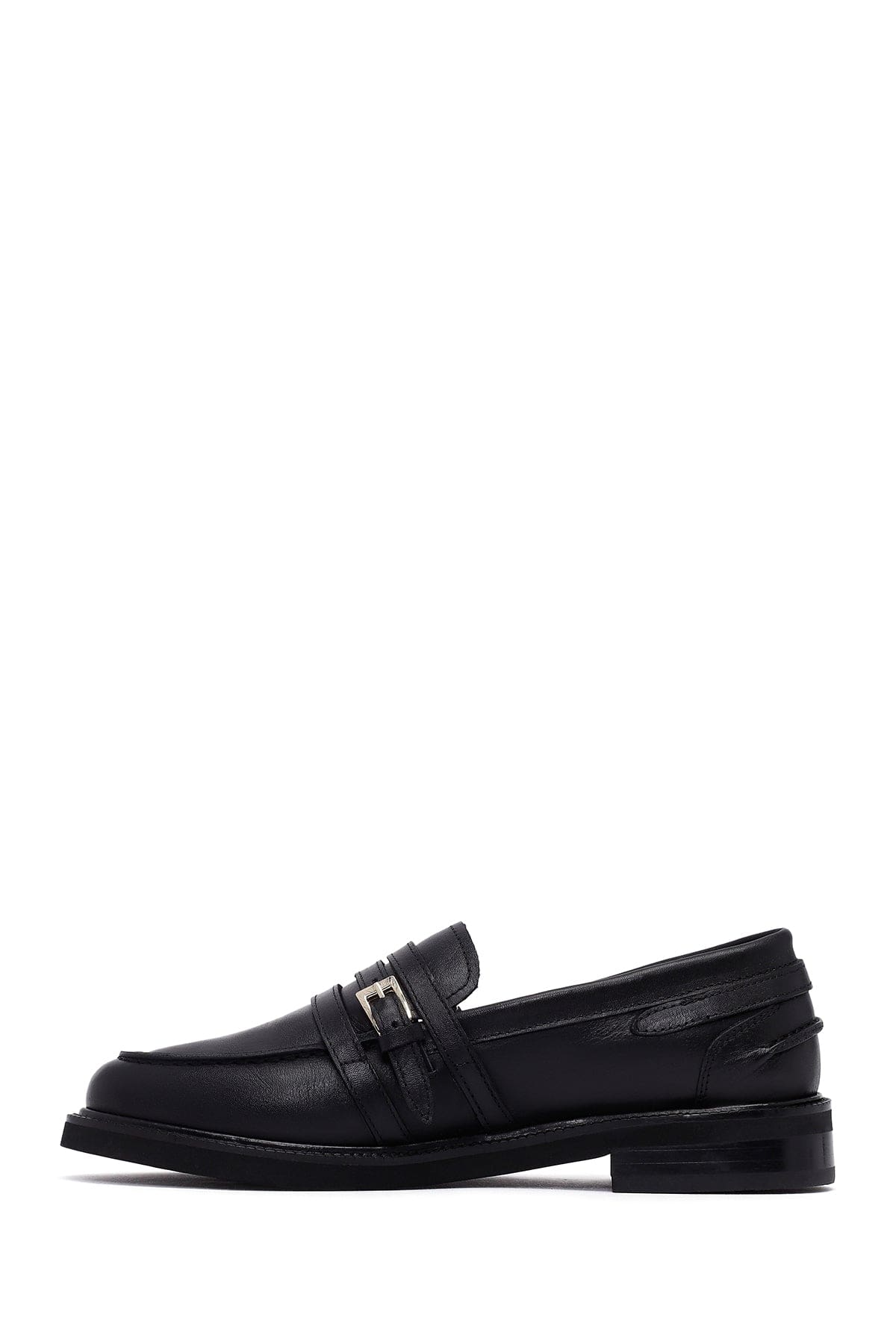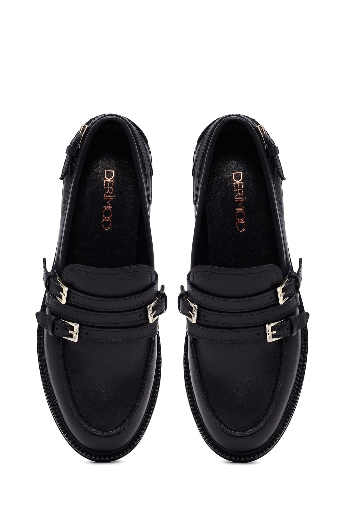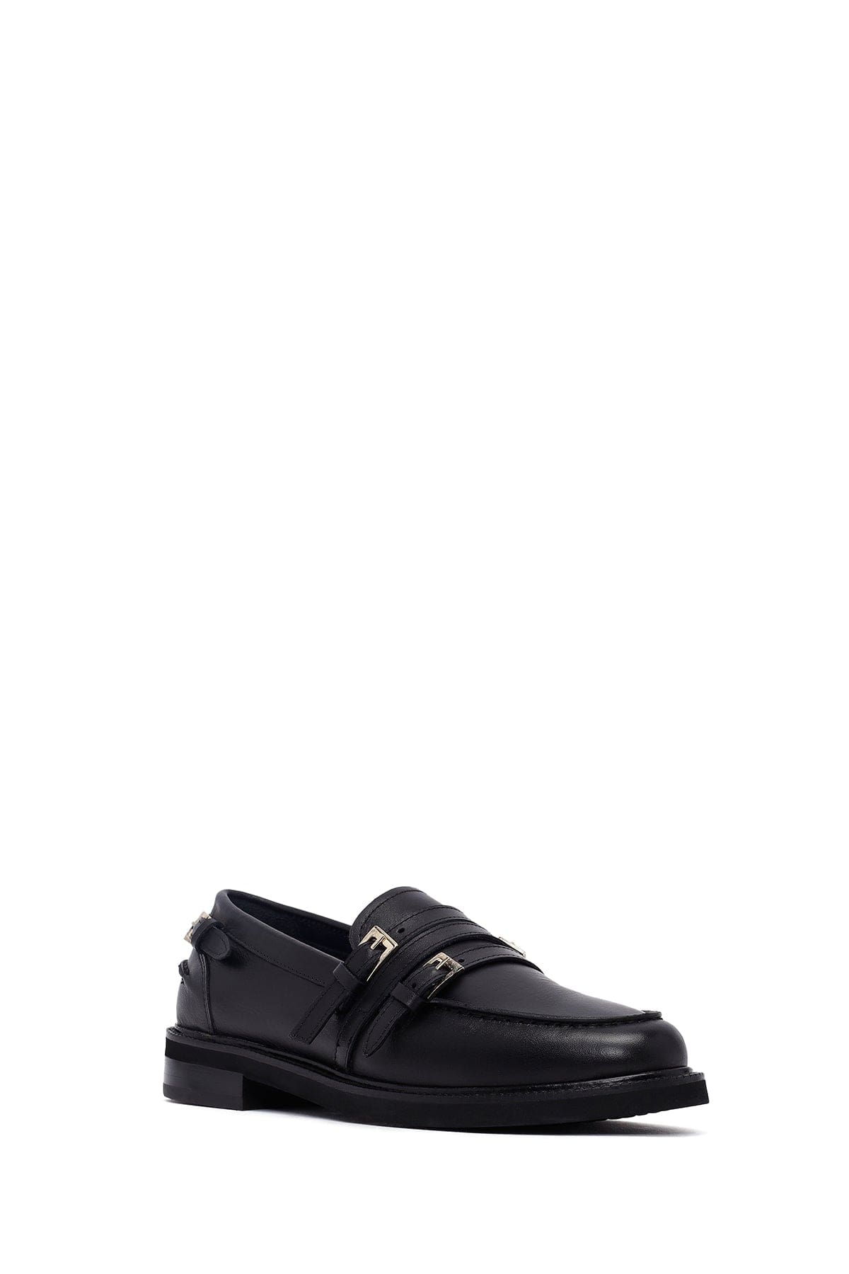 Kadın Siyah Tokalı Deri Maskülen Loafer