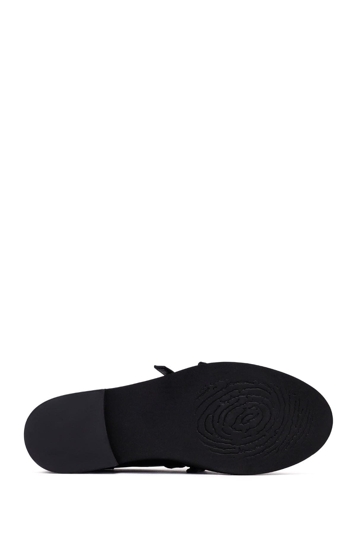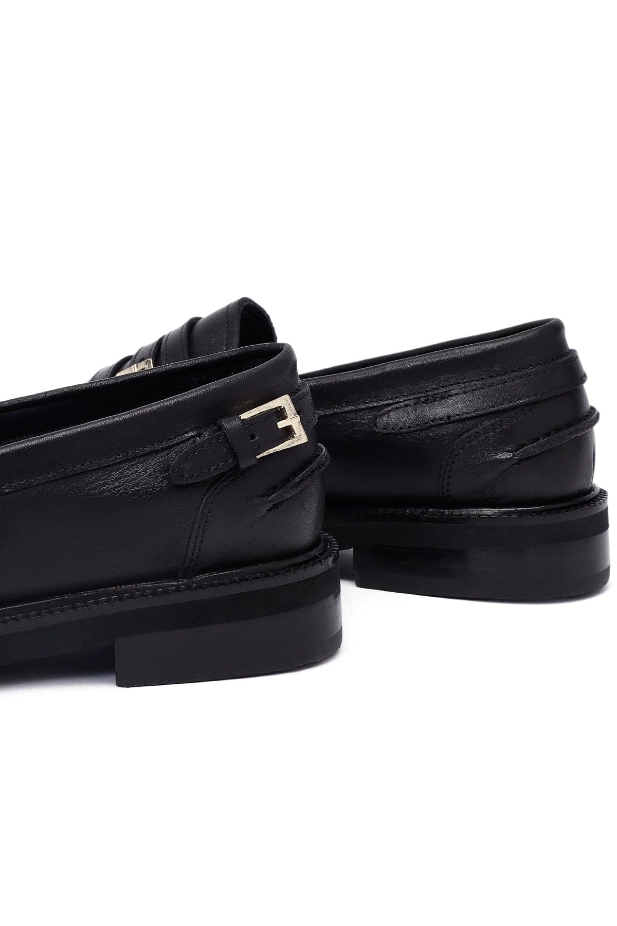 کفش لوفر زنانه مشکی چرمی بنددار دری مد
