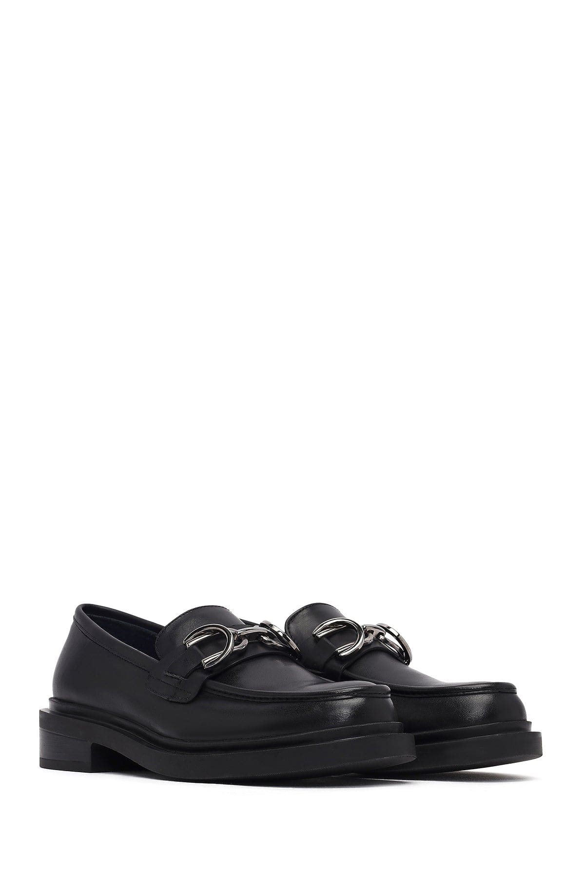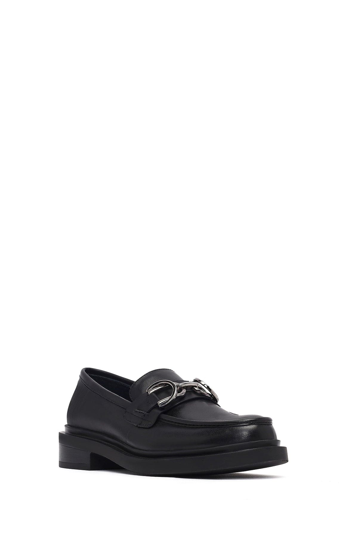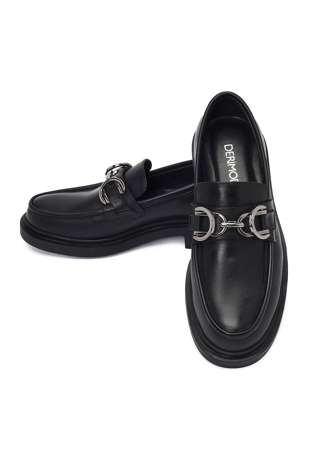 Kadın Siyah Tokalı Deri Maskülen Loafer