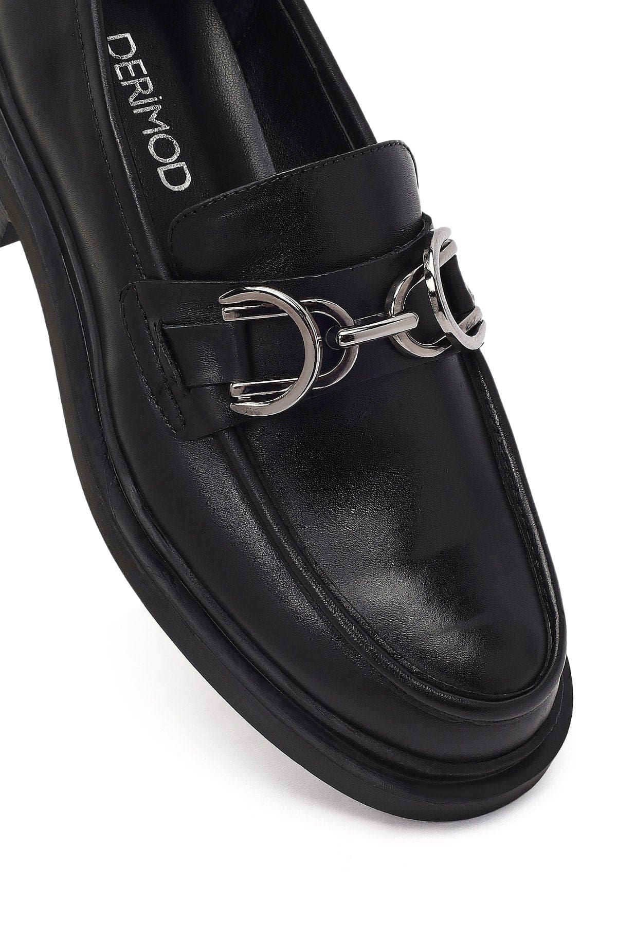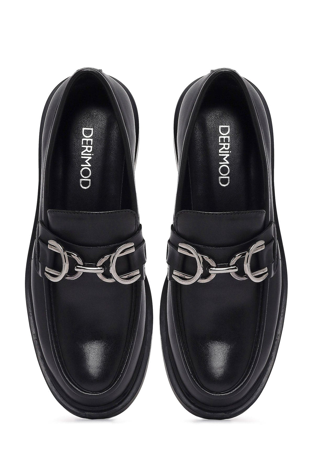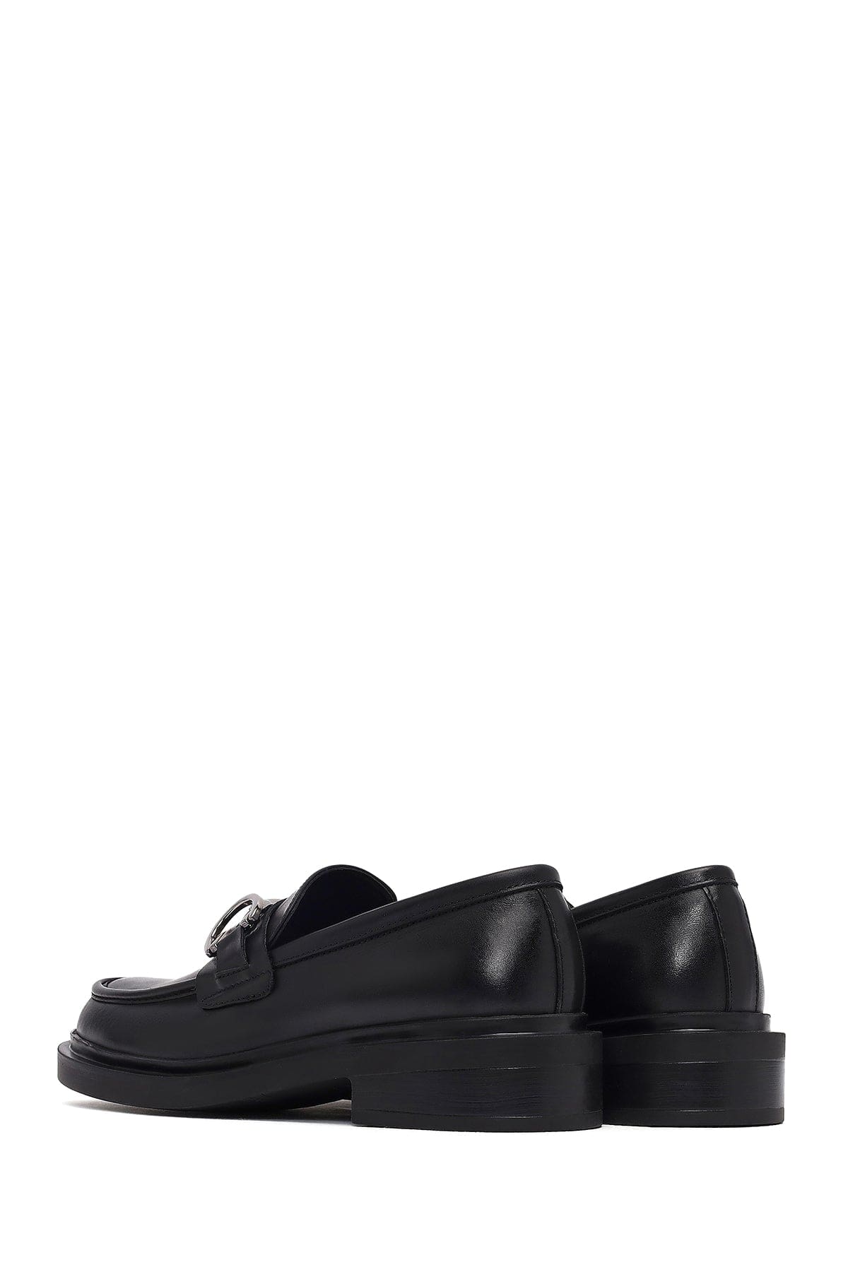 Kadın Siyah Tokalı Deri Maskülen Loafer