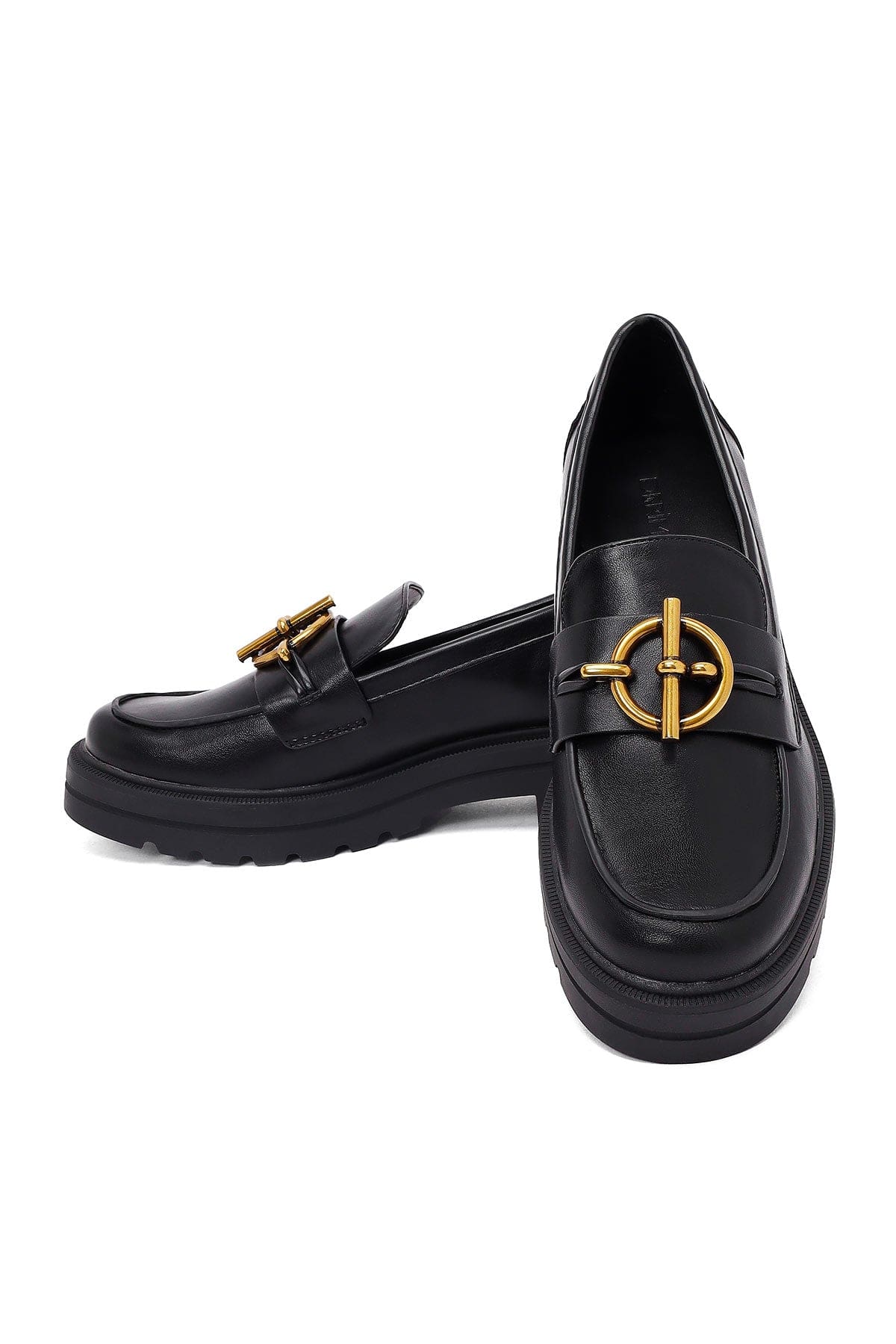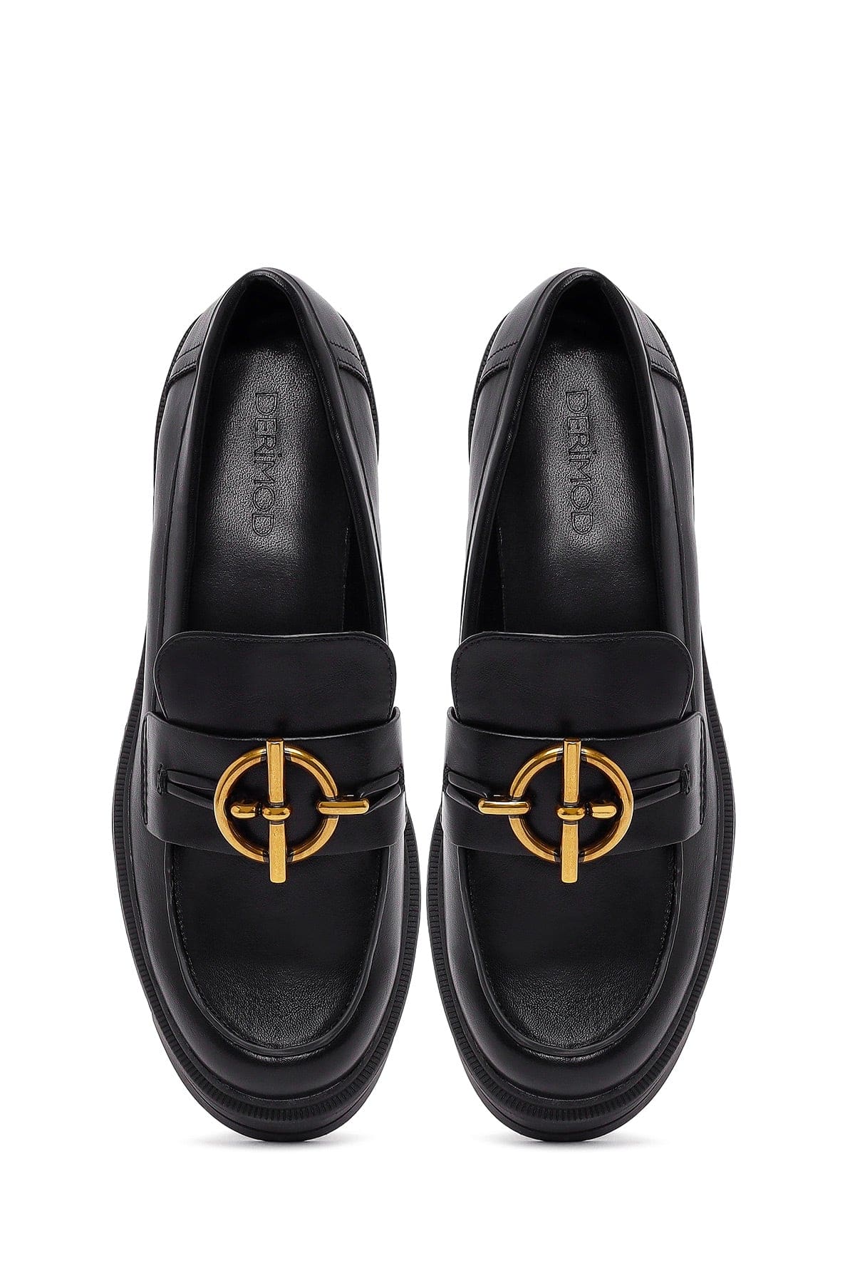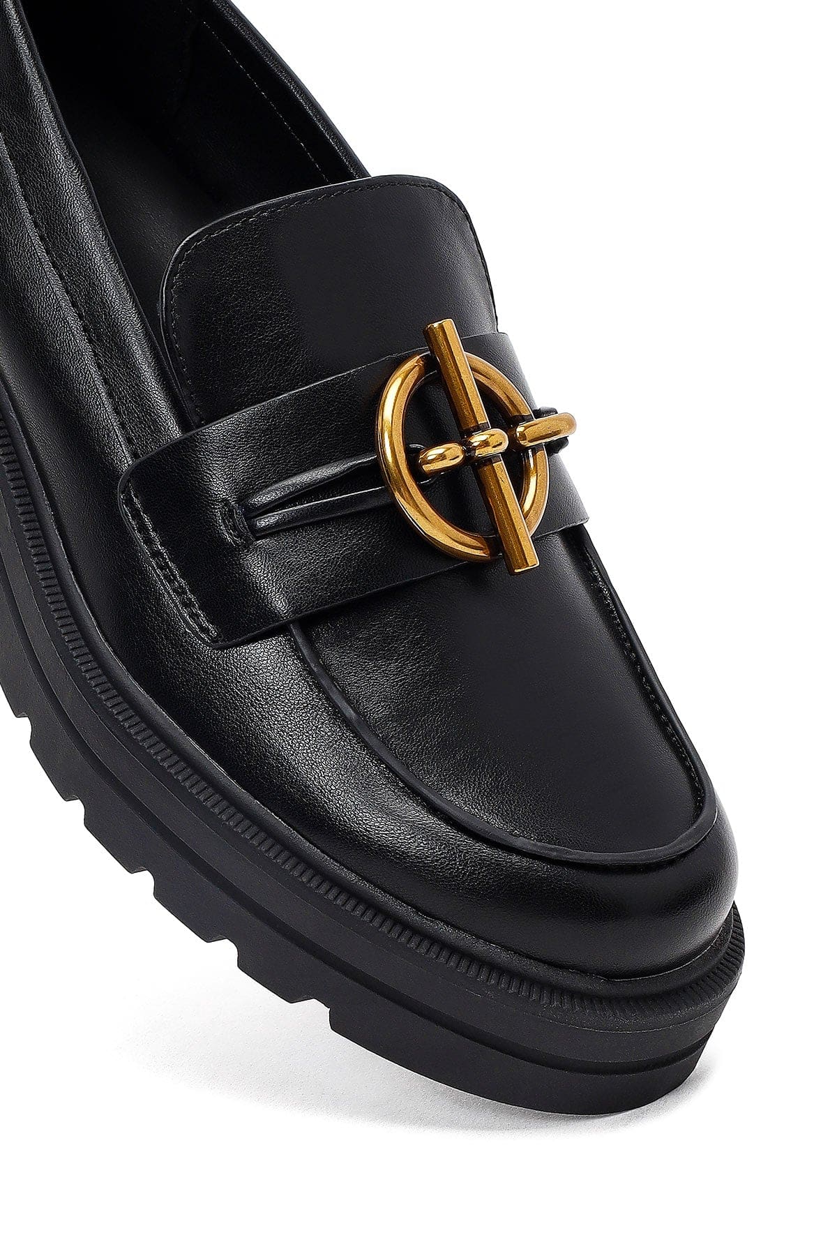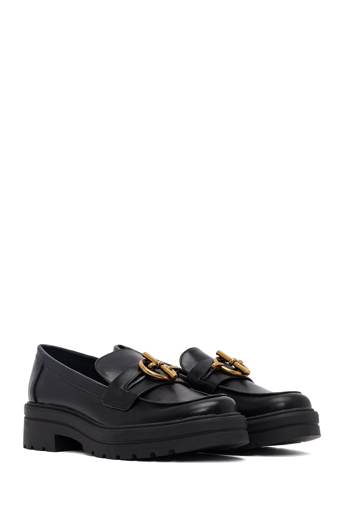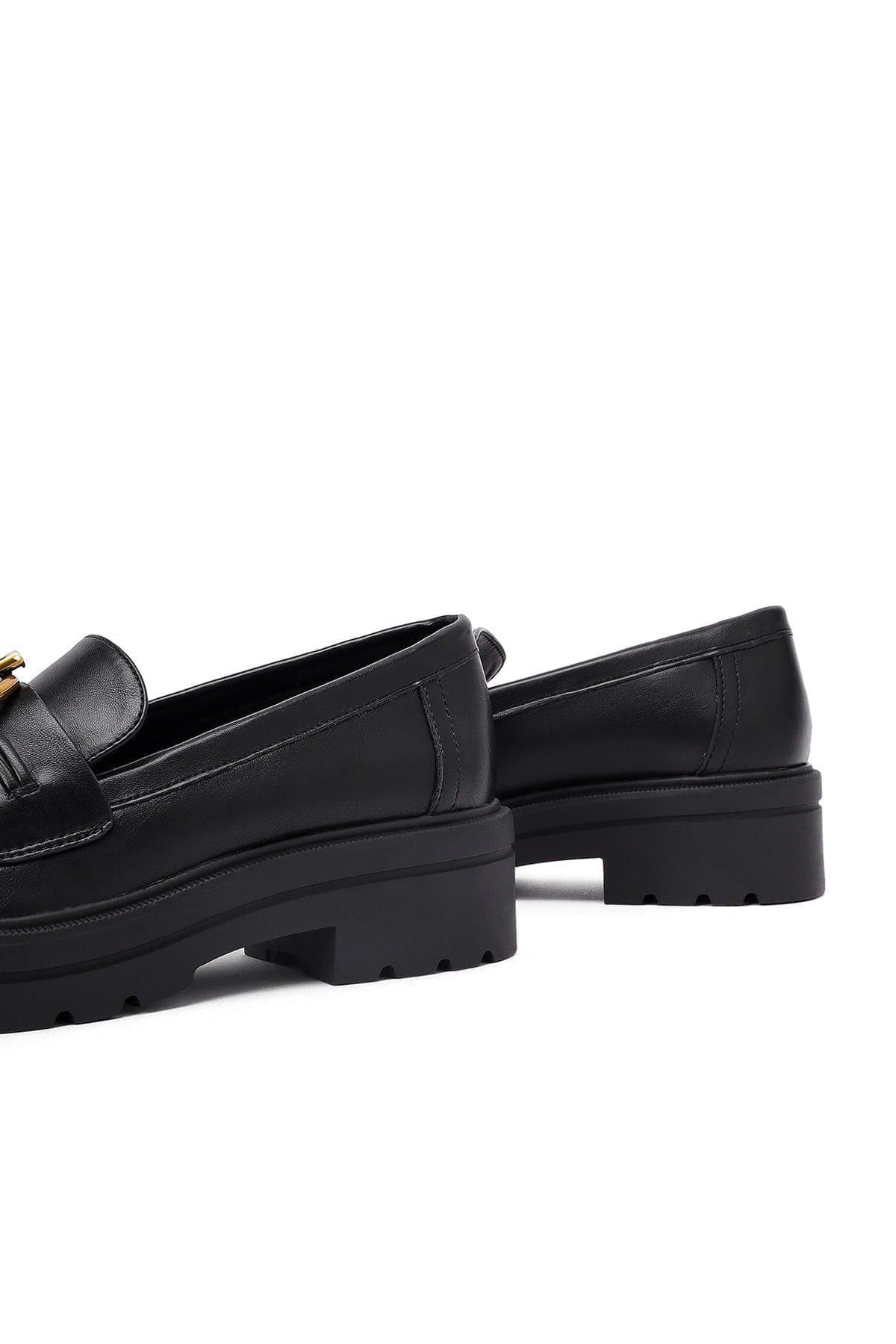 Kadın Siyah Tokalı Kalın Tabanlı Maskülen Loafer