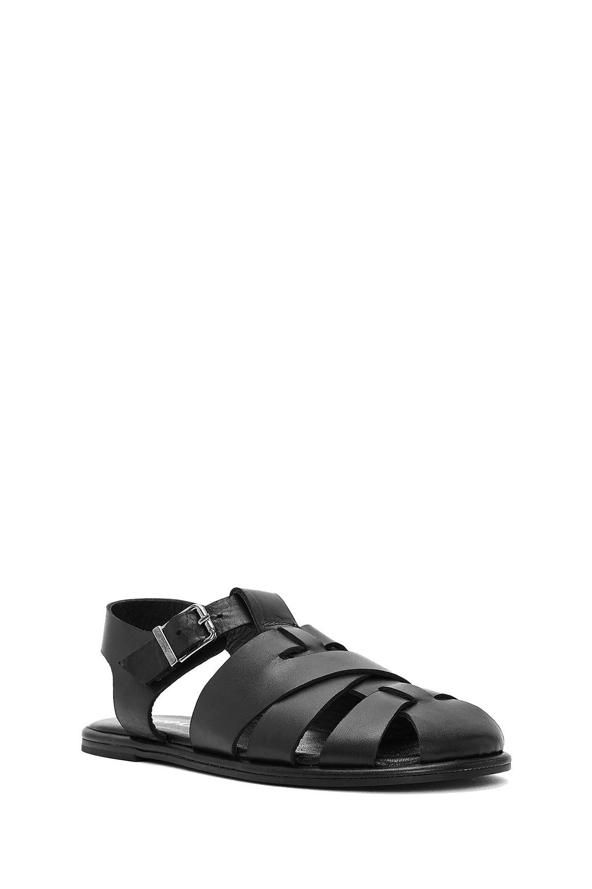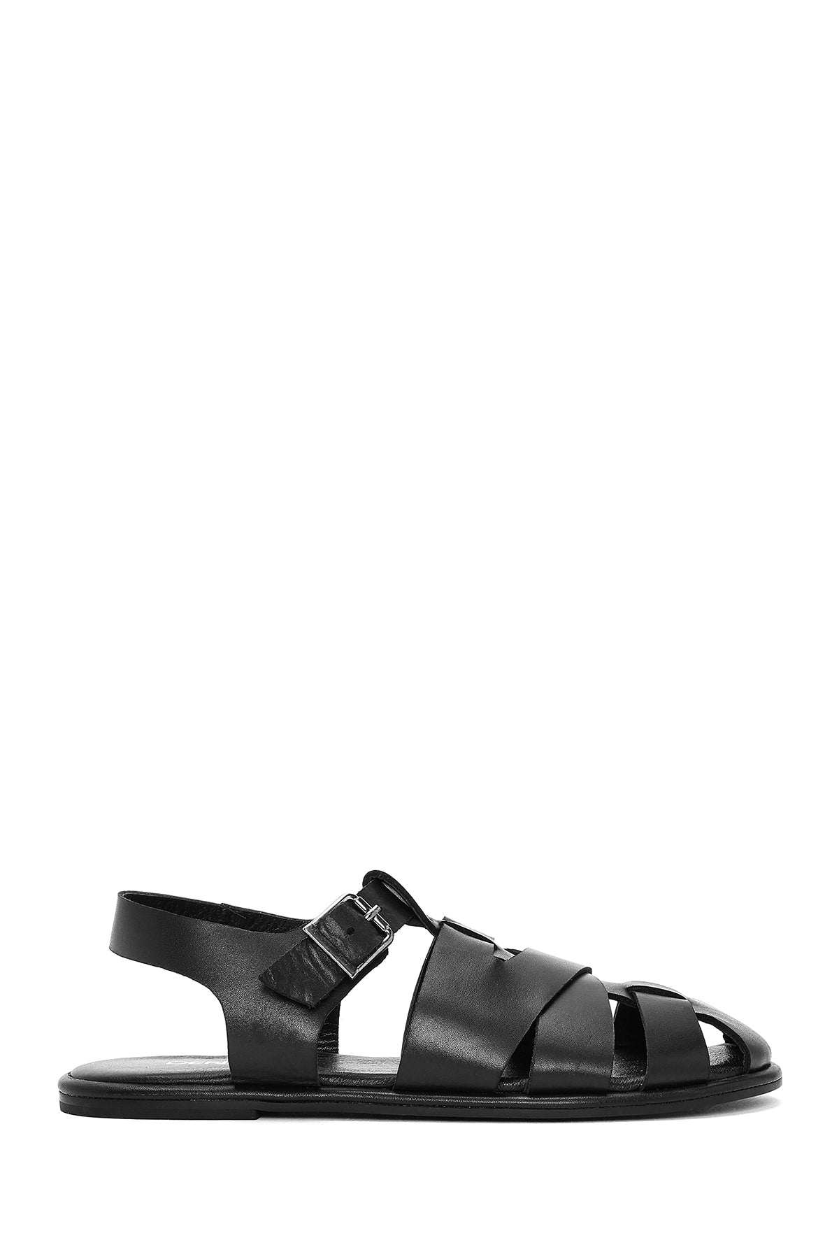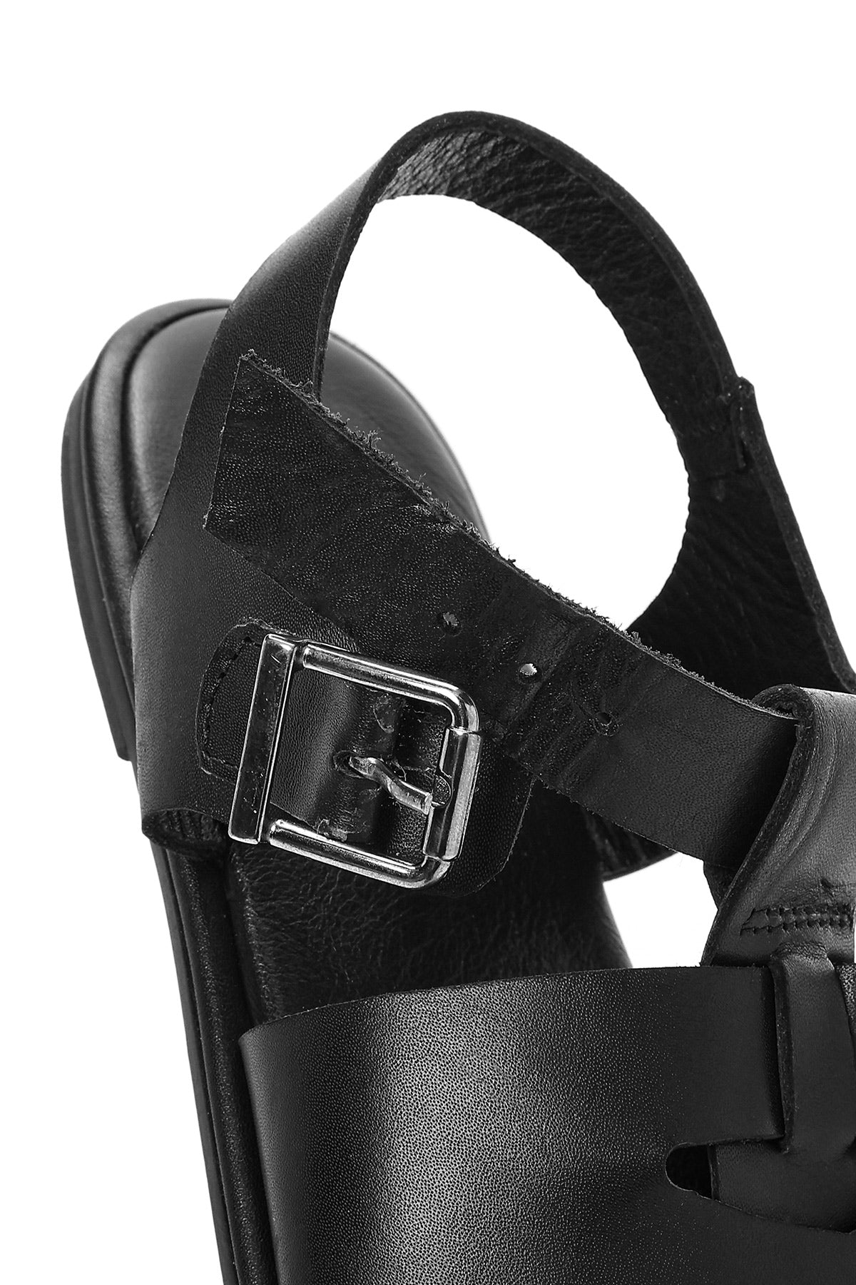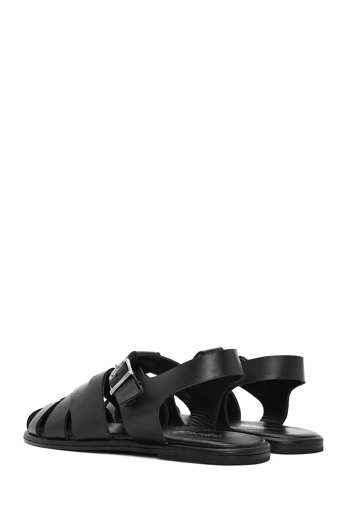 Kadın Siyah Tokalı Deri Sandalet