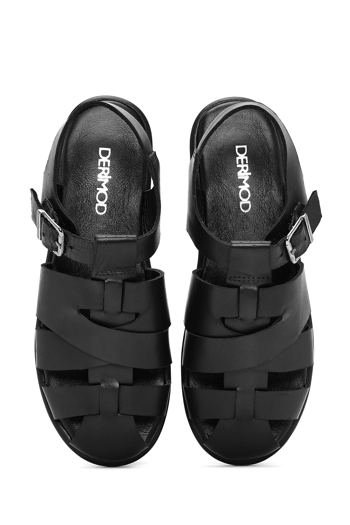صندل زنانه مشکی چرم سگکدار دری مد