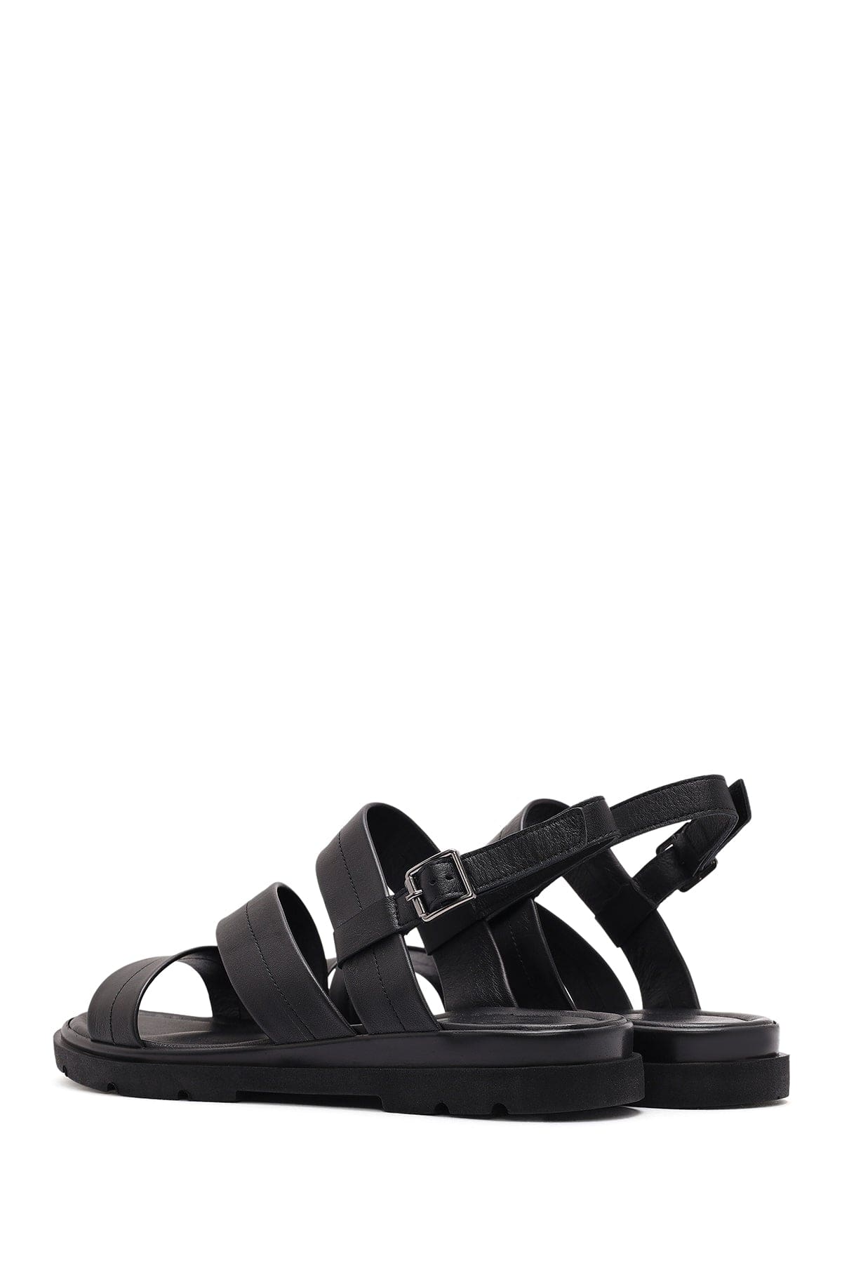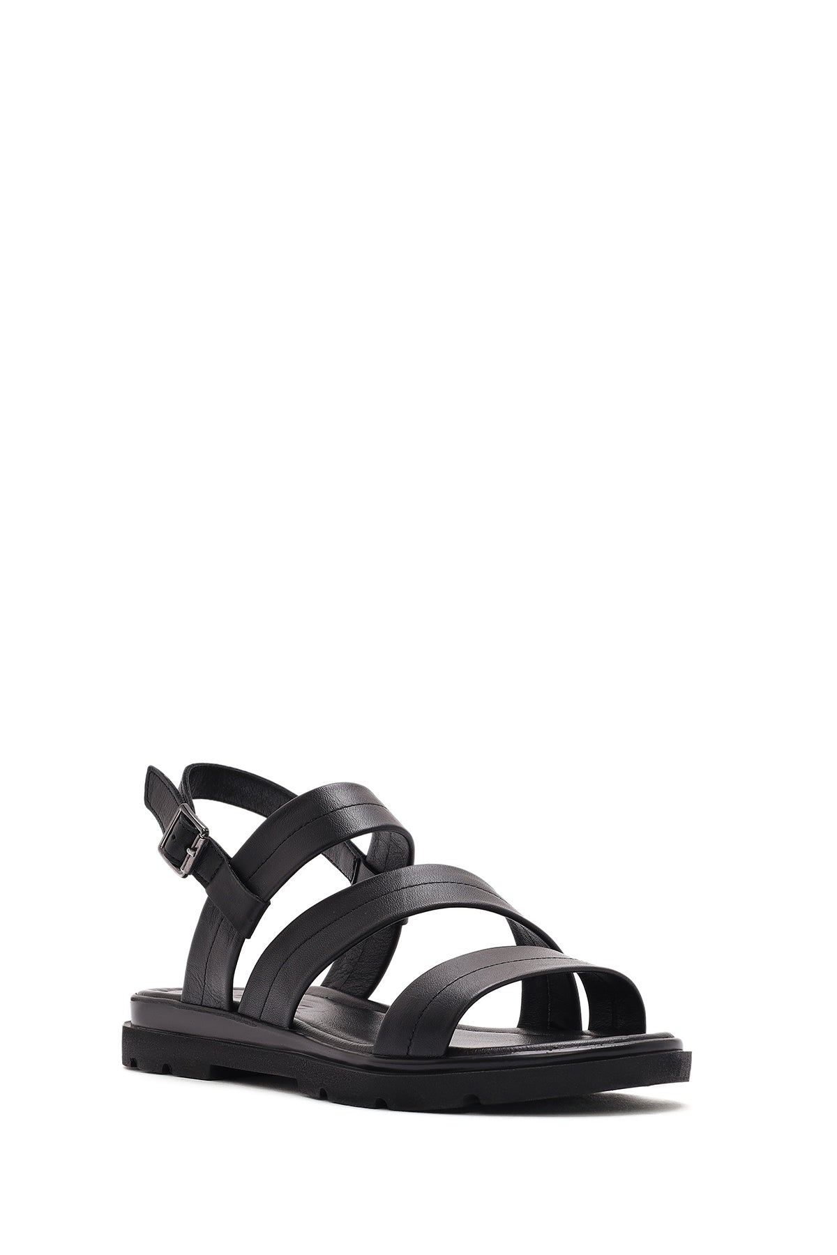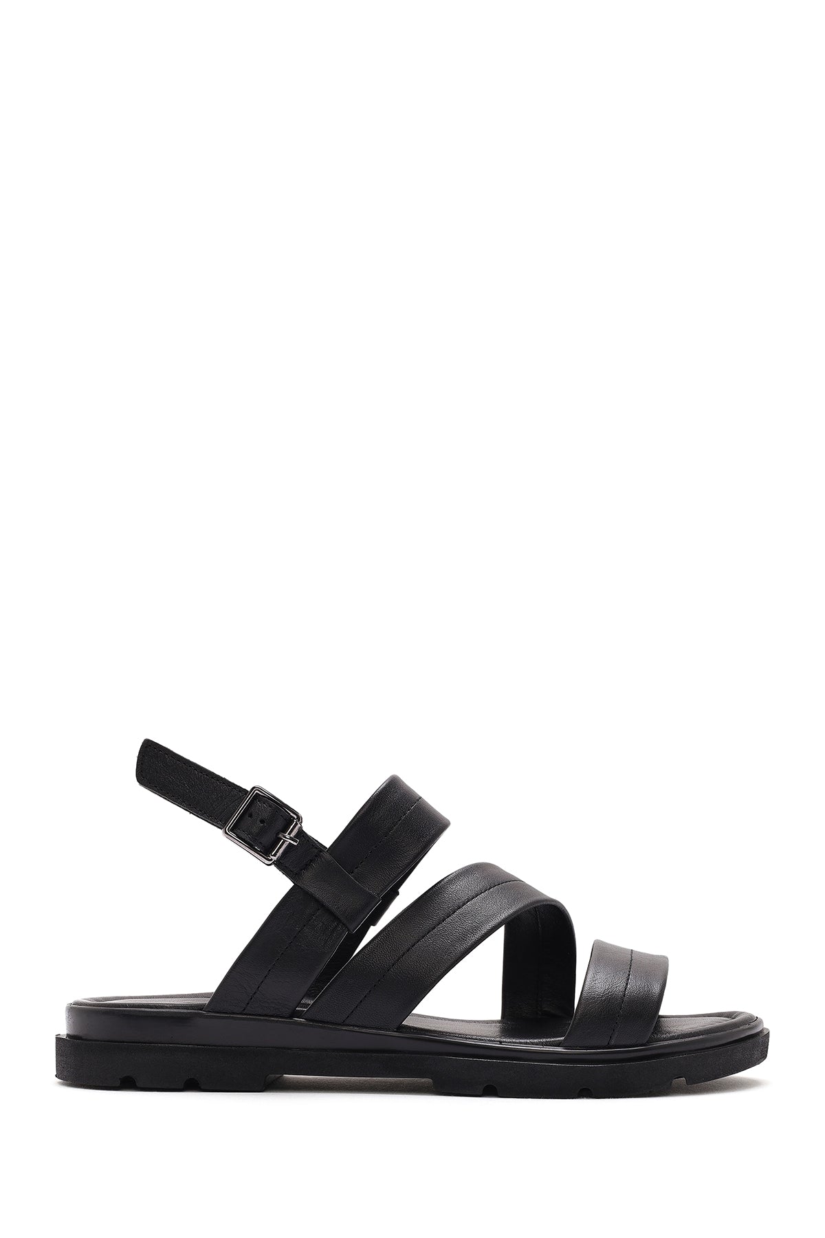 Kadın Siyah Bilekten Tokalı Deri Sandalet