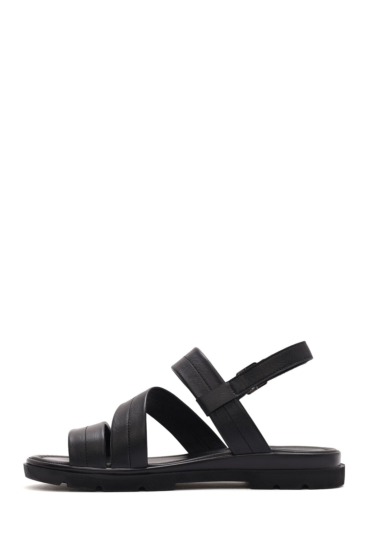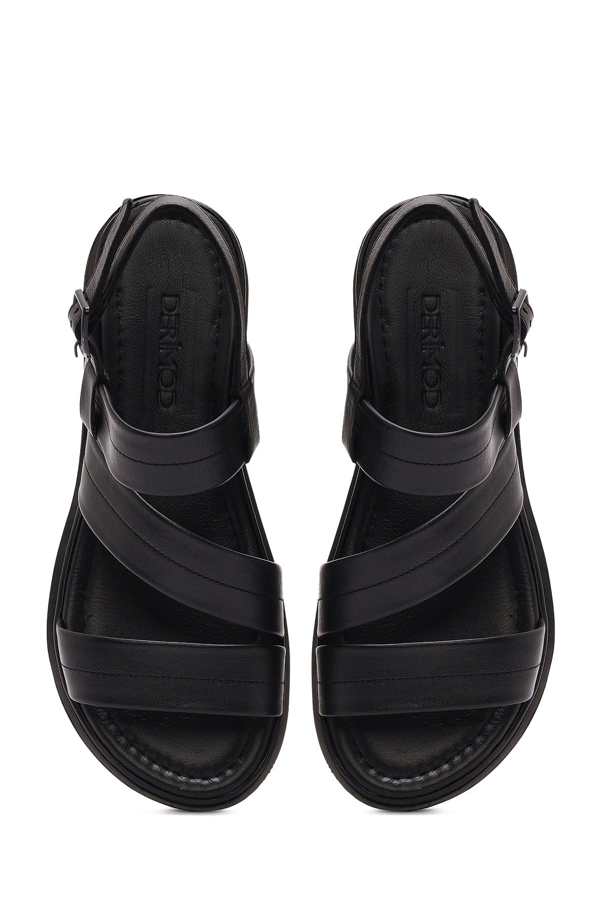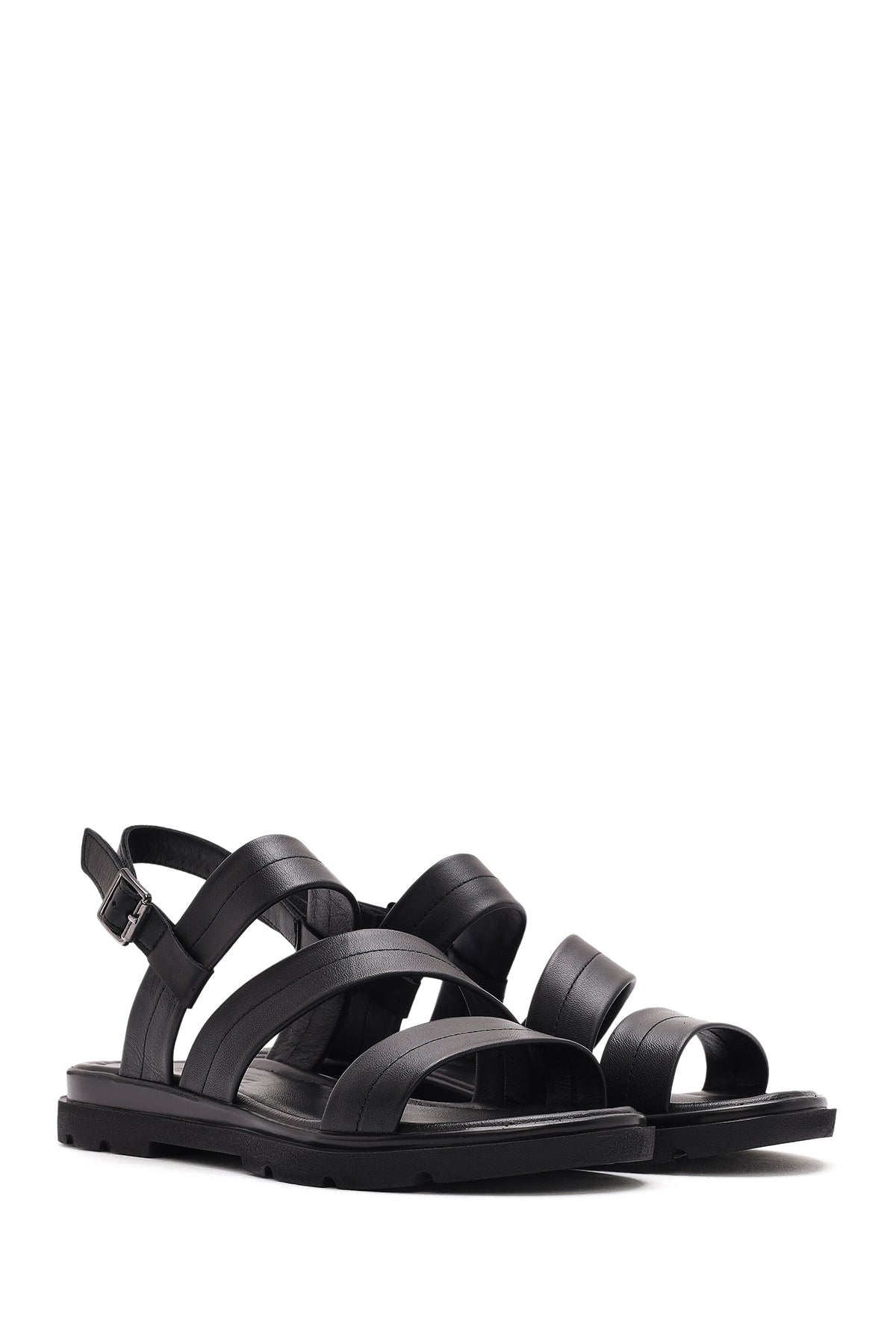Kadın Siyah Bilekten Tokalı Deri Sandalet
