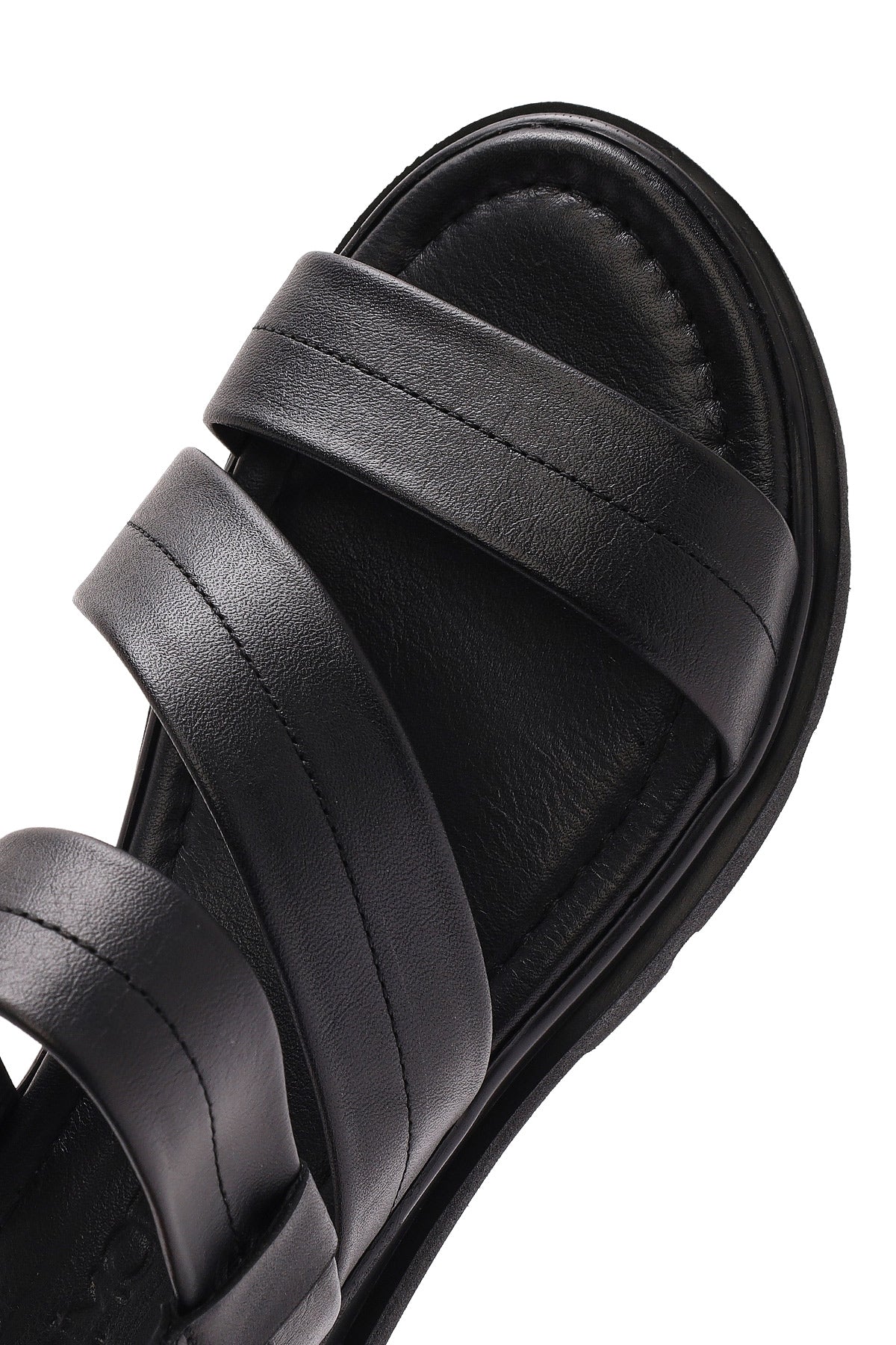 صندل زنانه چرمی مشکی سگکدار دری مد